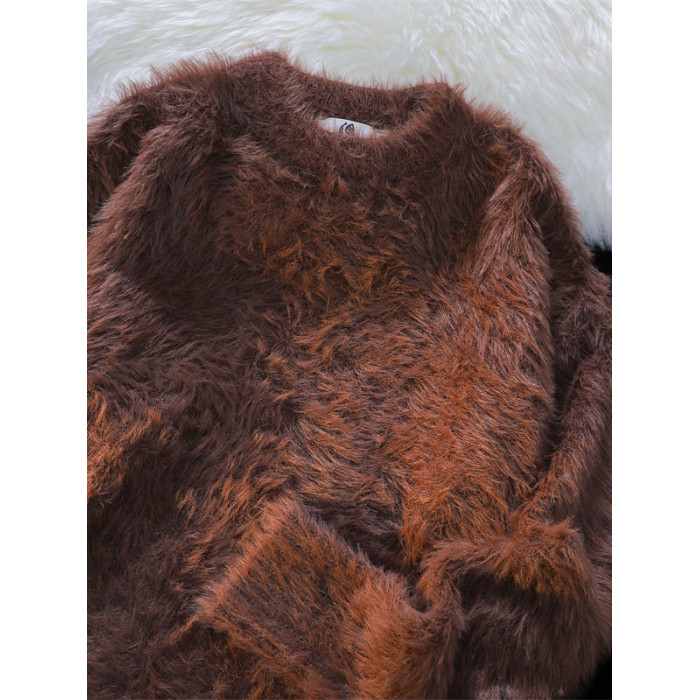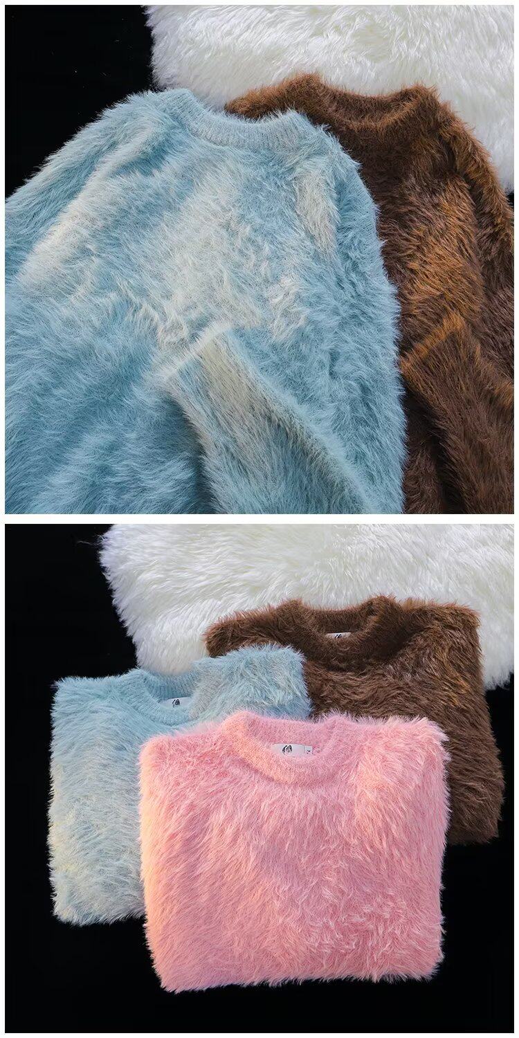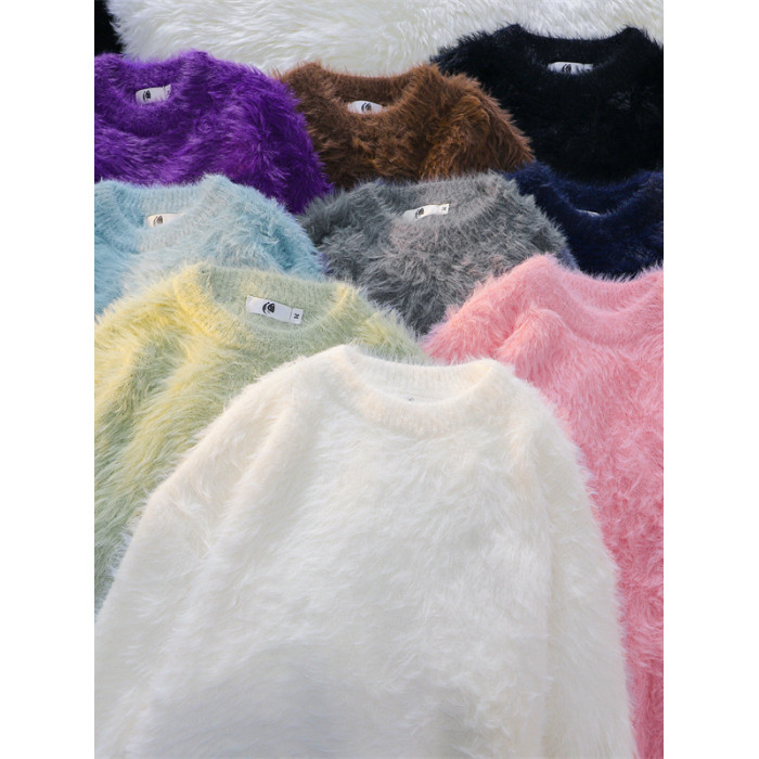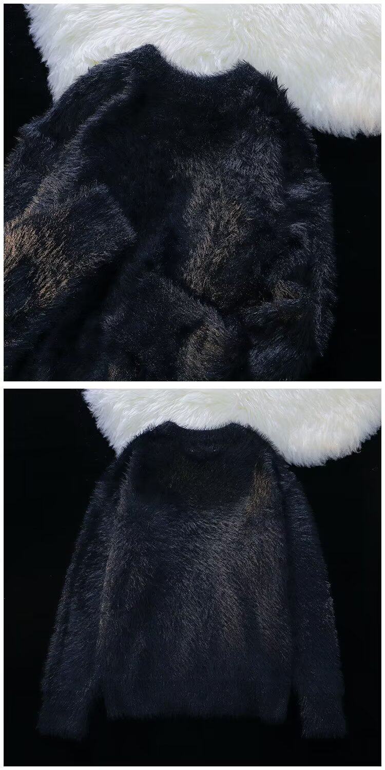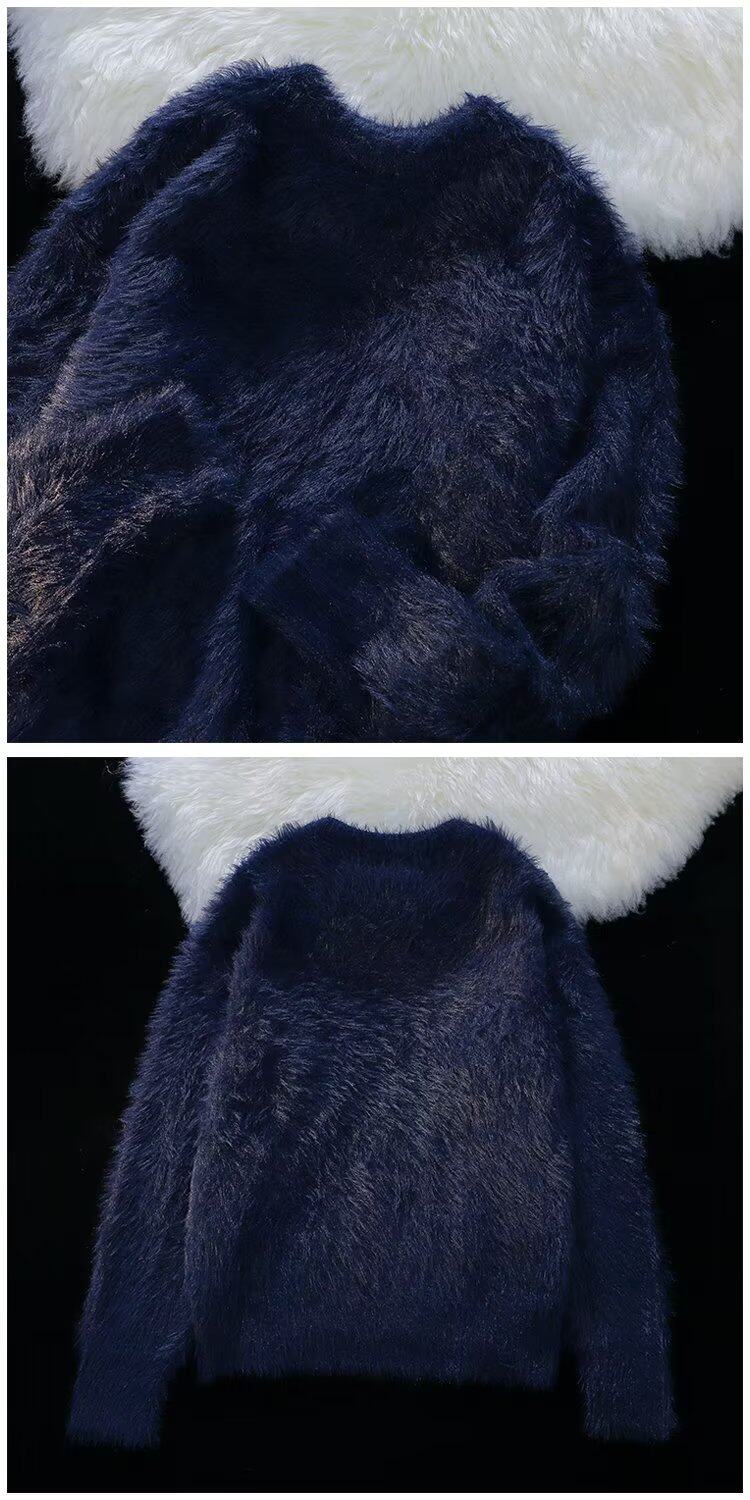 秋冬季純色保暖內搭針織衫男日系潮牌復古寬松軟糯毛茸茸圓領毛衣