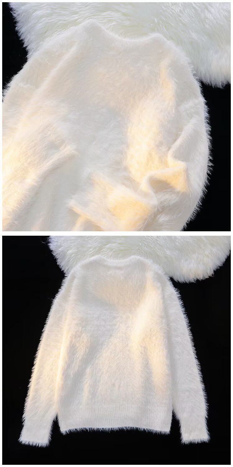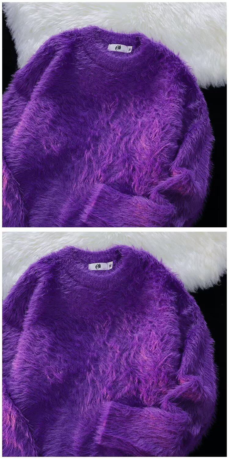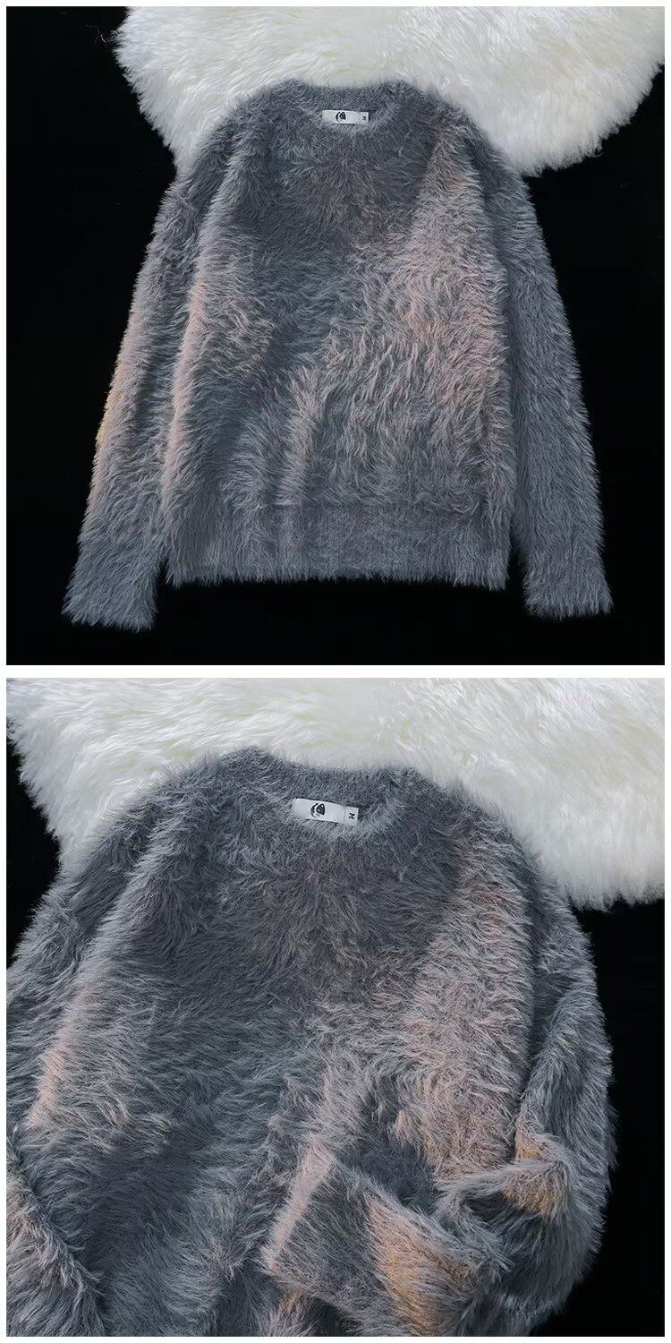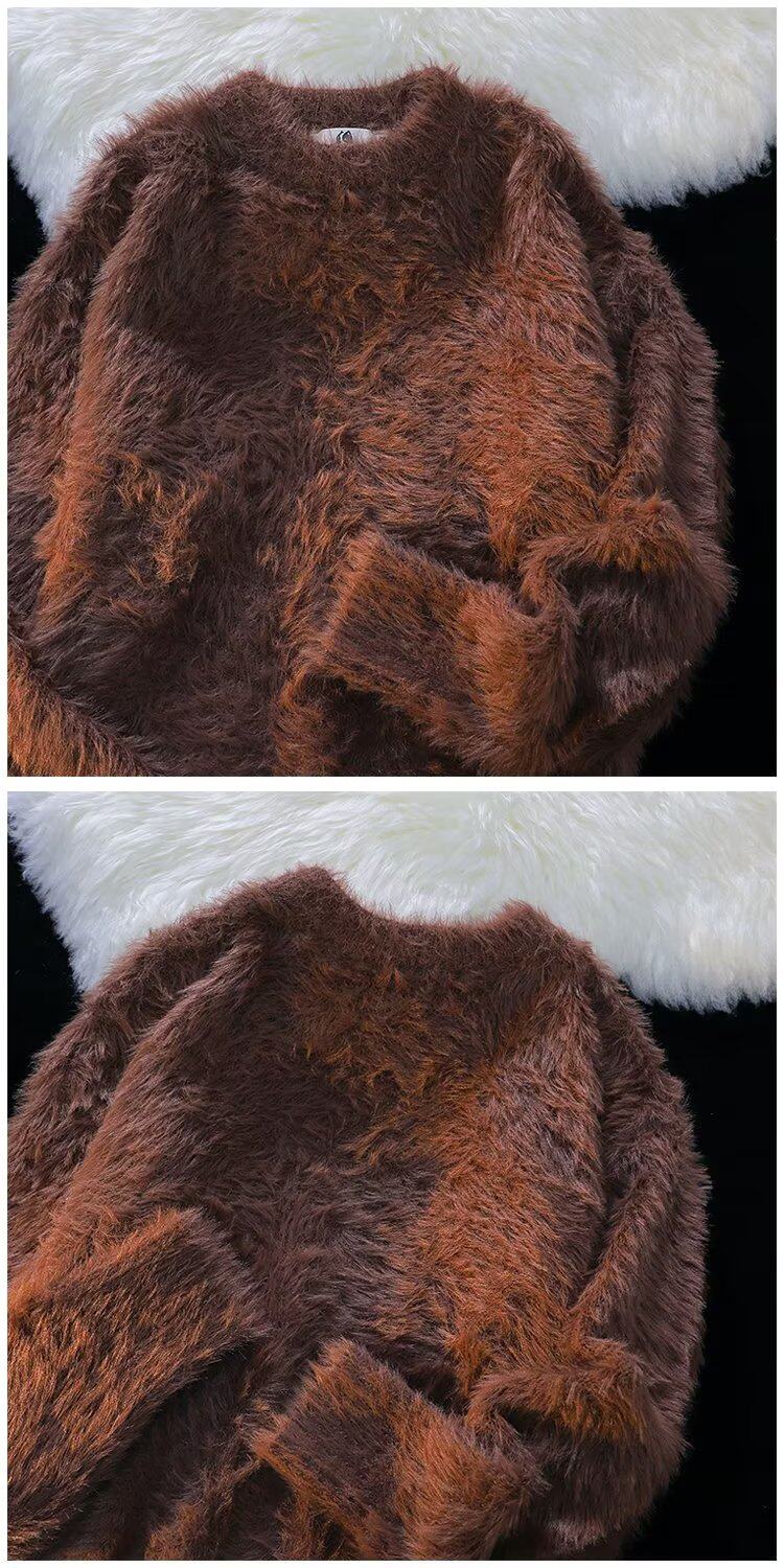 秋冬季純色保暖內搭針織衫男日系潮牌復古寬松軟糯毛茸茸圓領毛衣