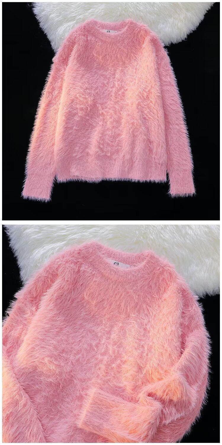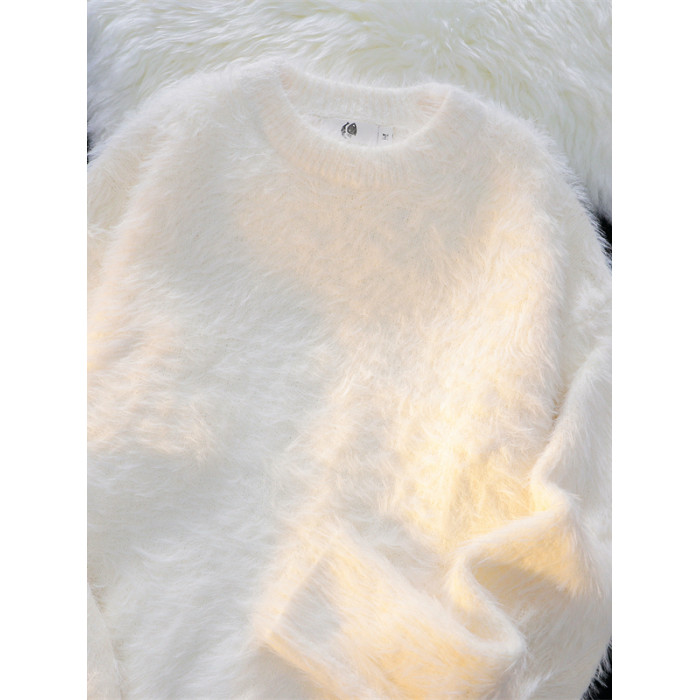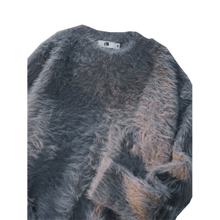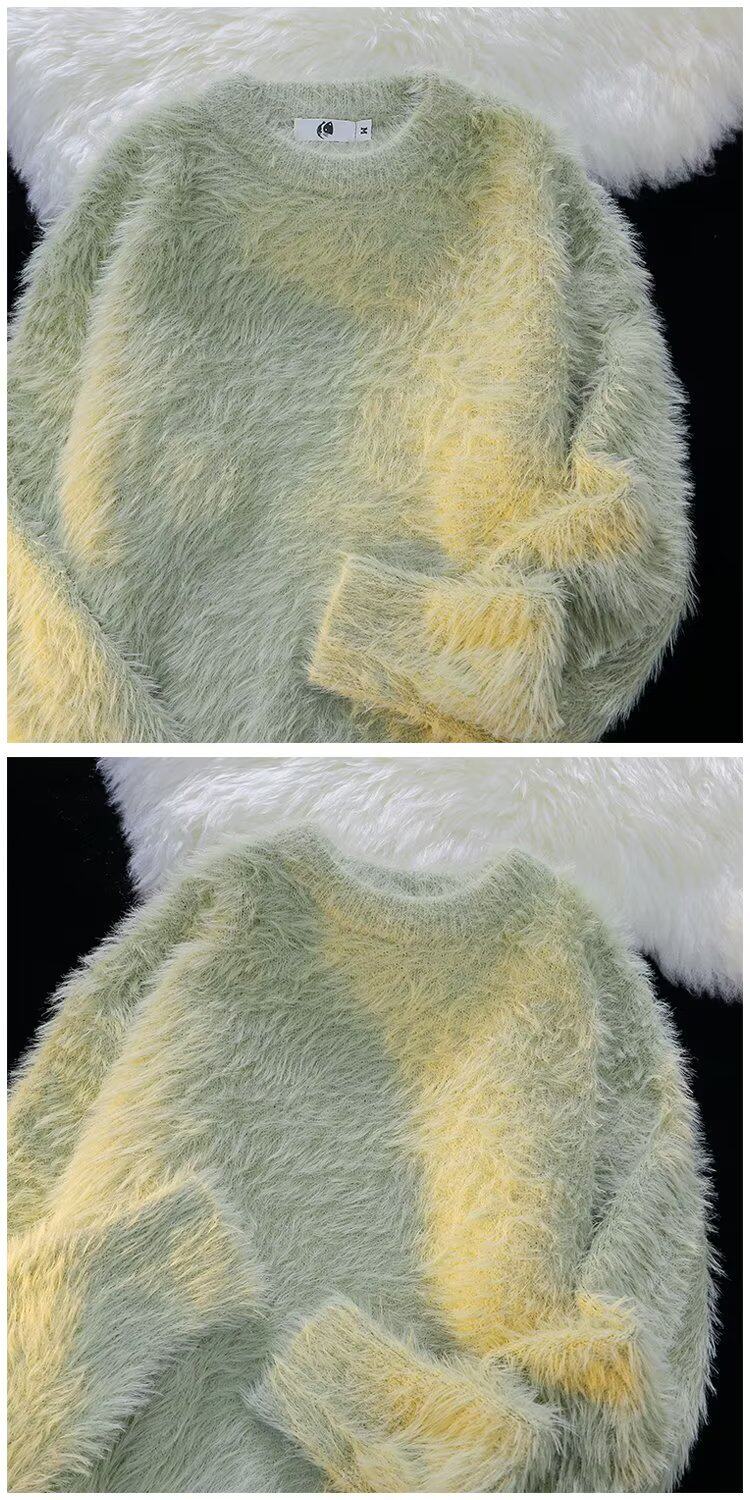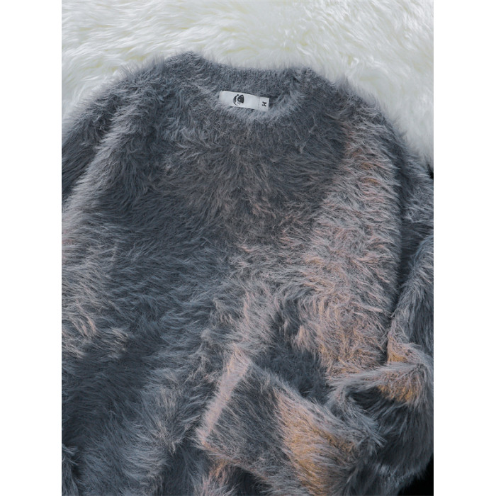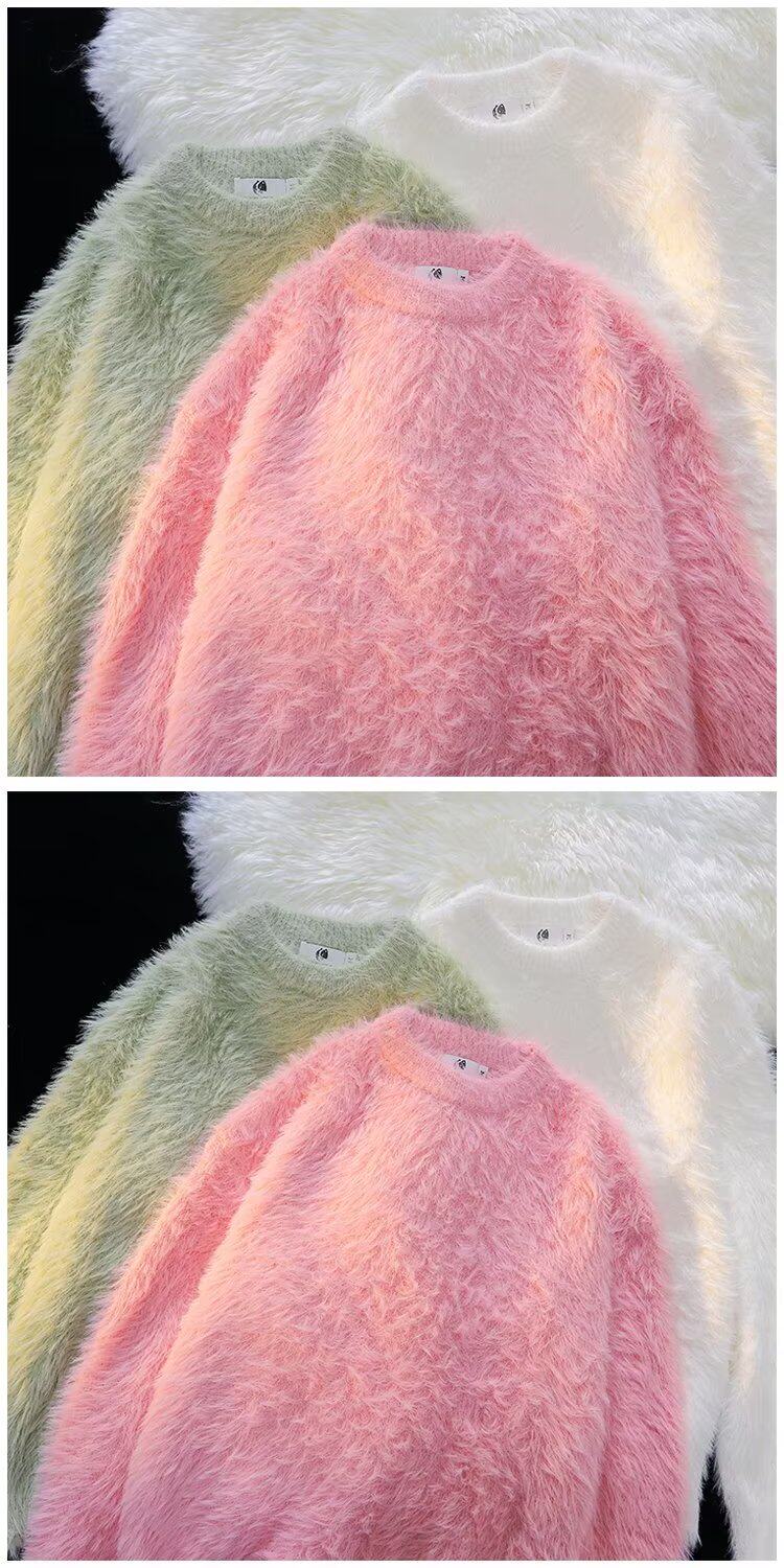 秋冬季純色保暖內搭針織衫男日系潮牌復古寬松軟糯毛茸茸圓領毛衣