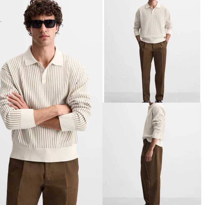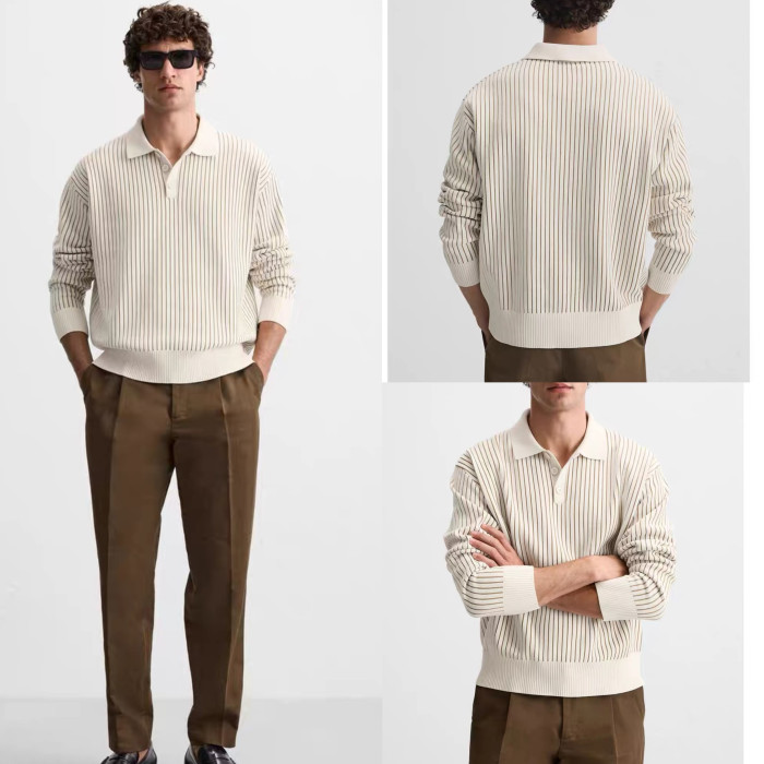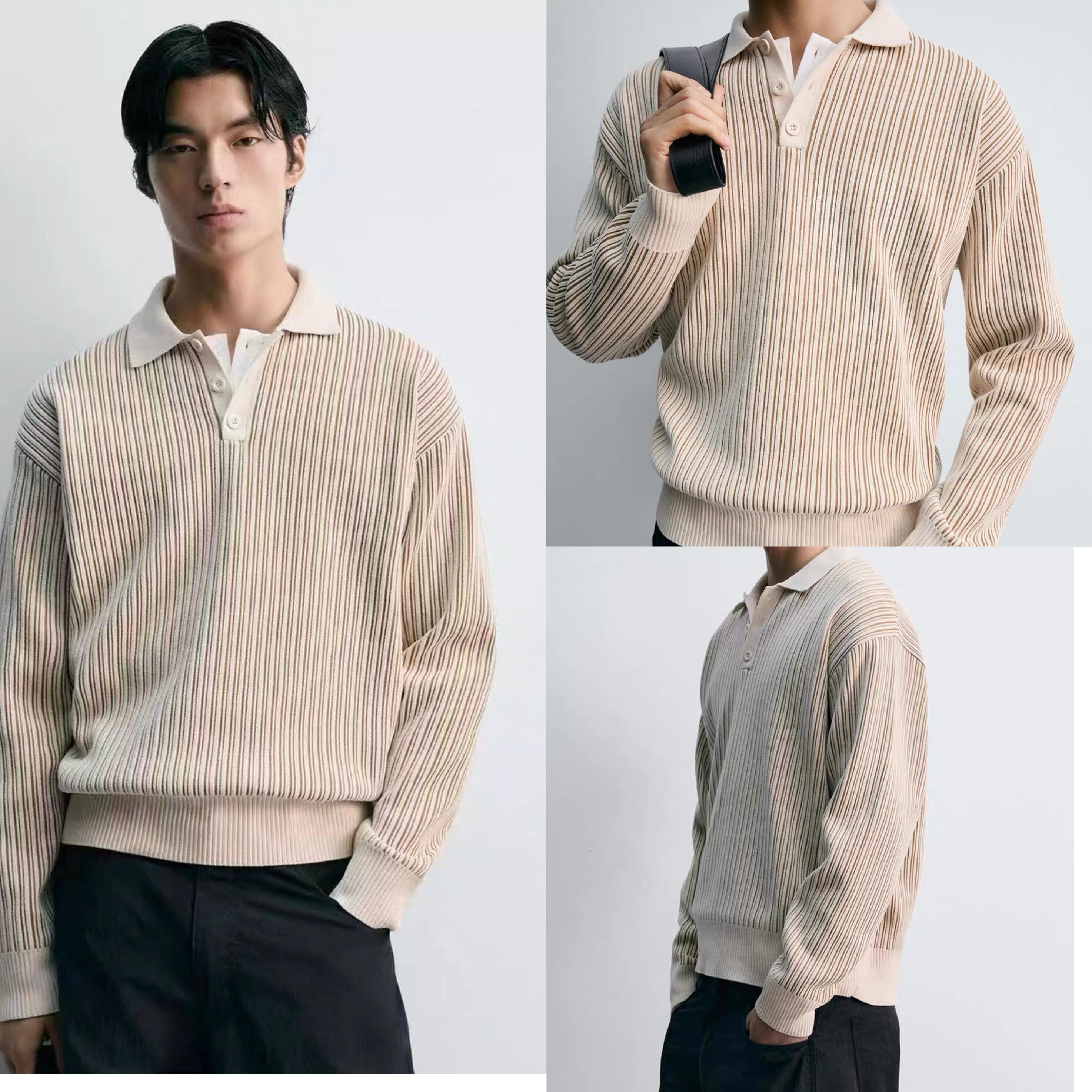 櫃429!ZA秋季新品男裝寬松長袖雪尼爾針織POLO衫毛衣4938313 712