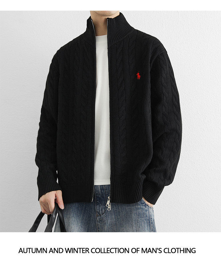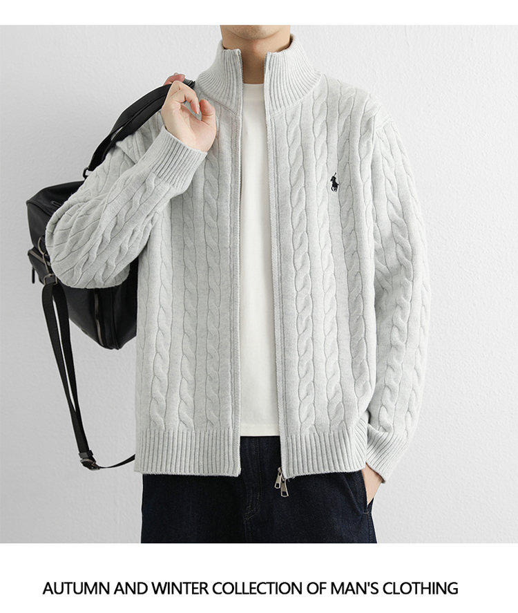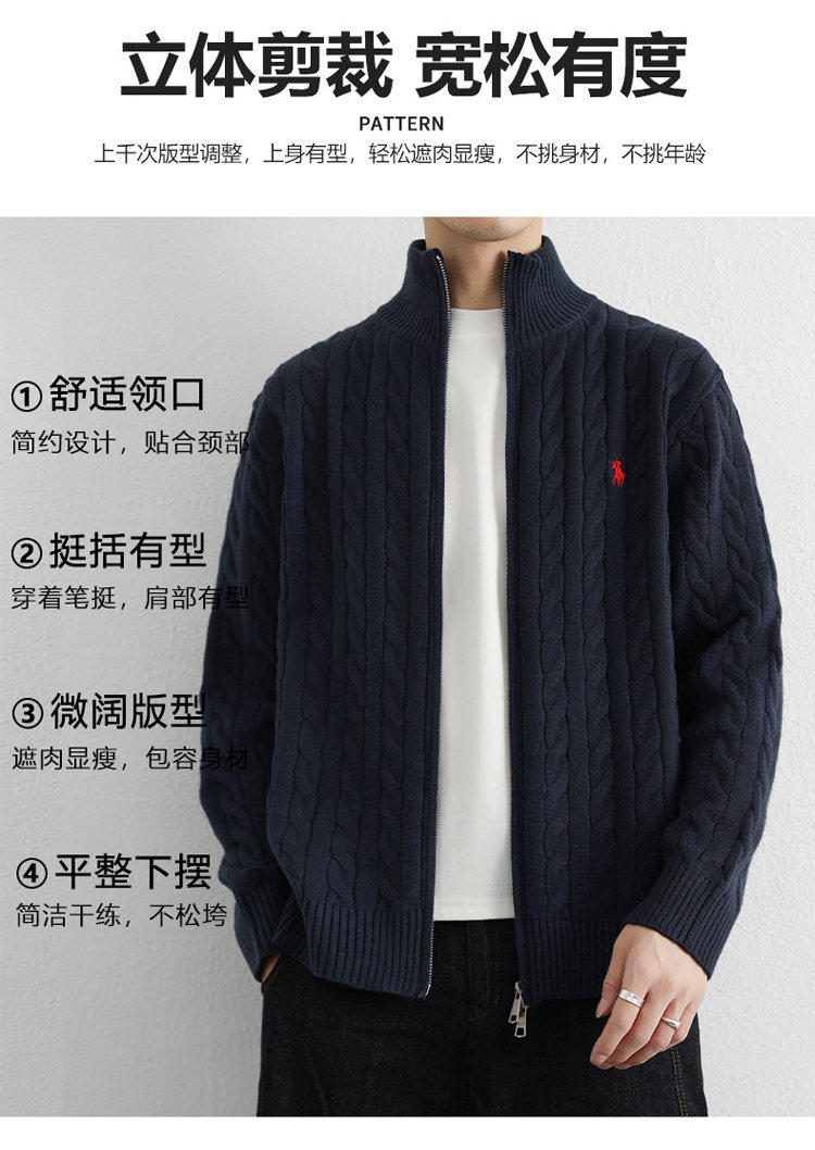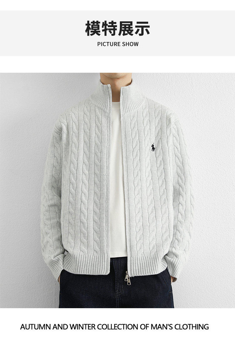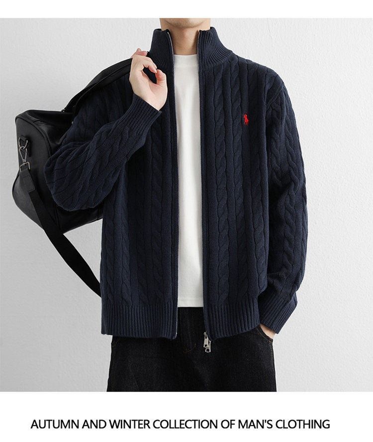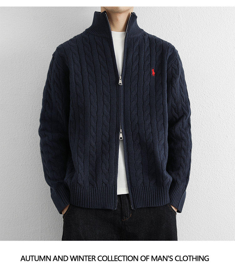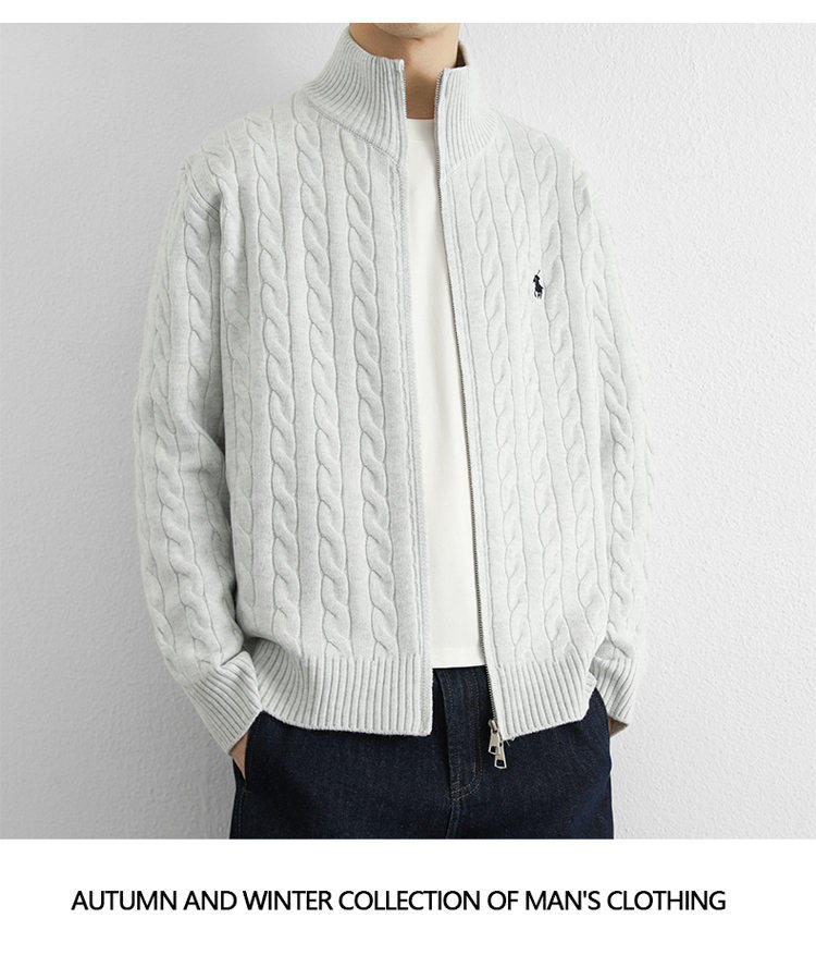 麻花毛衣外套男士開衫線衣秋冬季2025新款刺綉加厚立領拉鍊針織衫