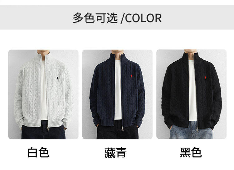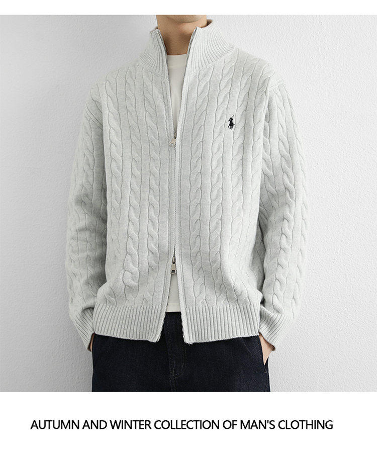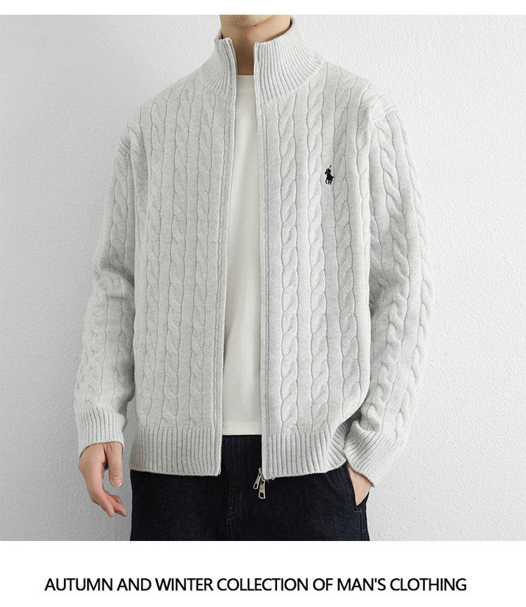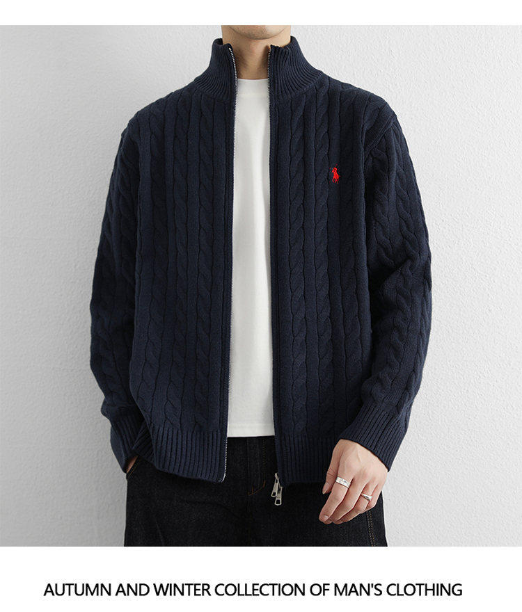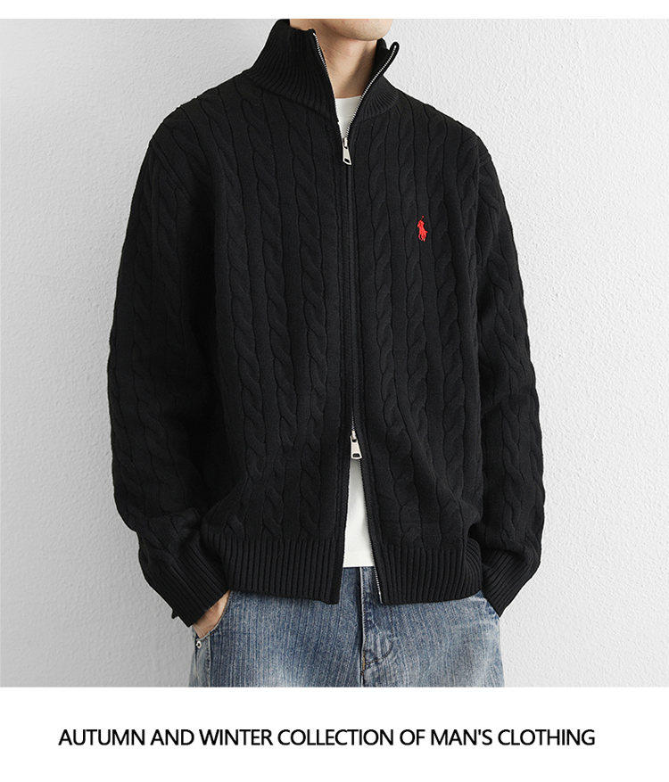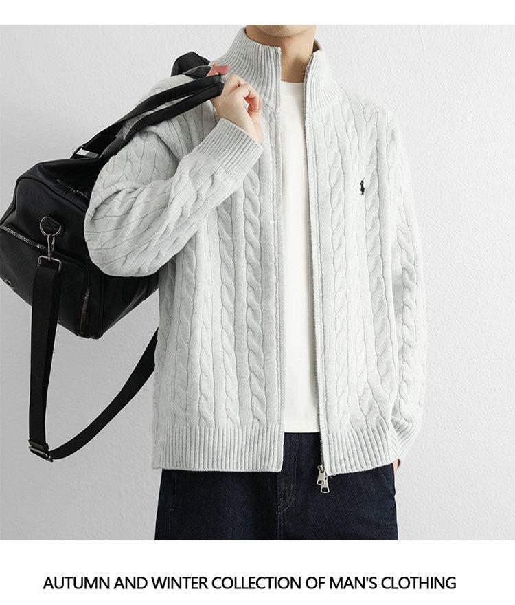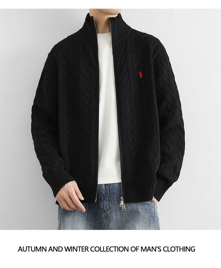 麻花毛衣外套男士開衫線衣秋冬季2025新款刺綉加厚立領拉鍊針織衫