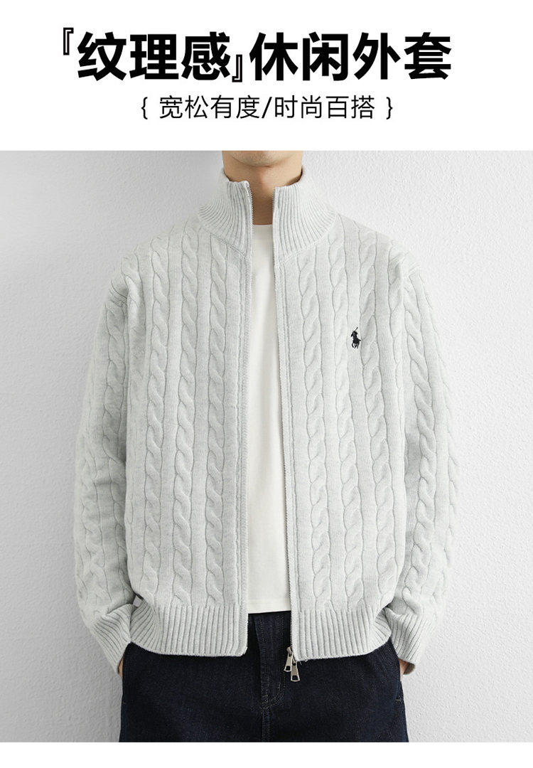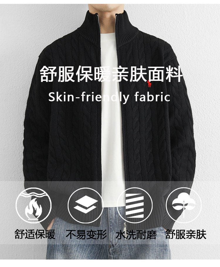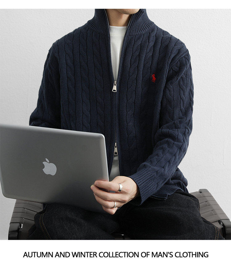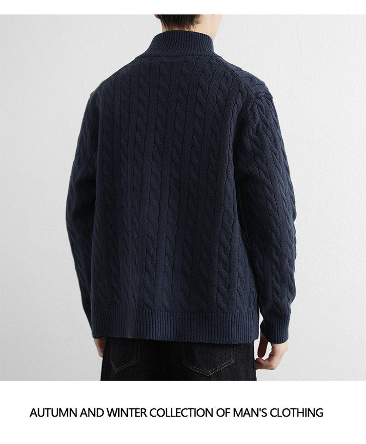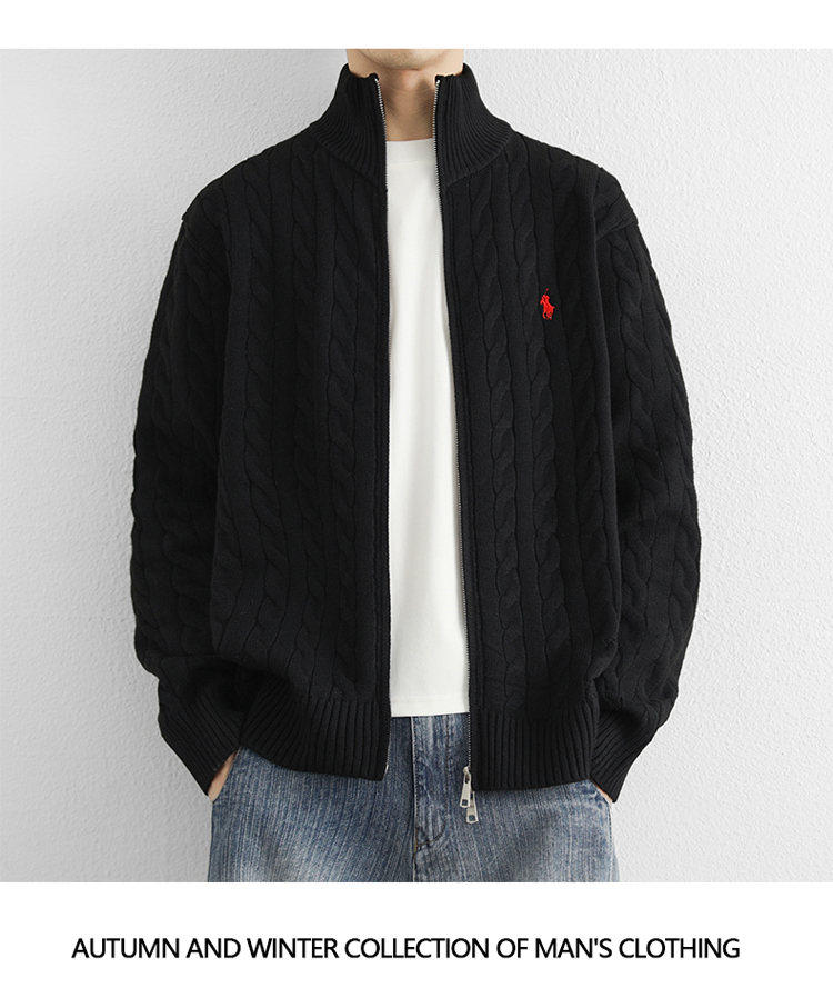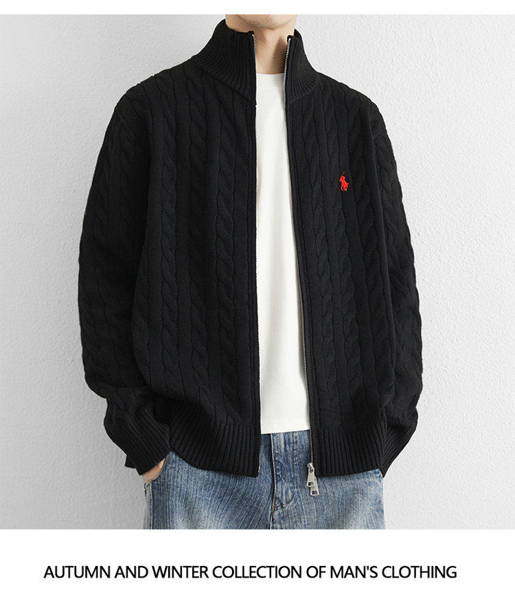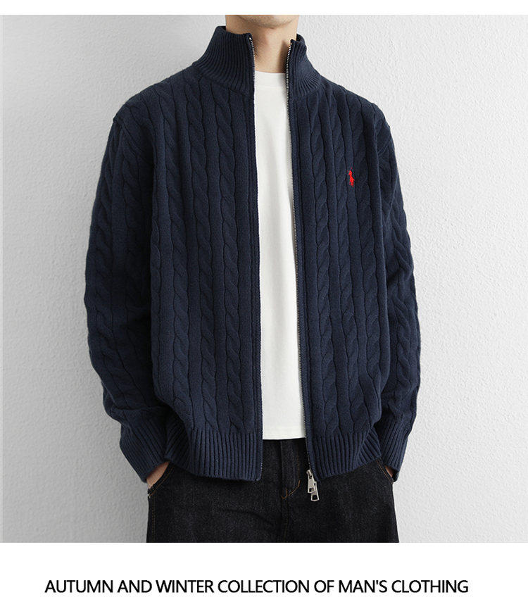 麻花毛衣外套男士開衫線衣秋冬季2025新款刺綉加厚立領拉鍊針織衫