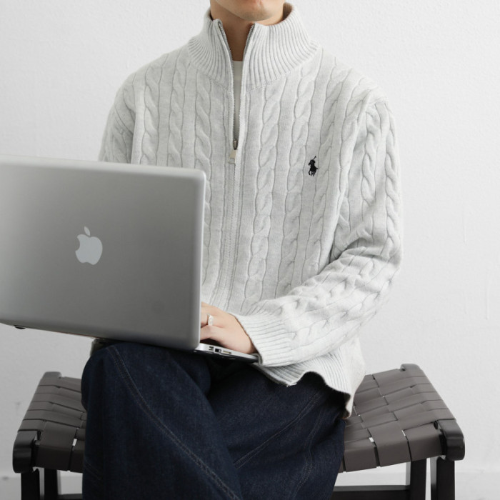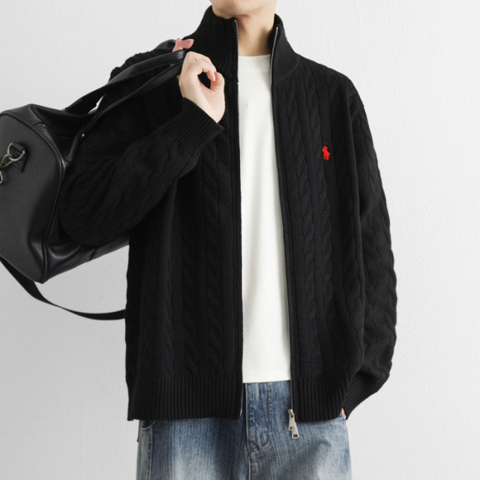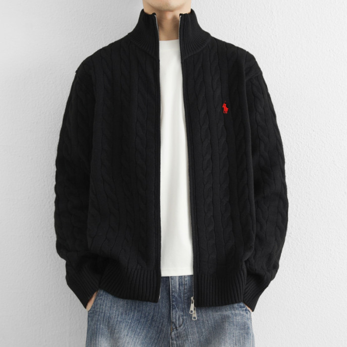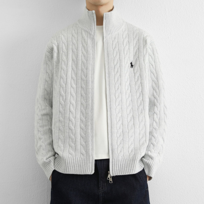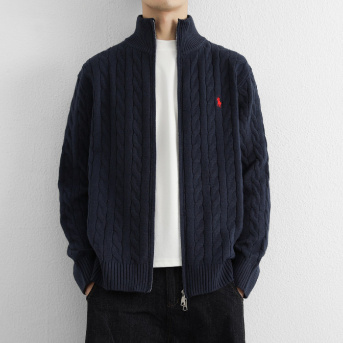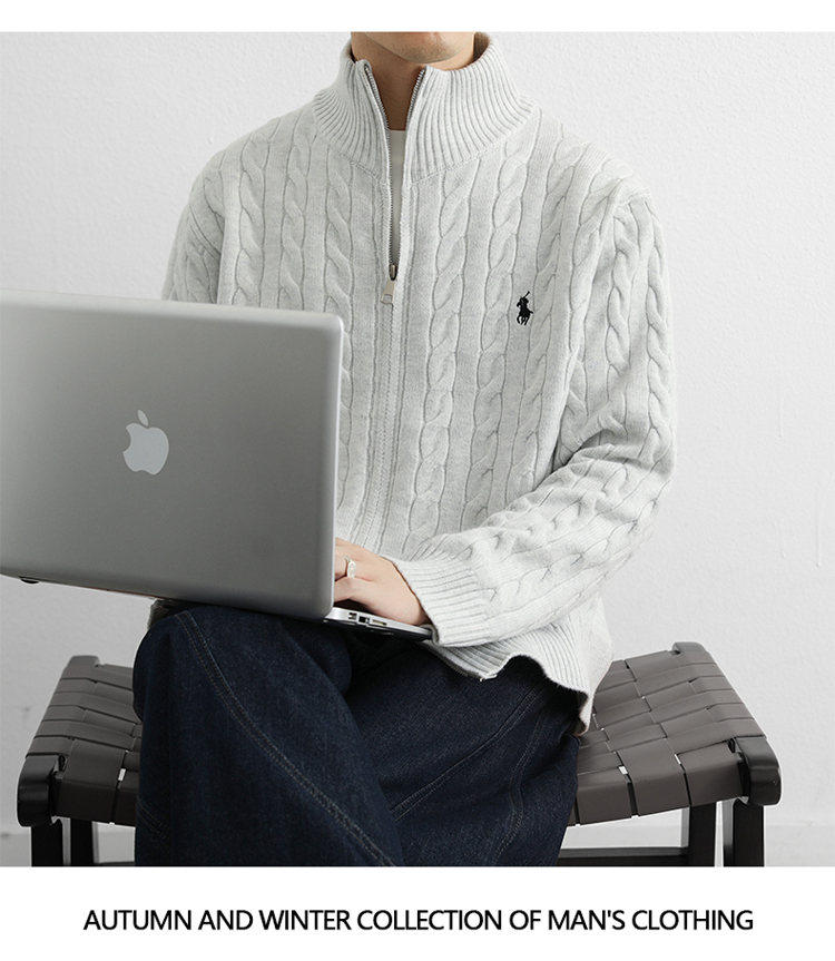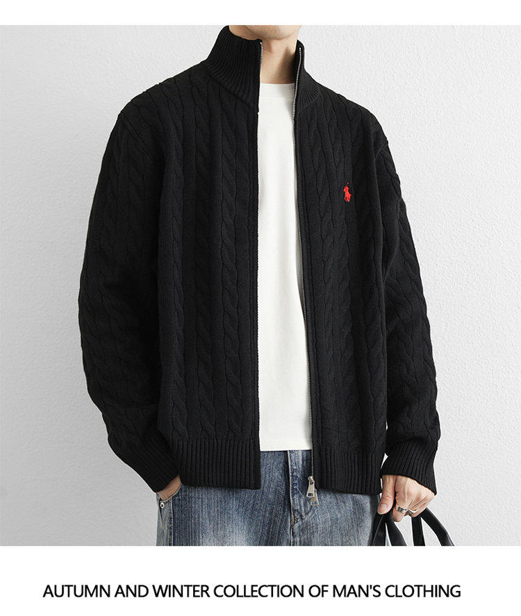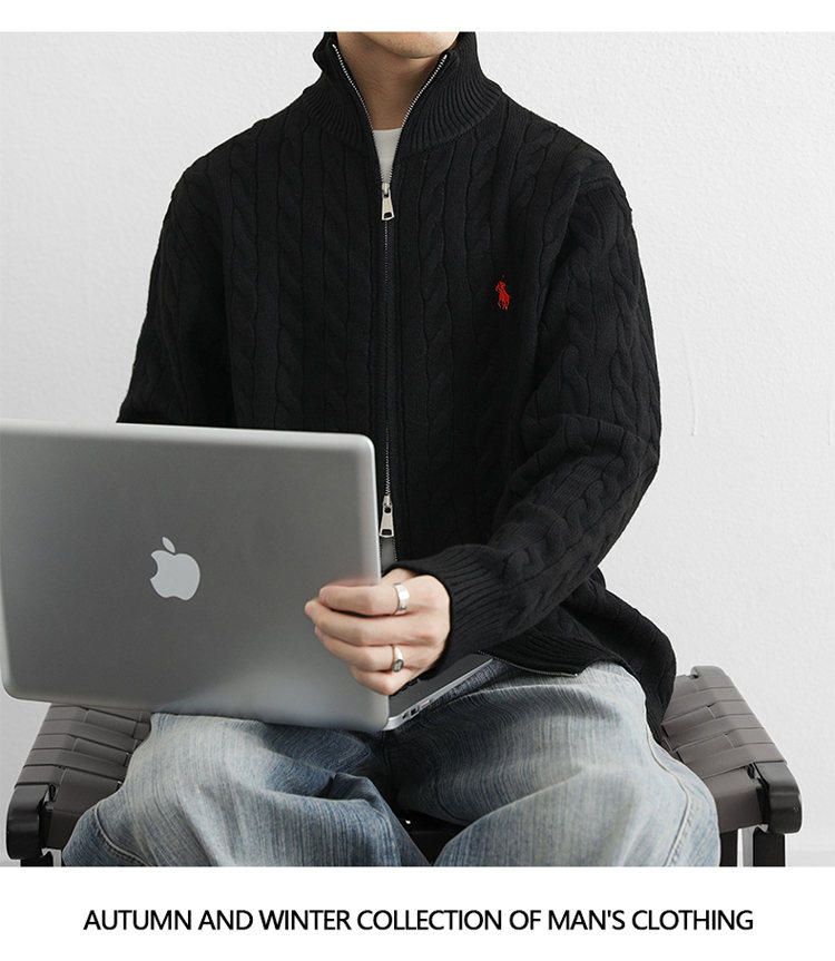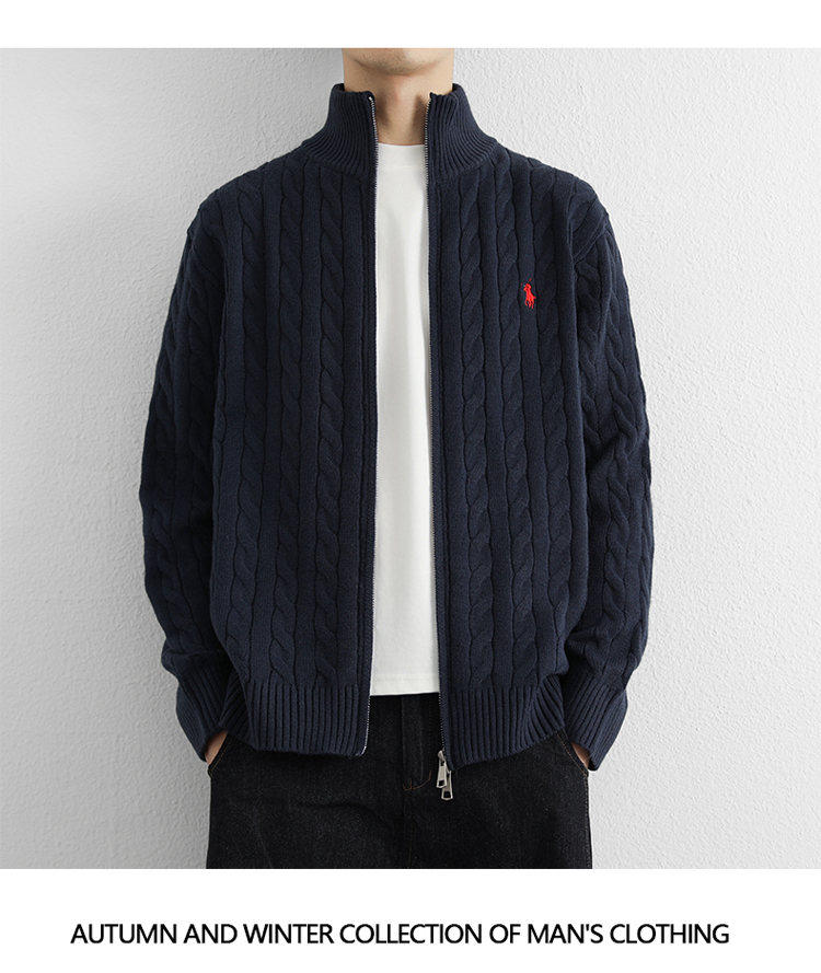 麻花毛衣外套男士開衫線衣秋冬季2025新款刺綉加厚立領拉鍊針織衫