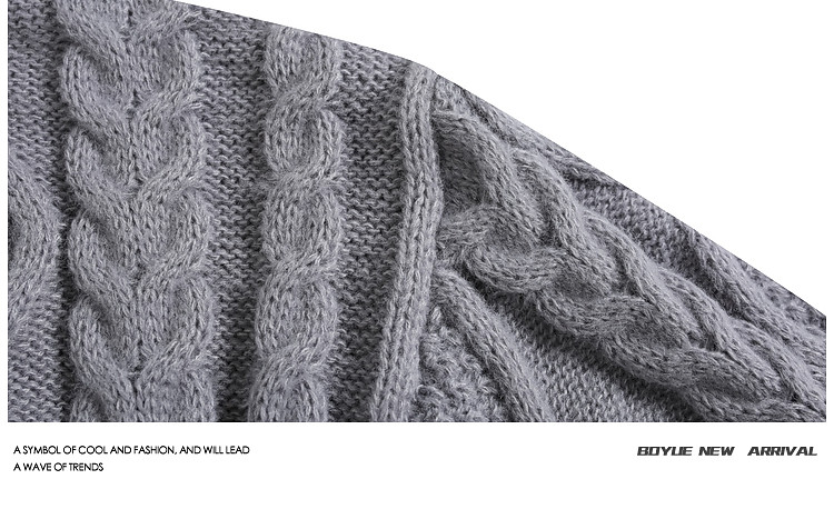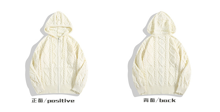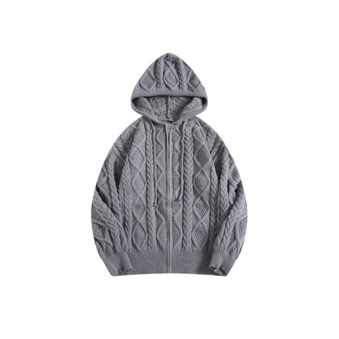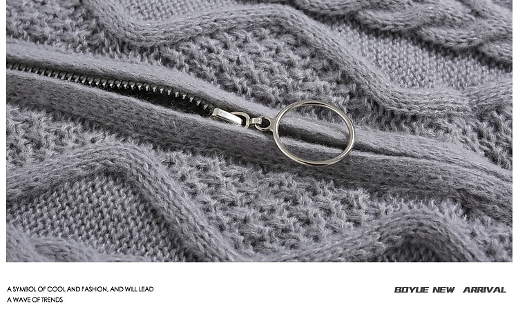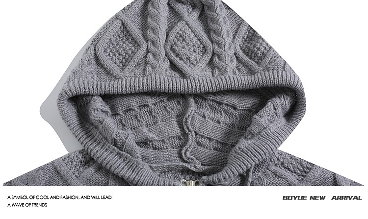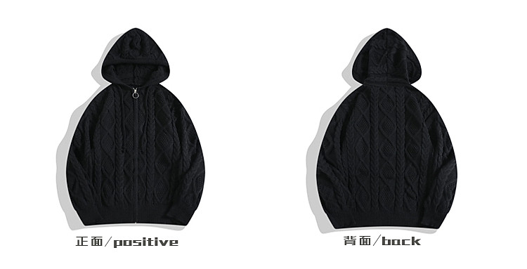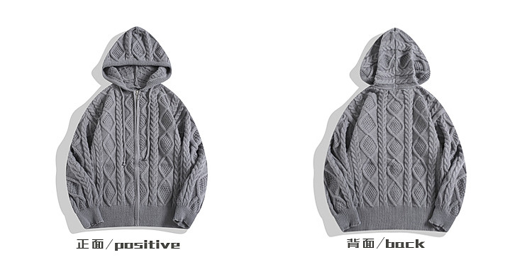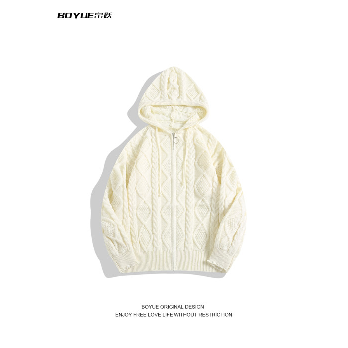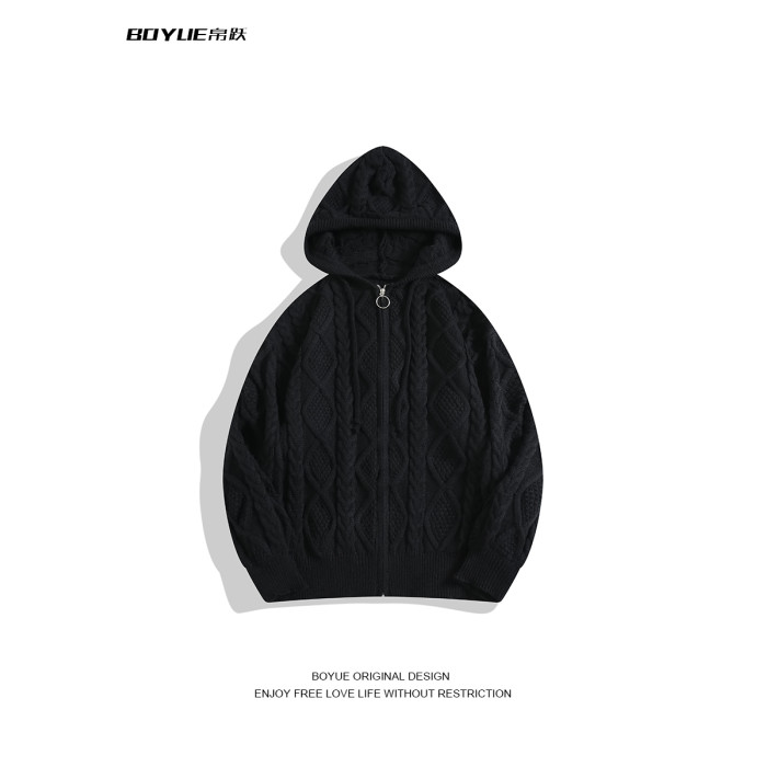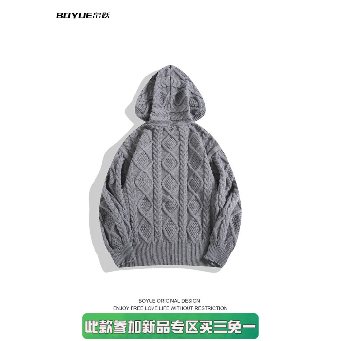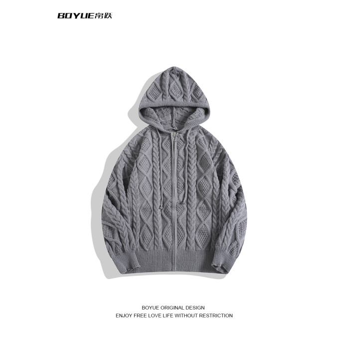 BOYUE帛躍秋冬加厚麻花紋理針織外套連帽慵懶風ins百搭拉鍊毛衣男