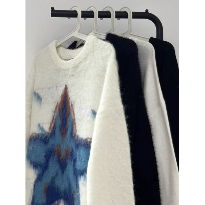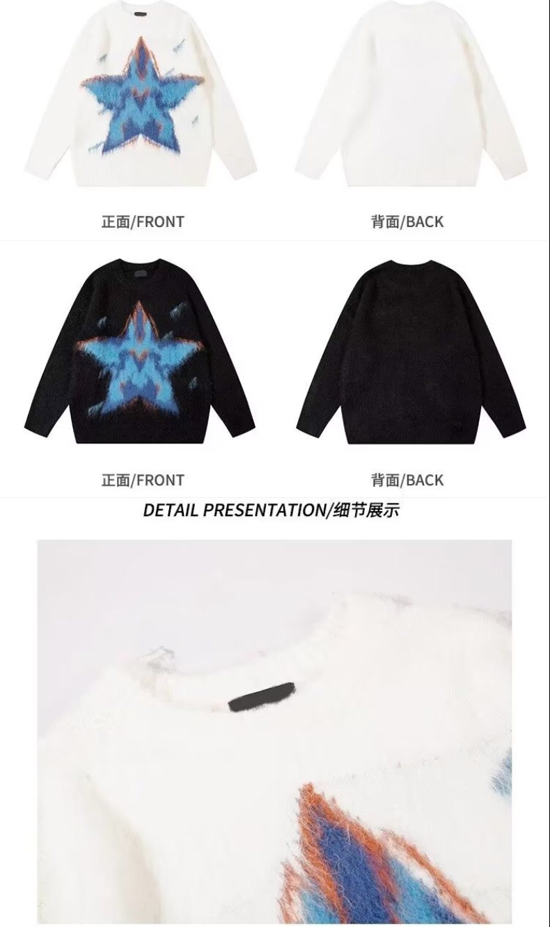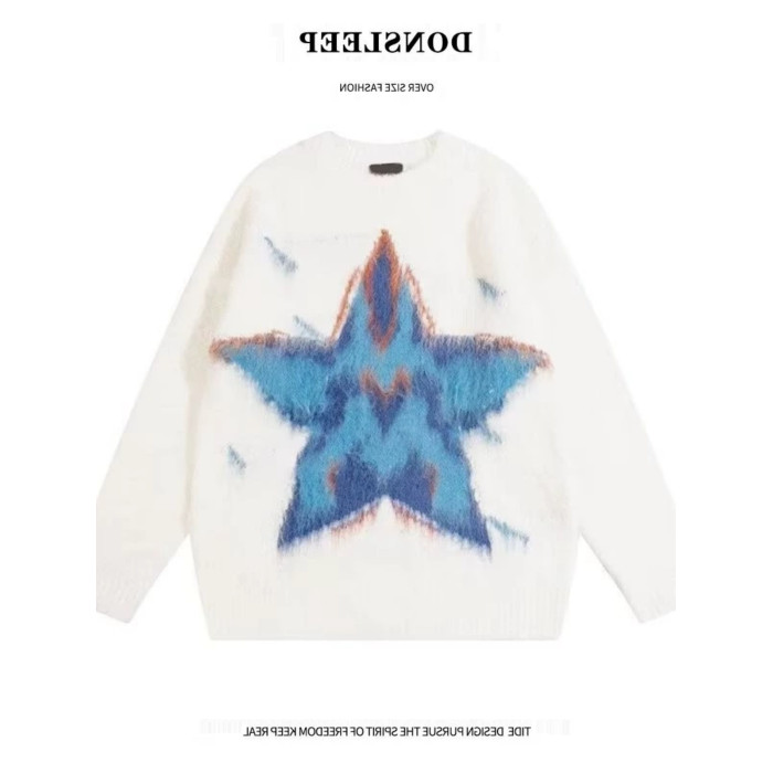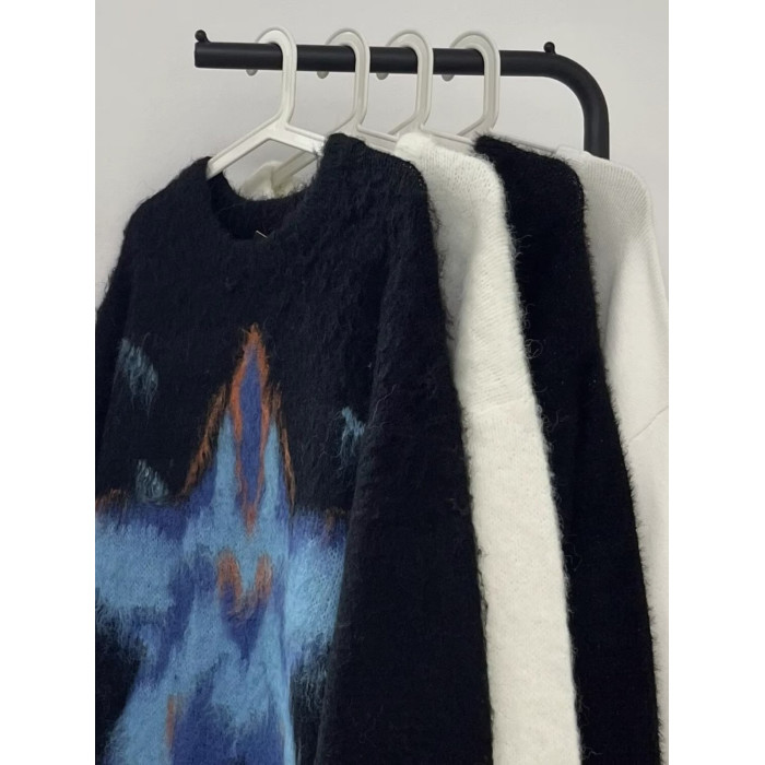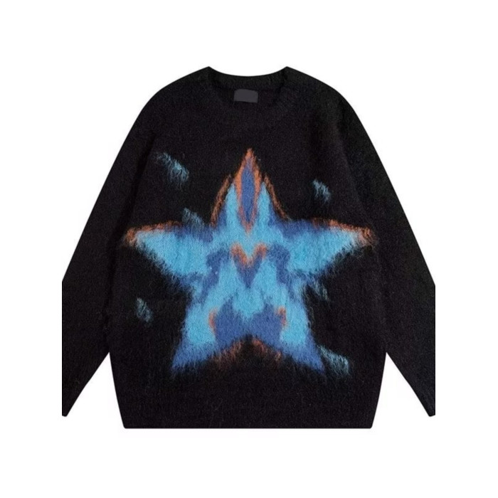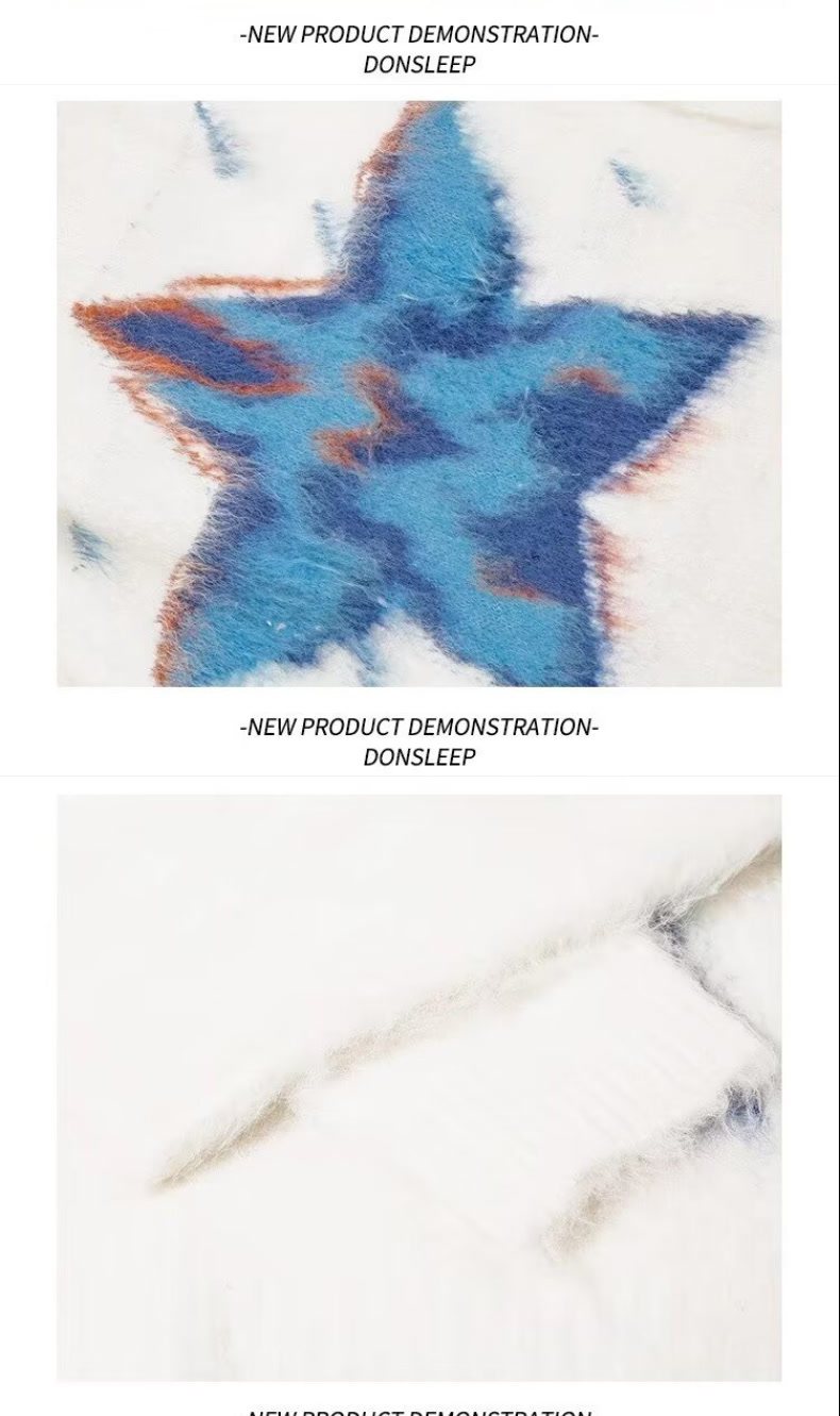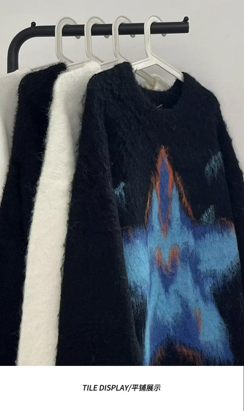 美式復古仿貂毛五角星星毛衣男女冬季高級感慵懶風潮牌針織衫外套