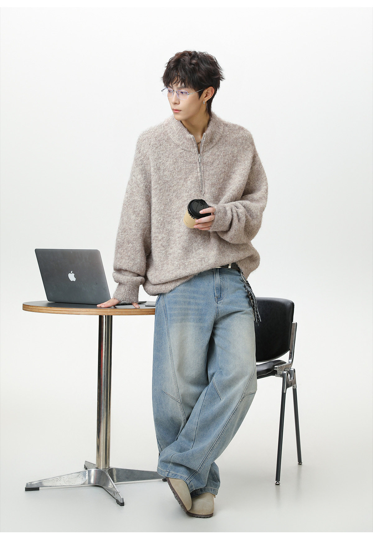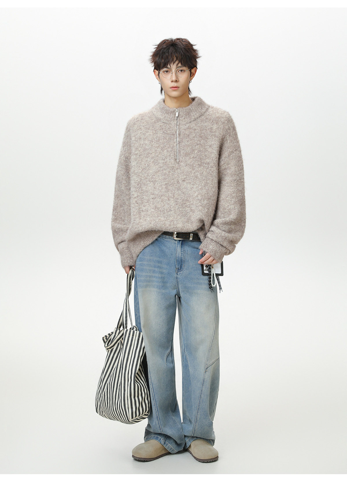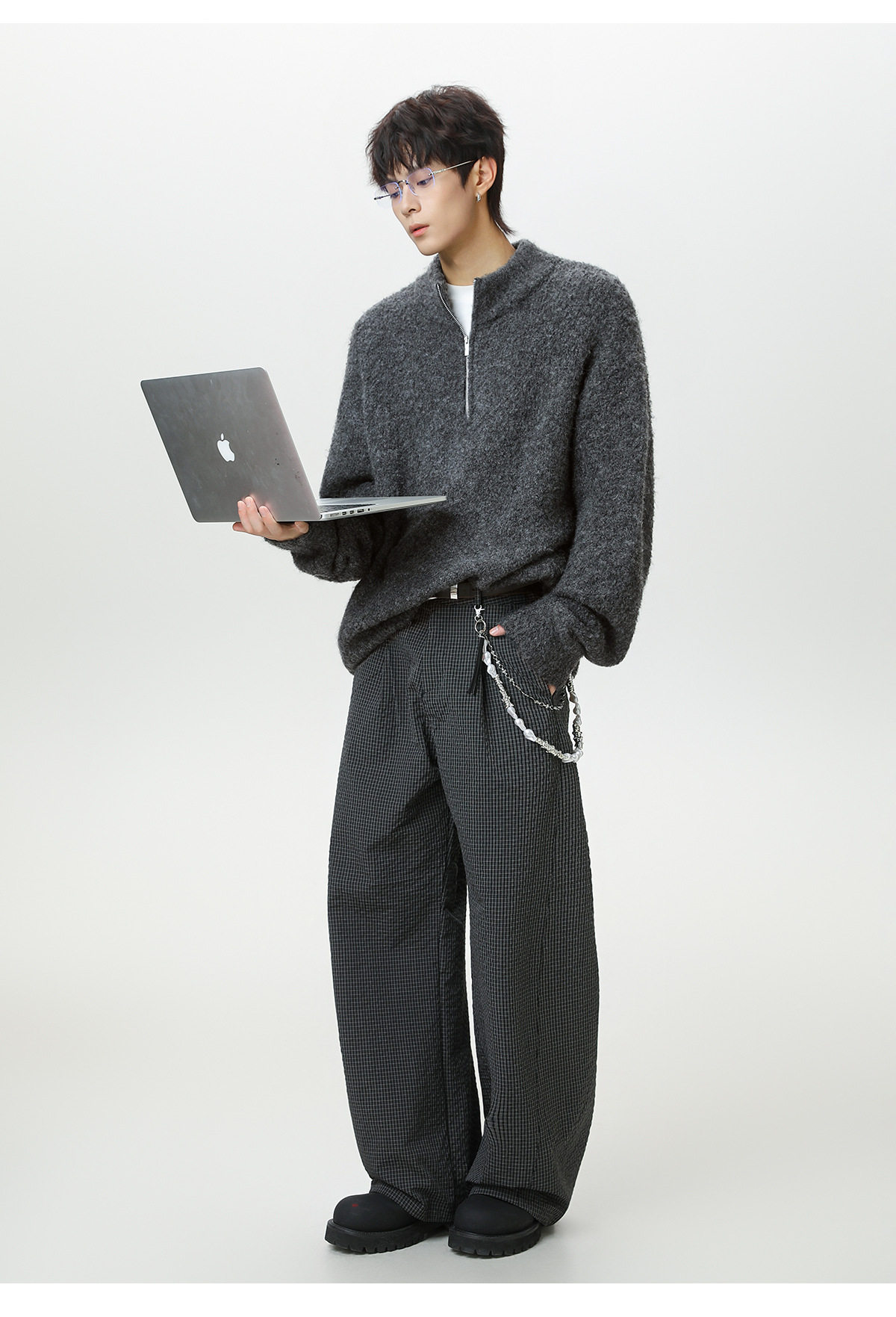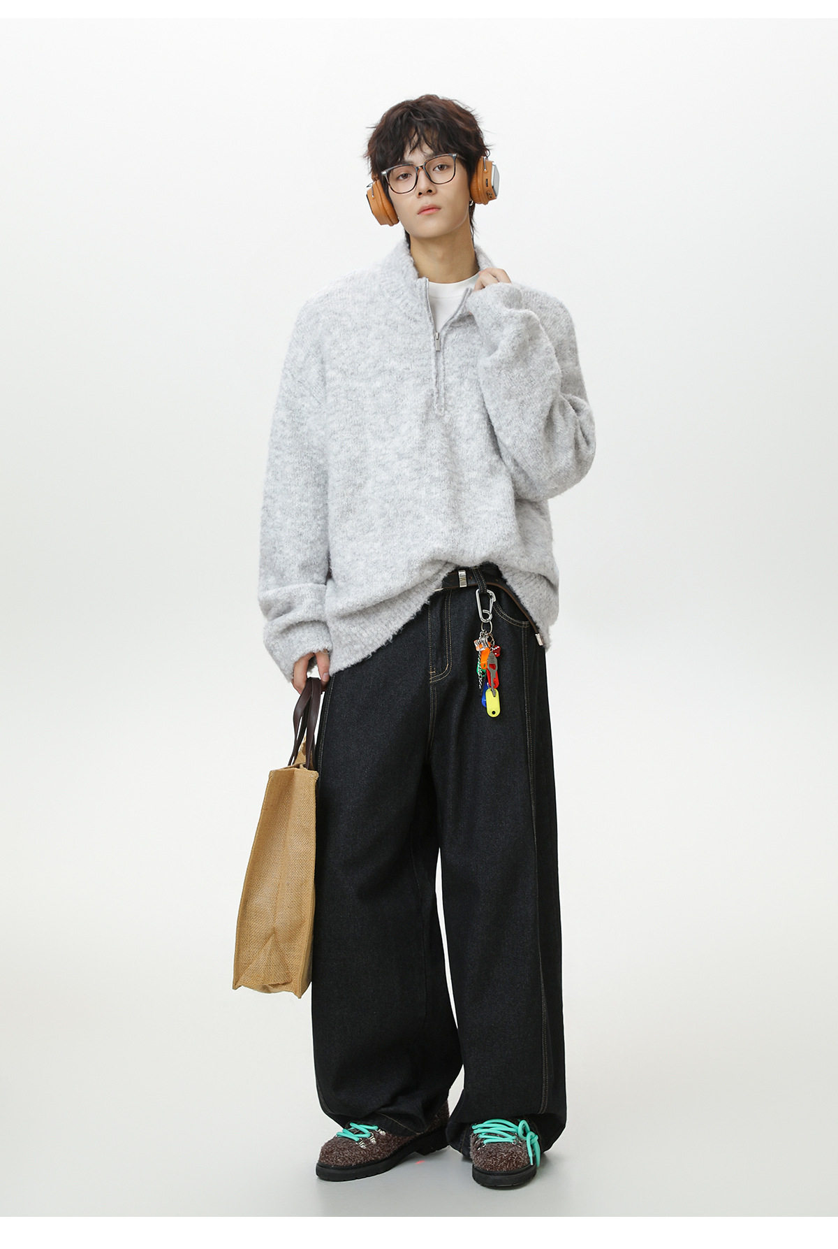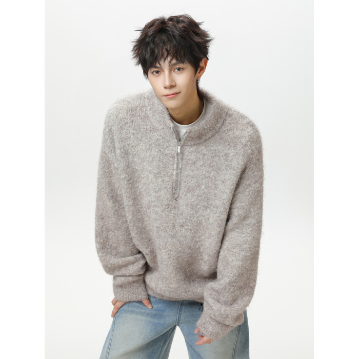 深灰色半拉鍊立領毛衣男款秋冬潮牌新款寬松慵懶風套頭針織衫外套