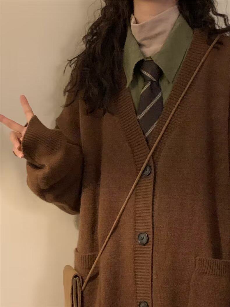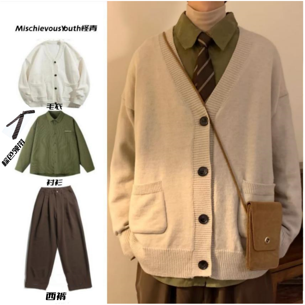 四件裝/單件秋冬日系復古純色開衫毛衣男女學院風軟糯針織衫外套