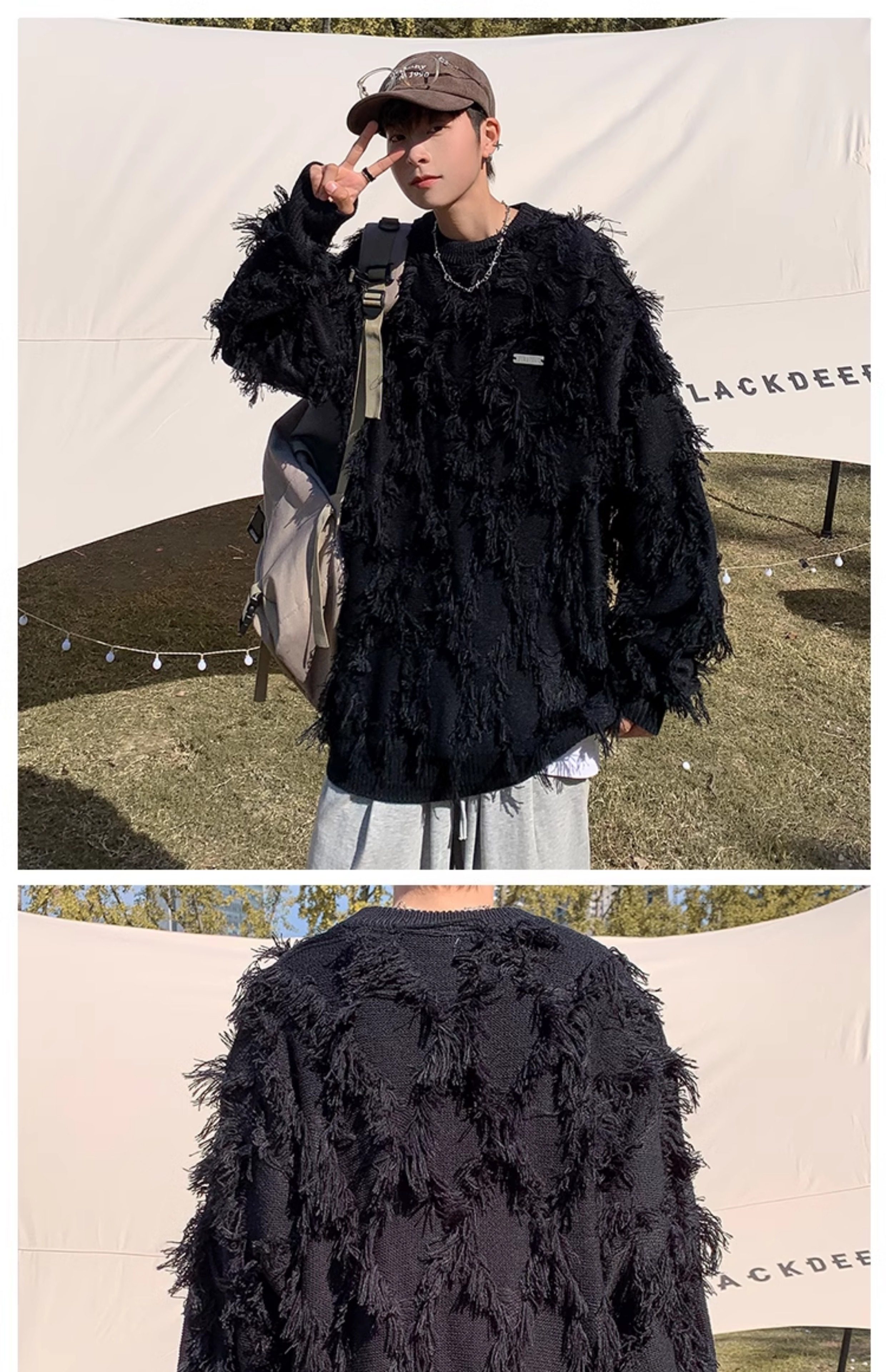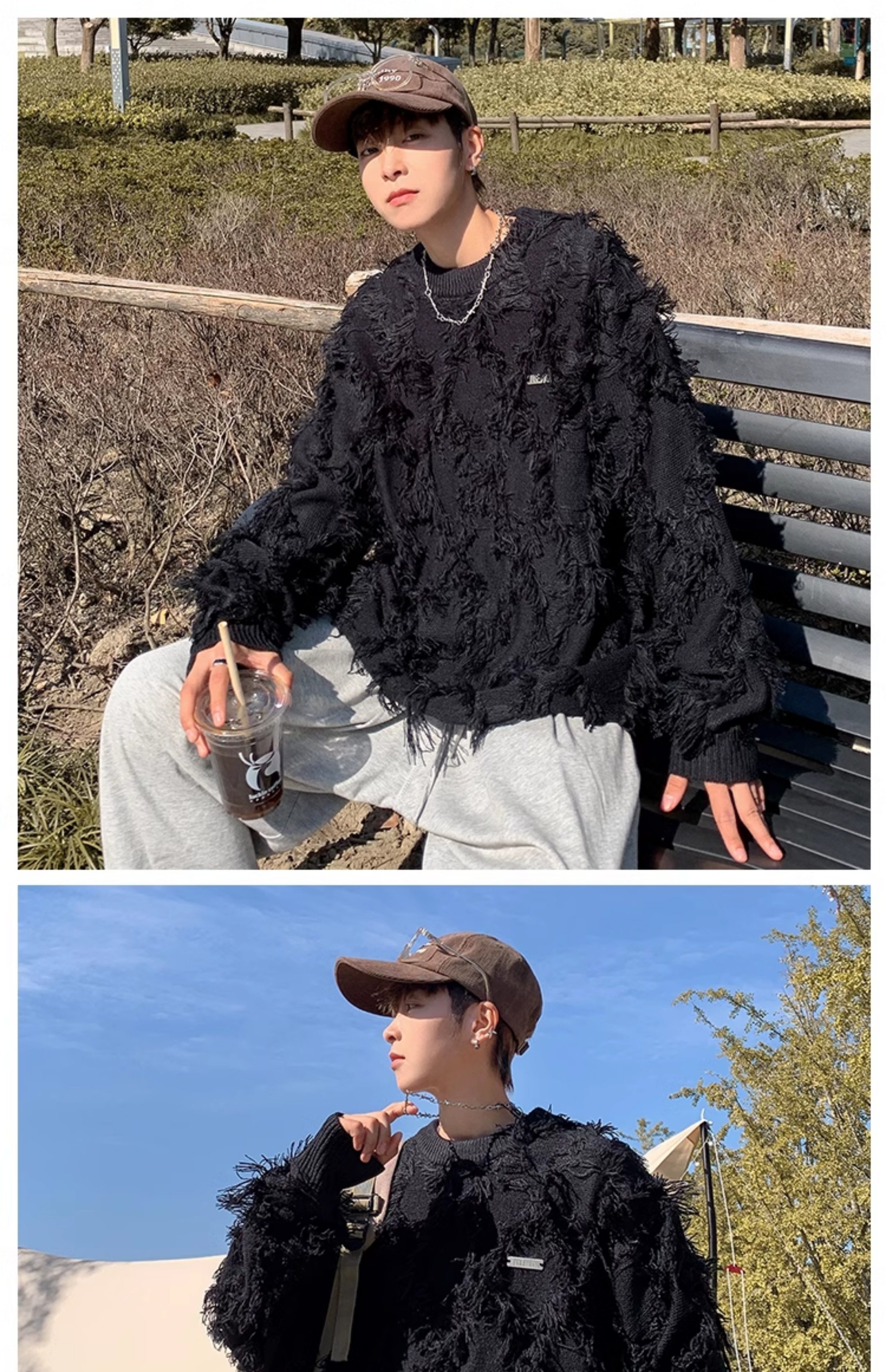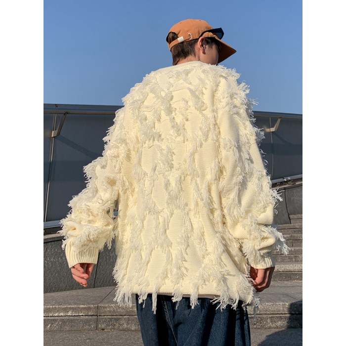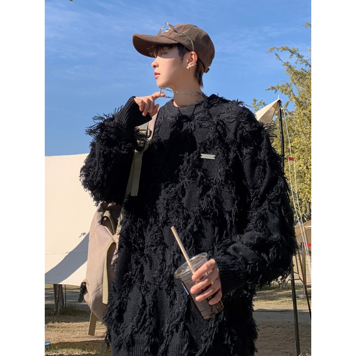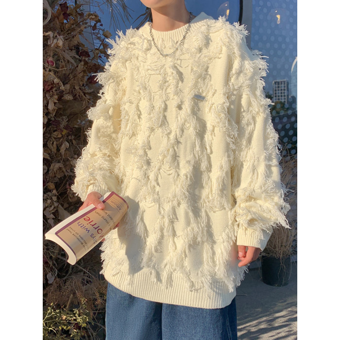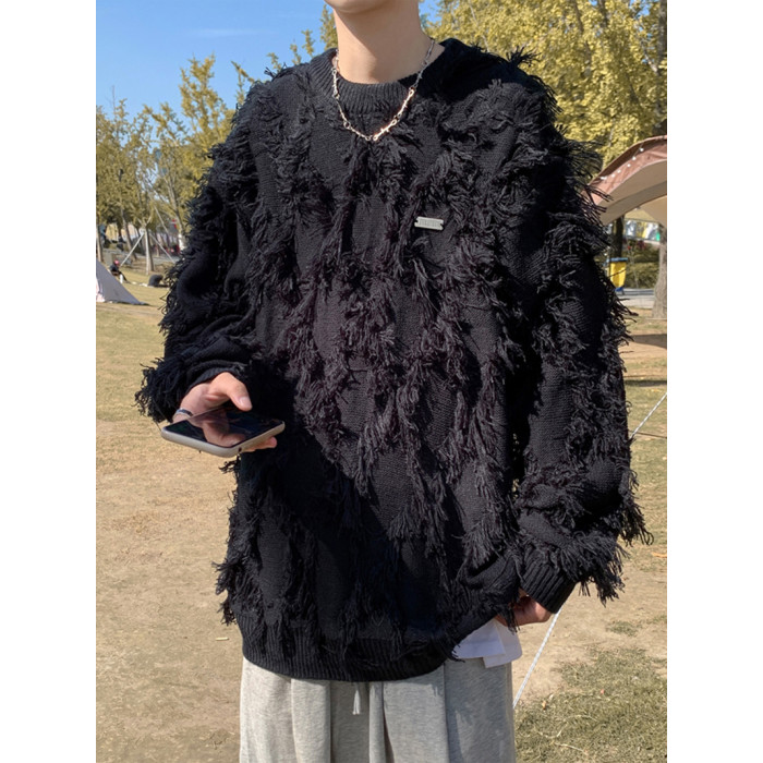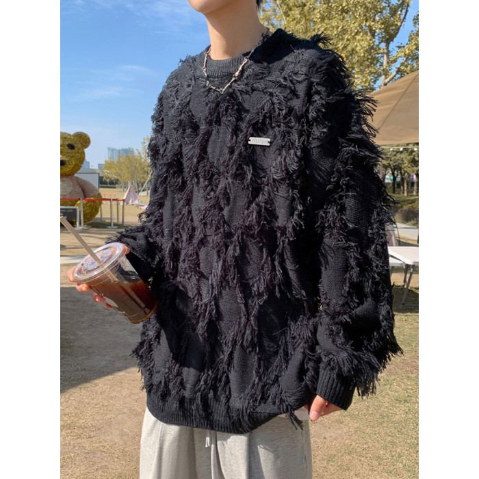 高街潮牌勾花毛衣慵嬾高級感男士秋冬季加厚炸街設計感情侶針織衫