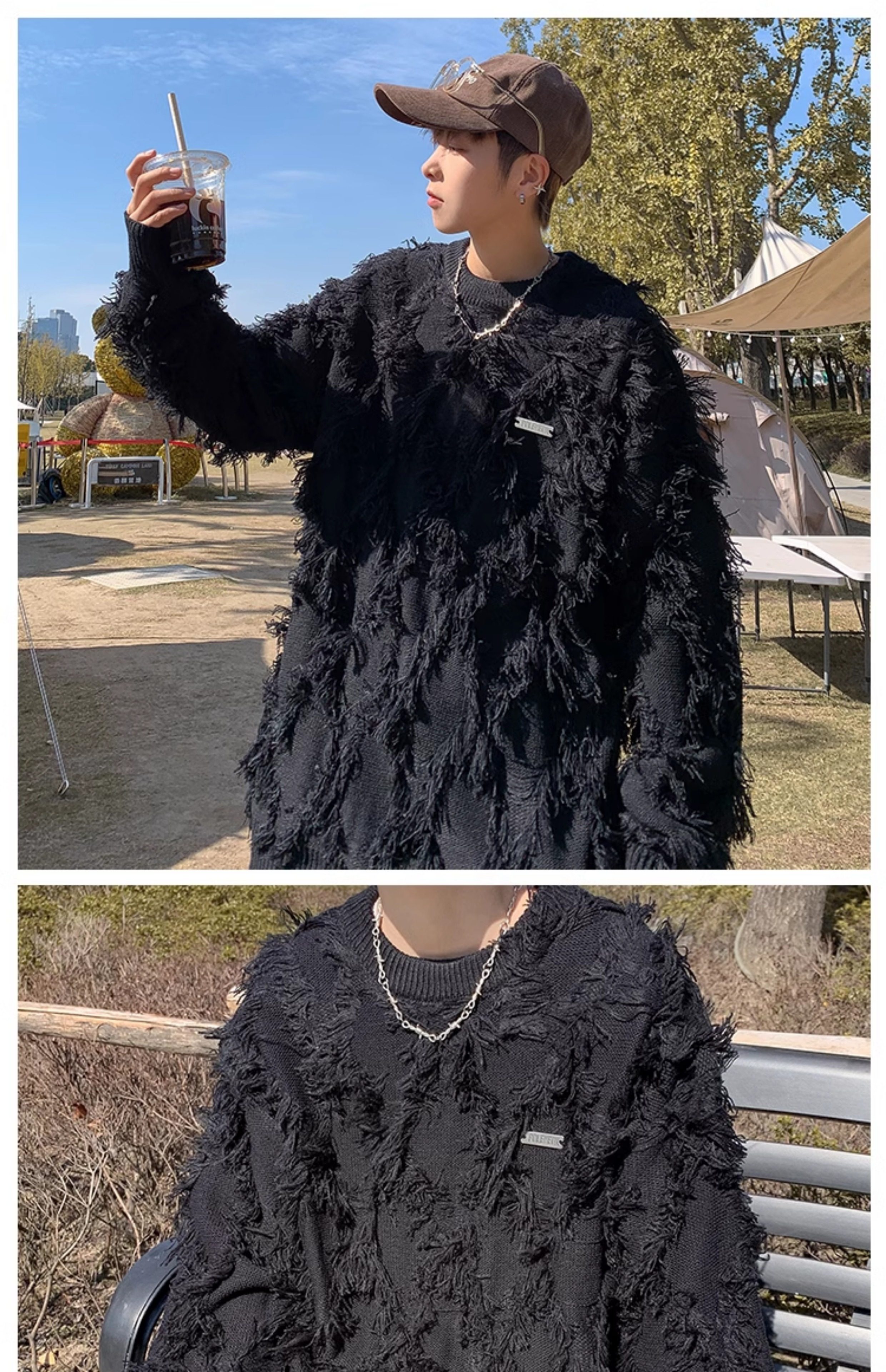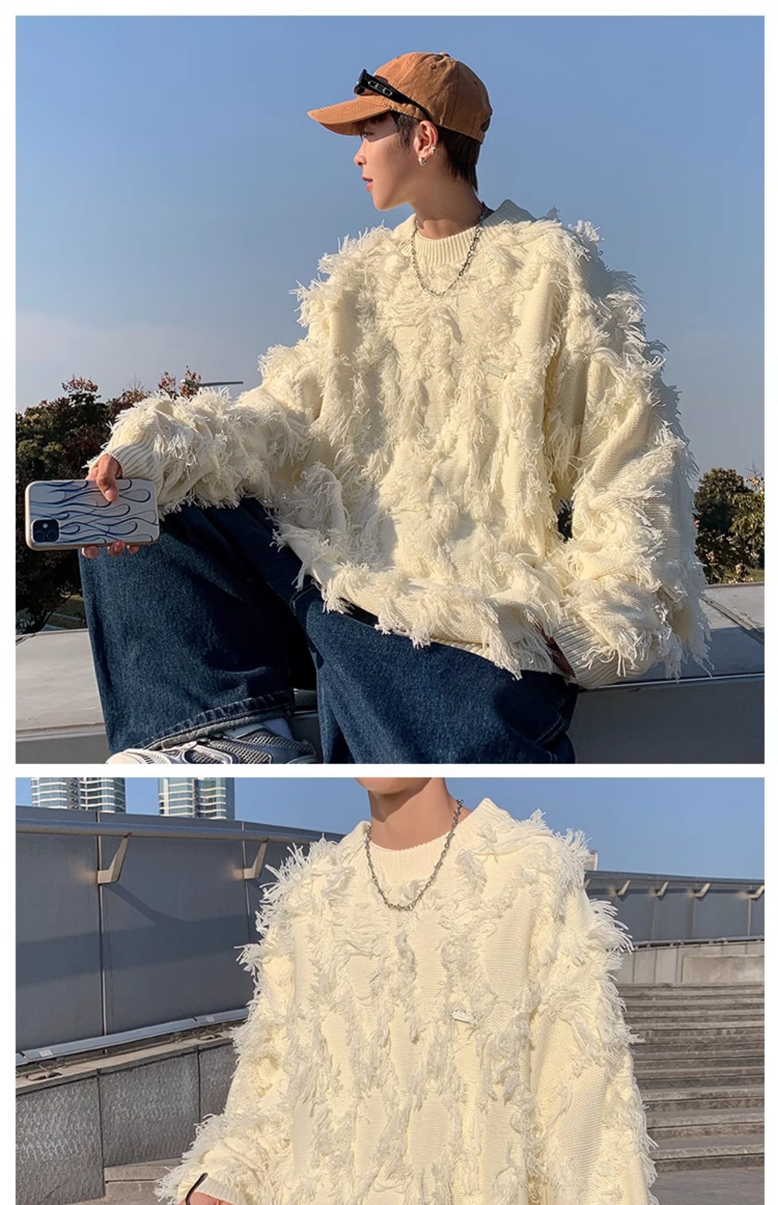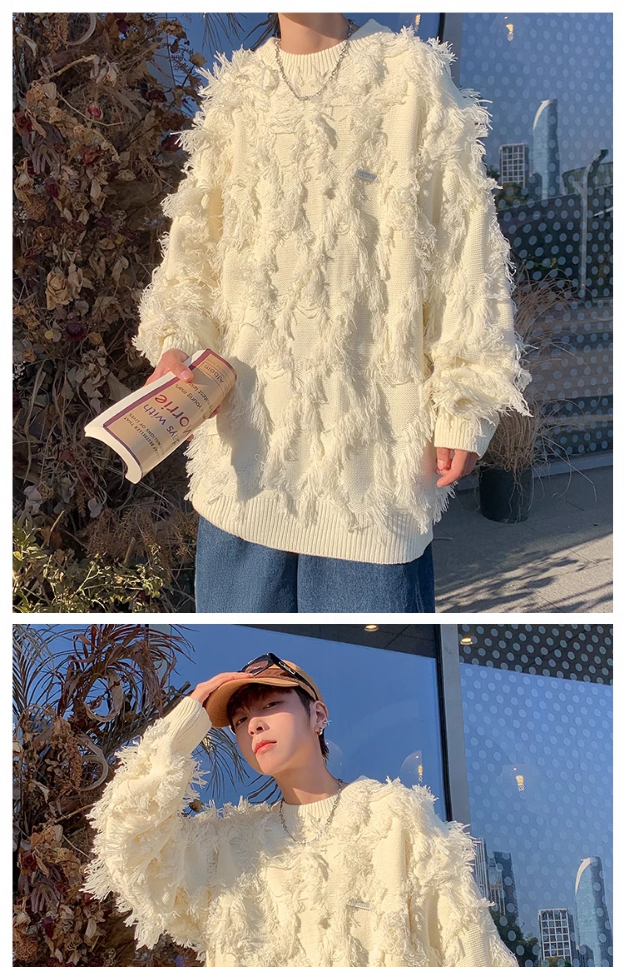 高街潮牌勾花毛衣慵嬾高級感男士秋冬季加厚炸街設計感情侶針織衫