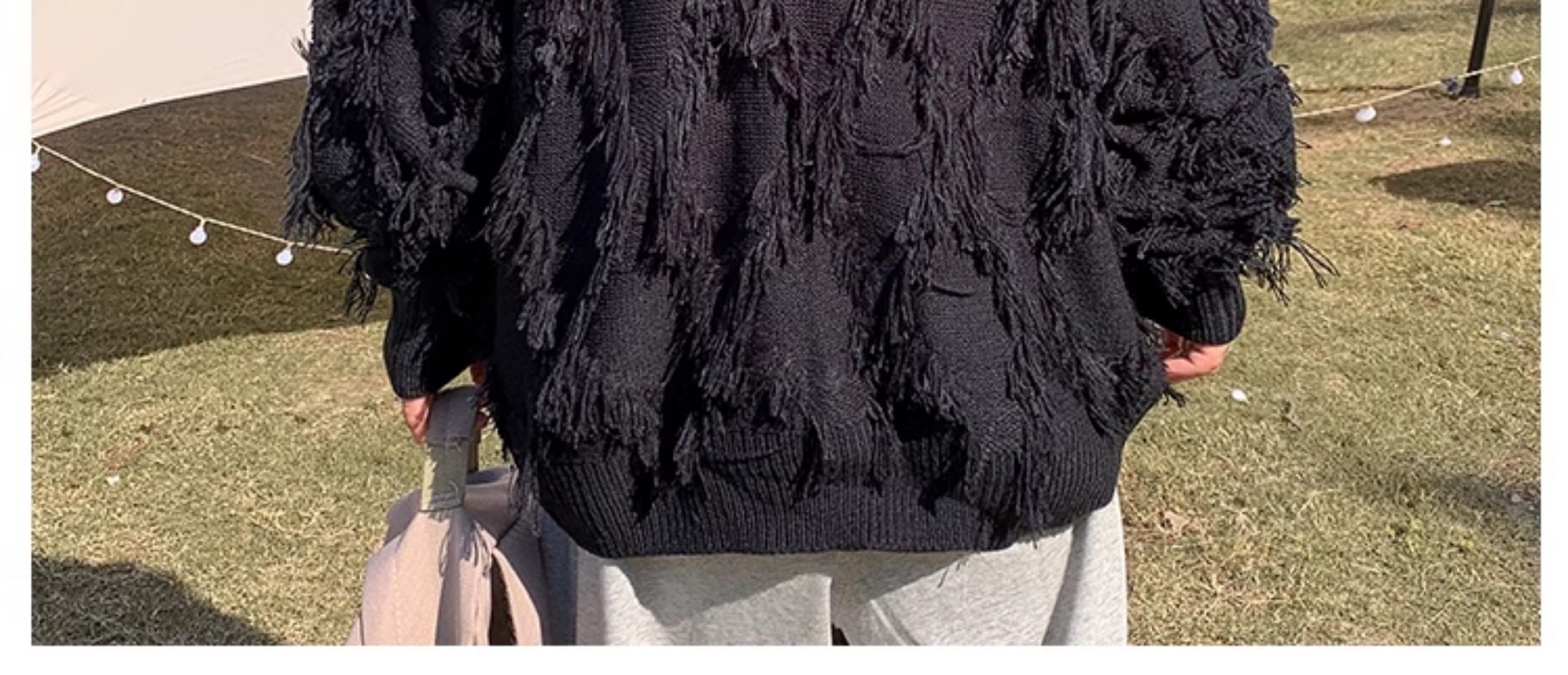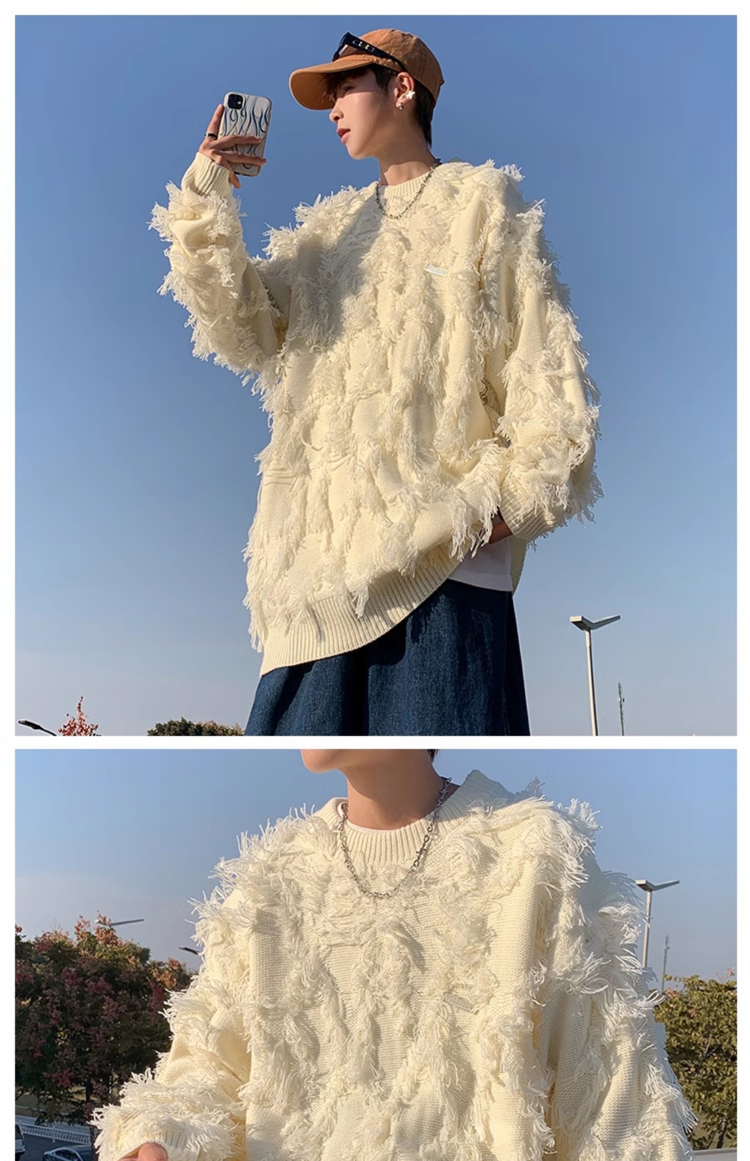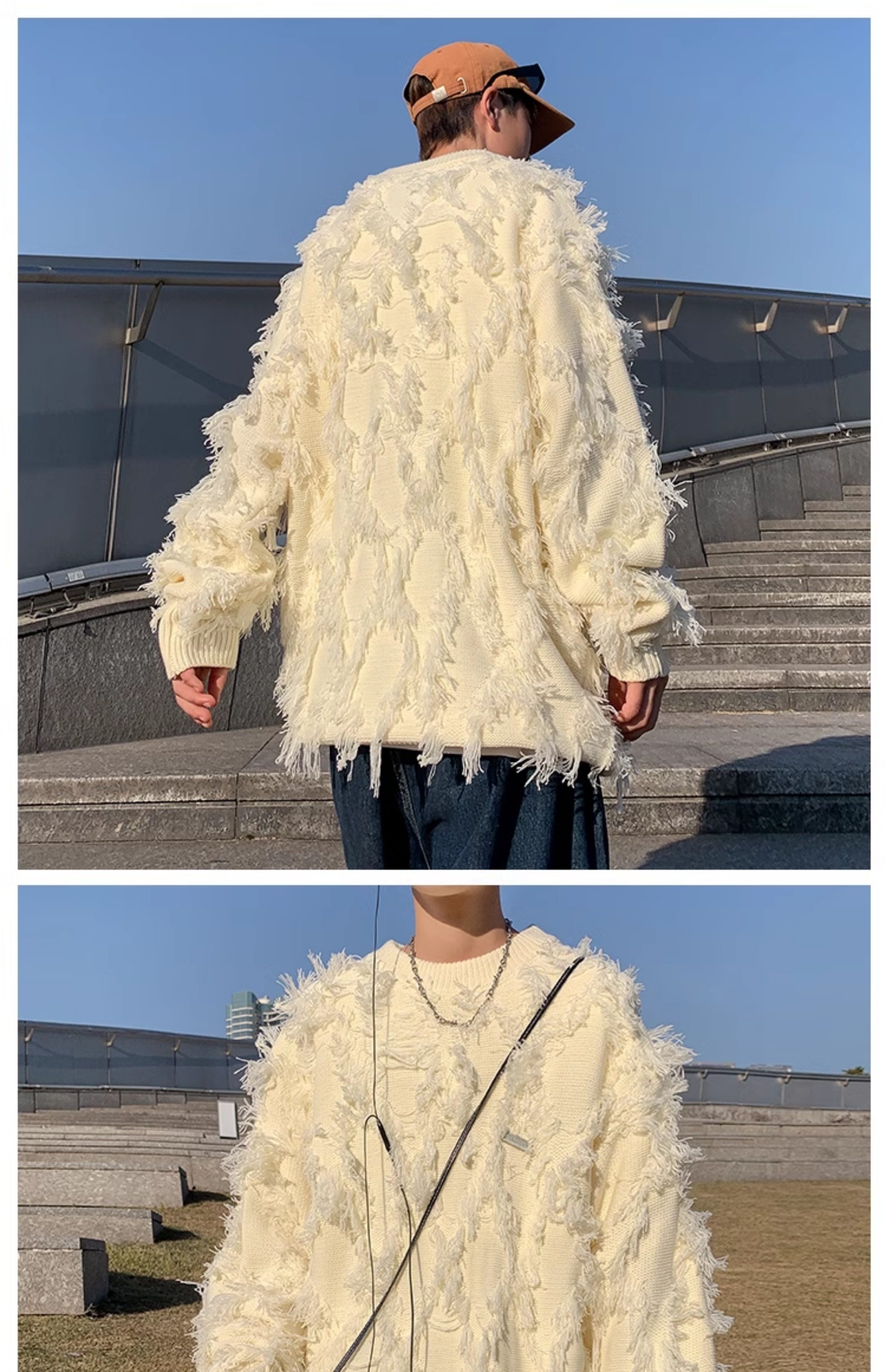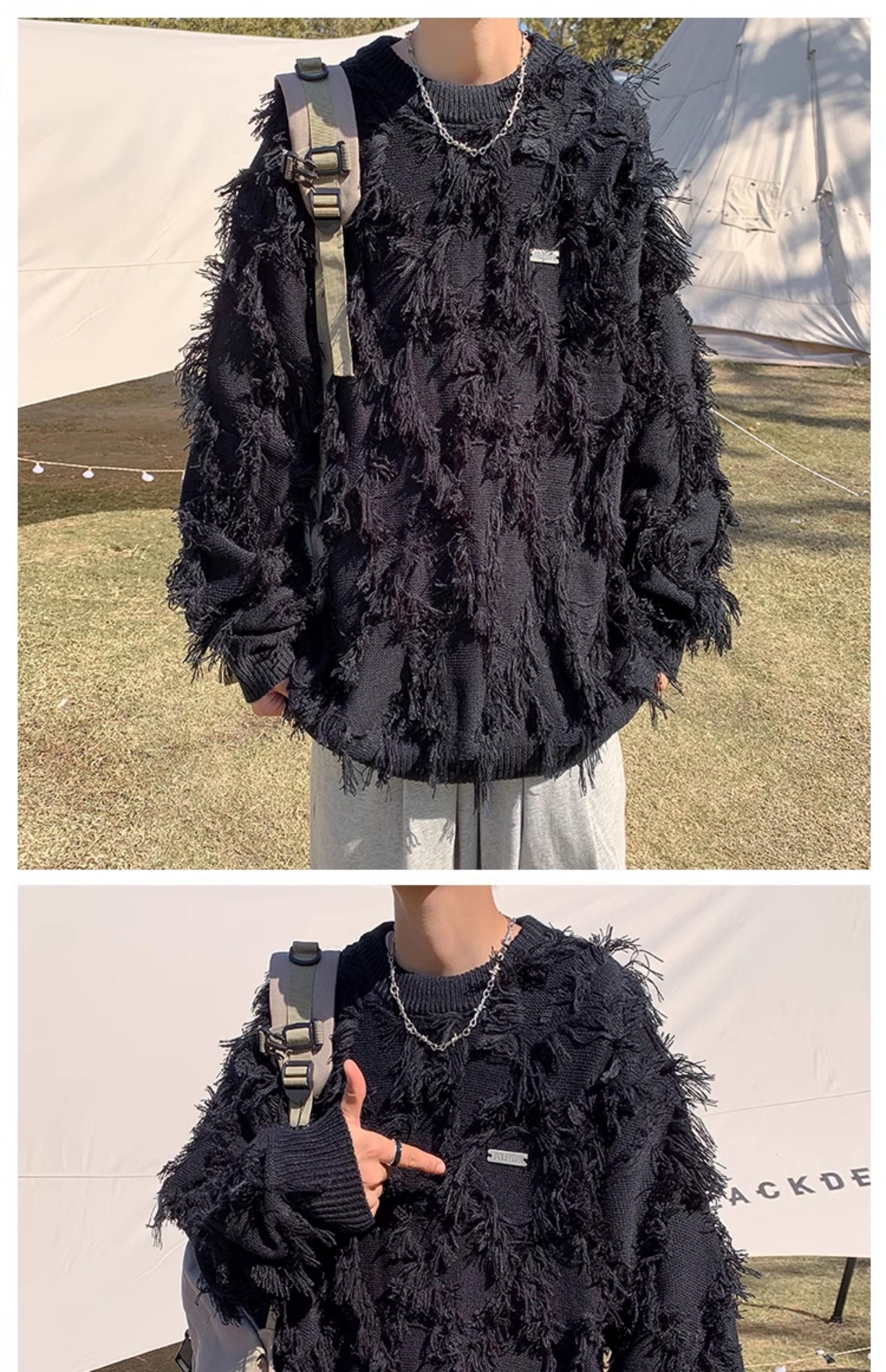 高街潮牌勾花毛衣慵嬾高級感男士秋冬季加厚炸街設計感情侶針織衫