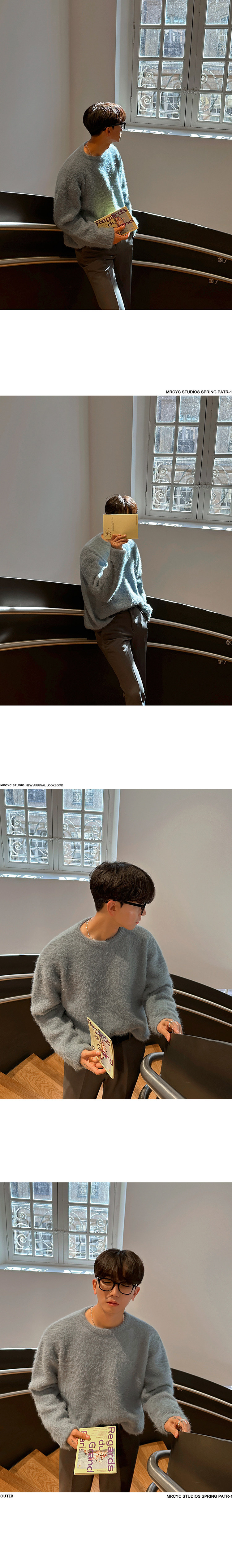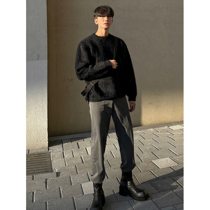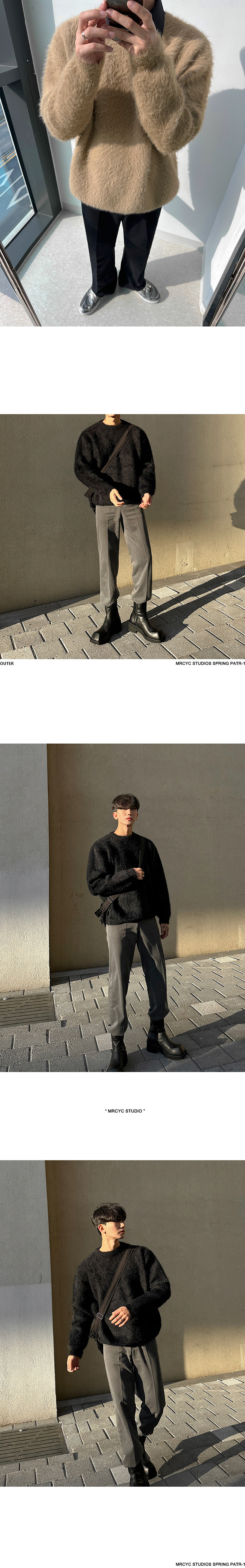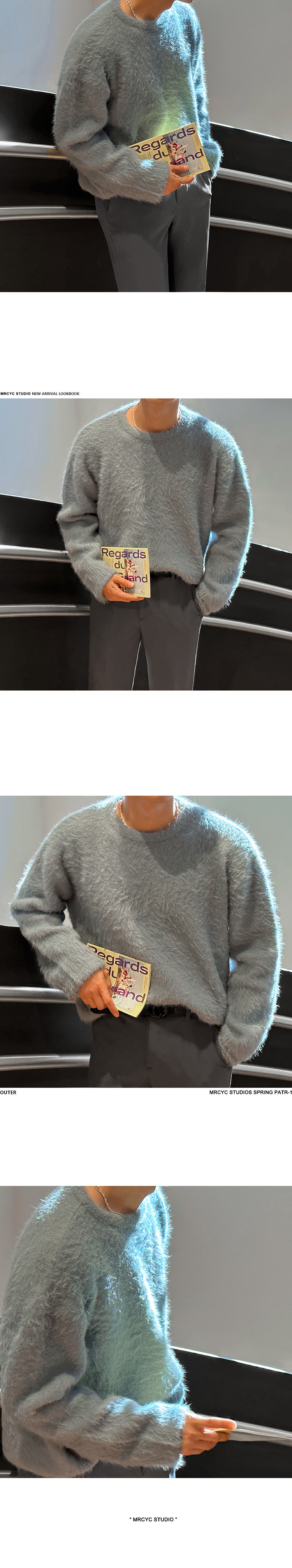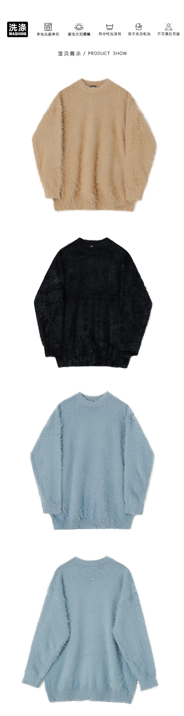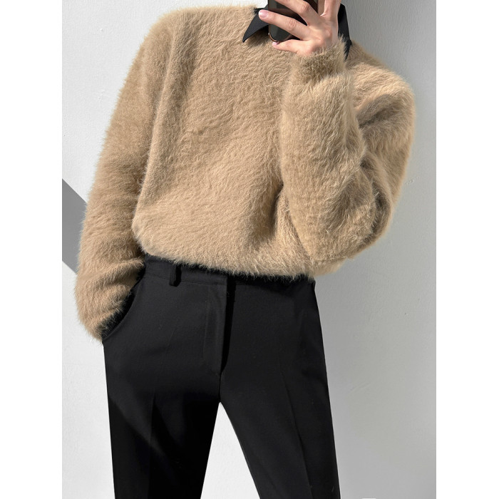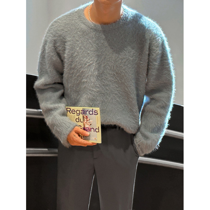 MRCYC水貂絨加厚圓領毛衣男士秋冬季內搭韓系寬鬆潮流保暖針織衫