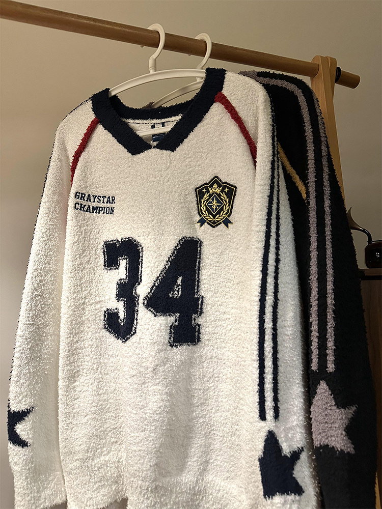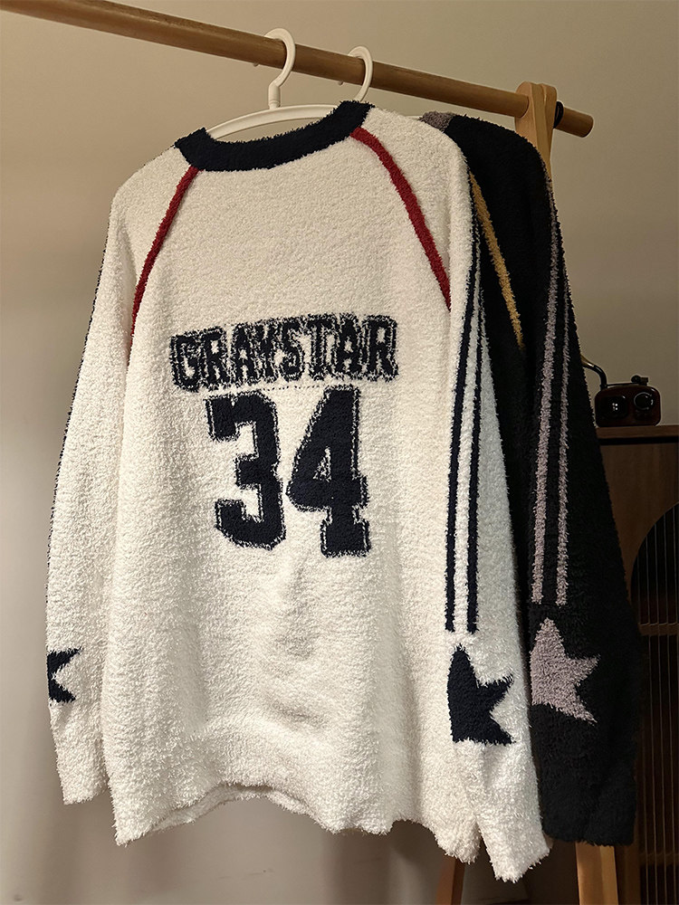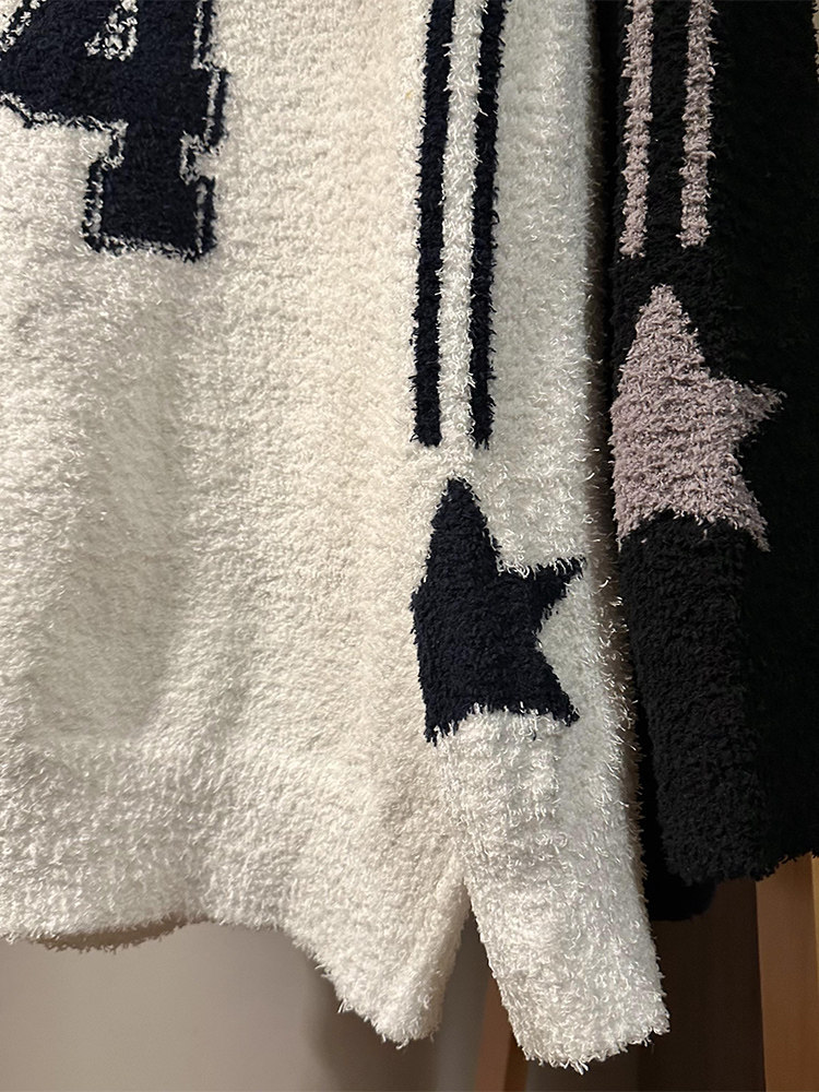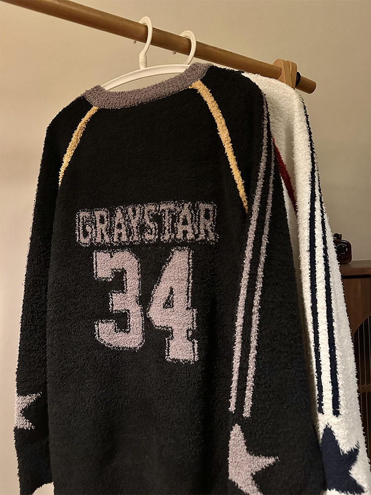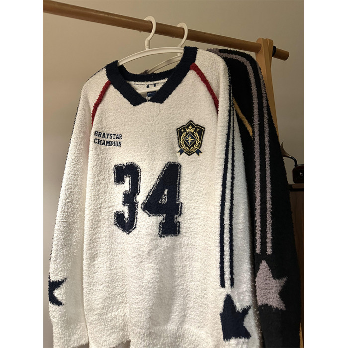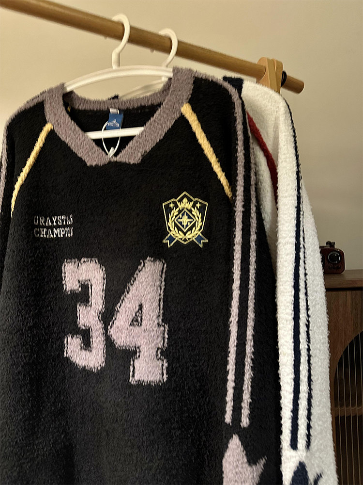 MASDYIREN 秋季美式復古寬鬆休閒學院風字母V領針織衫毛衣男女潮