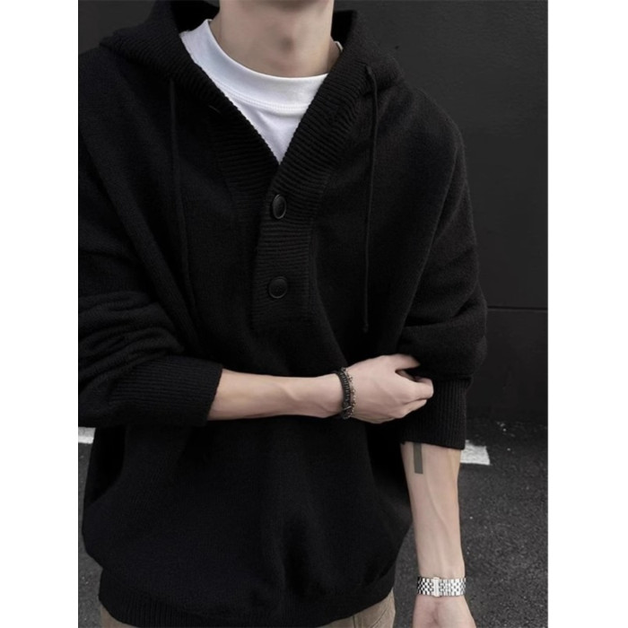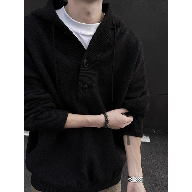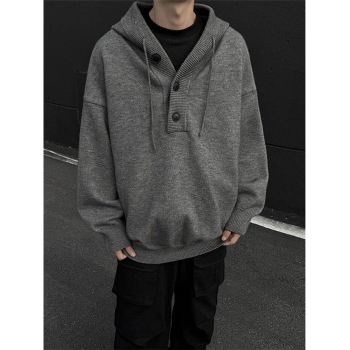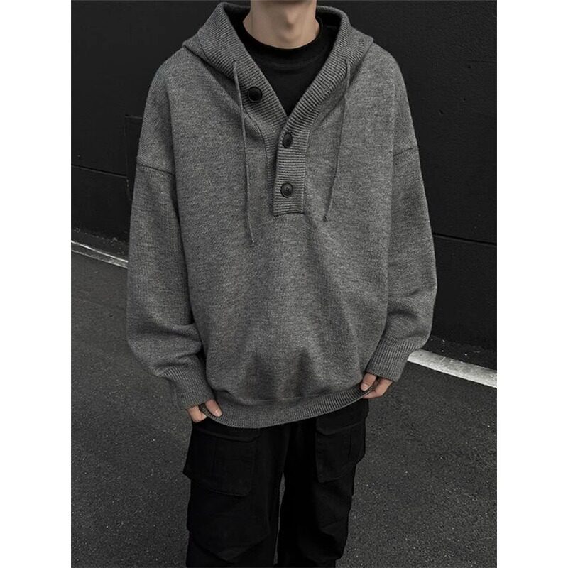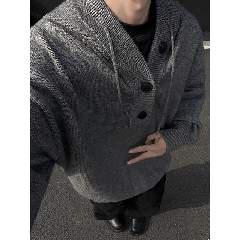 灰色美式復古連帽毛衣男款秋冬季慵嬾風cleanfit高級感針織衫外套