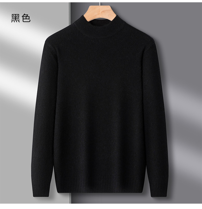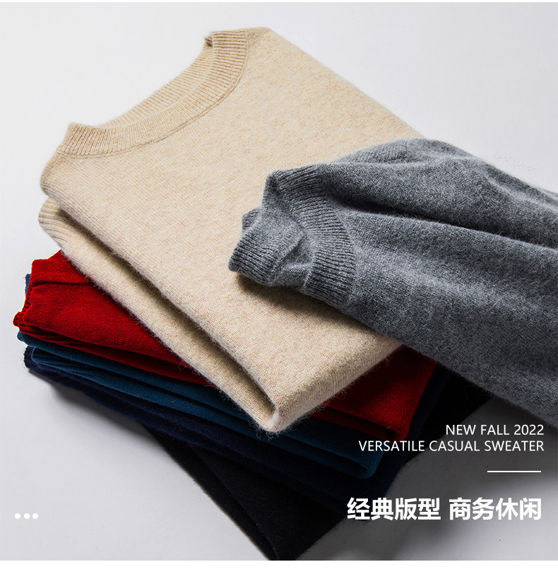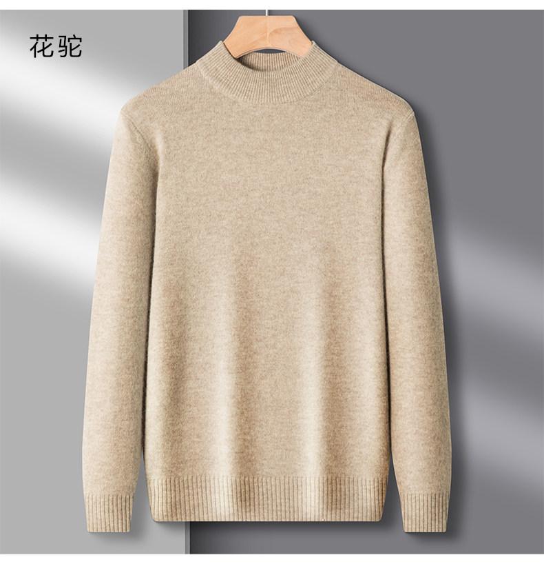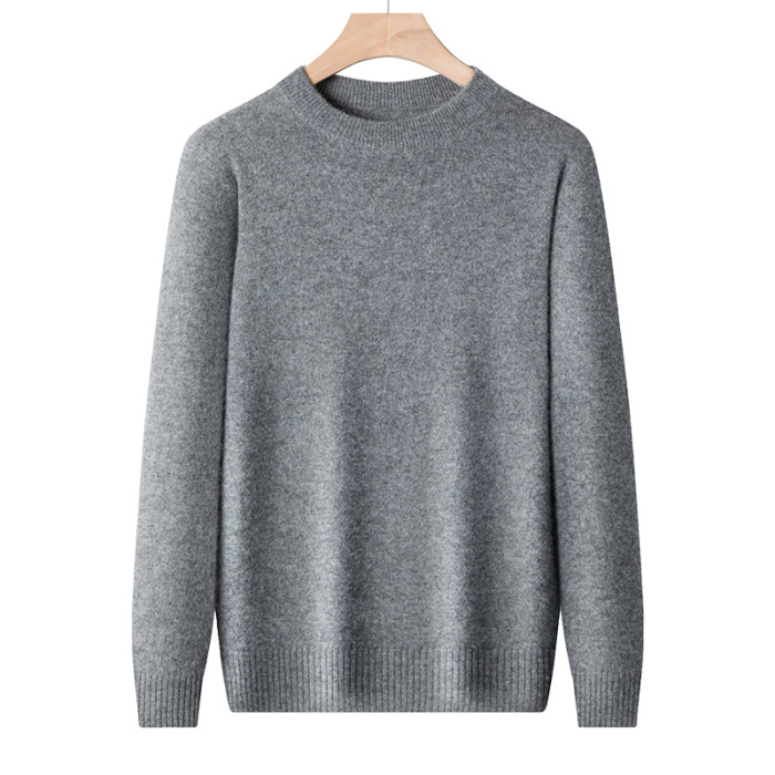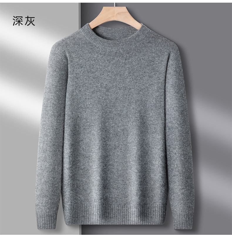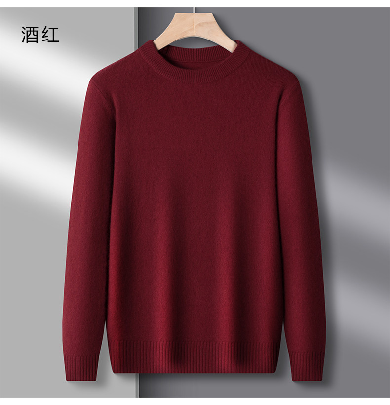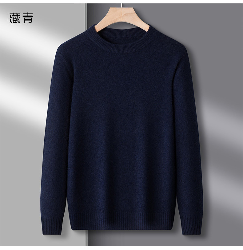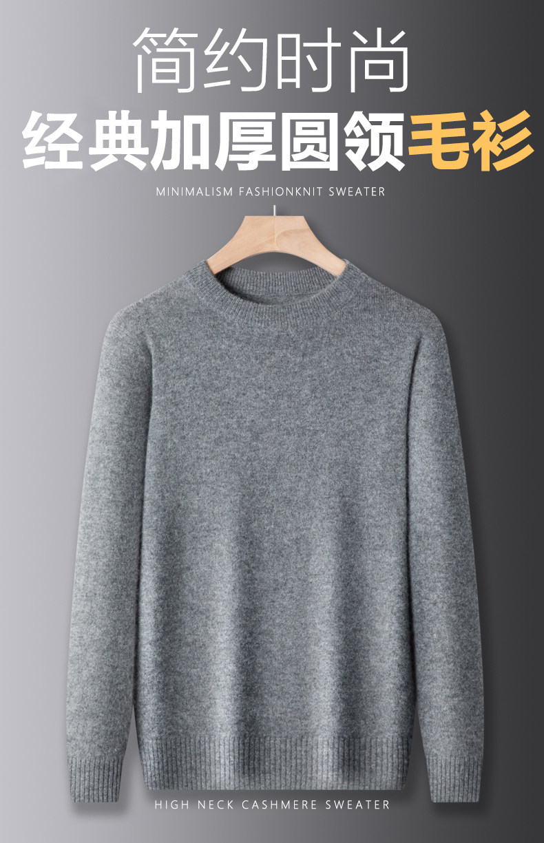 袋鼠秋冬季羊毛衫男士加厚款保暖針織衫中青年圓領毛衣純色打底衫