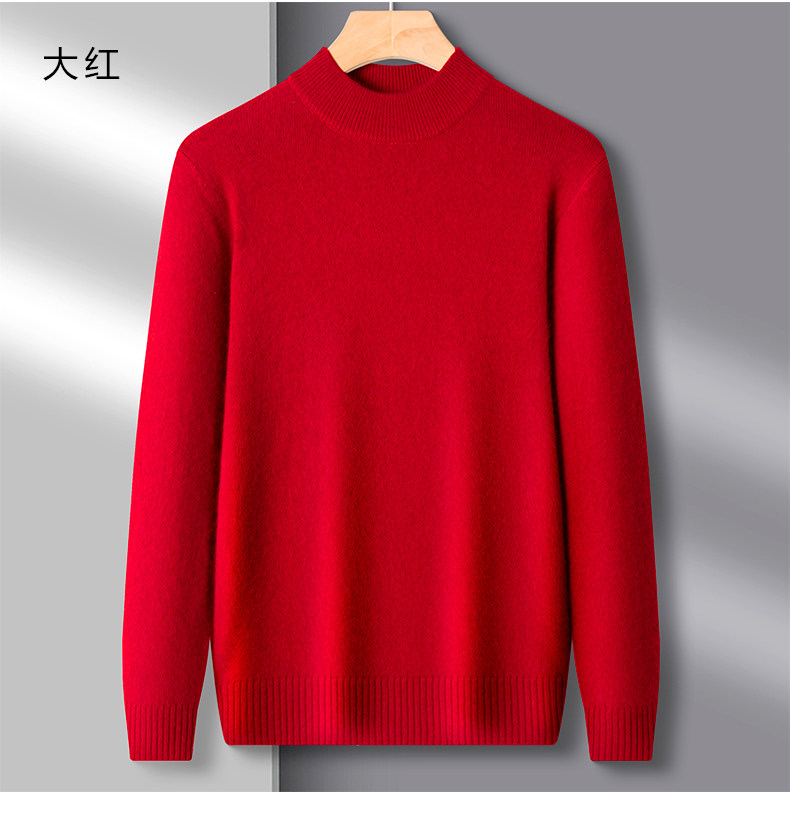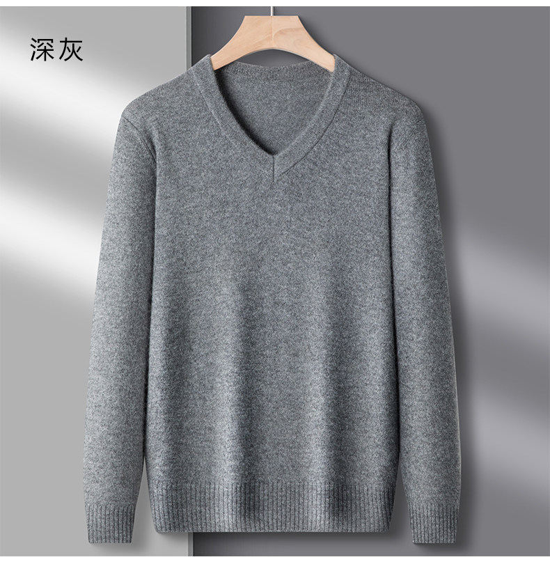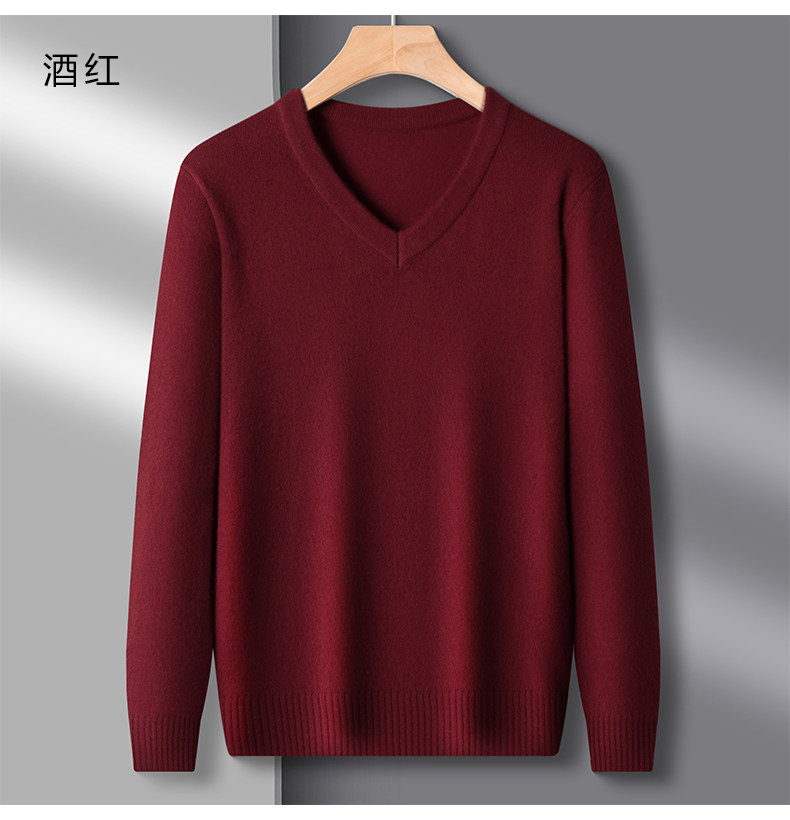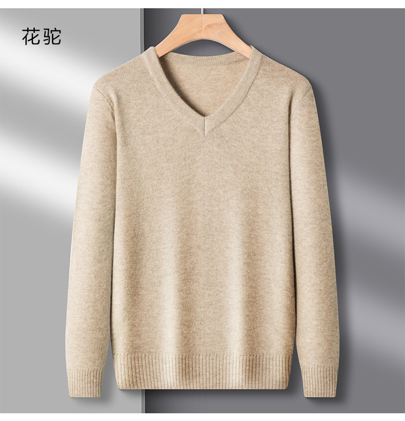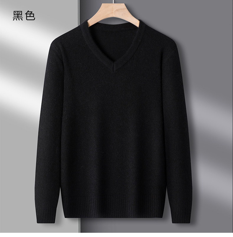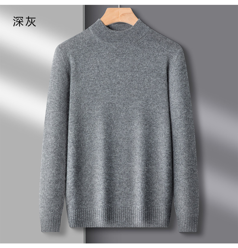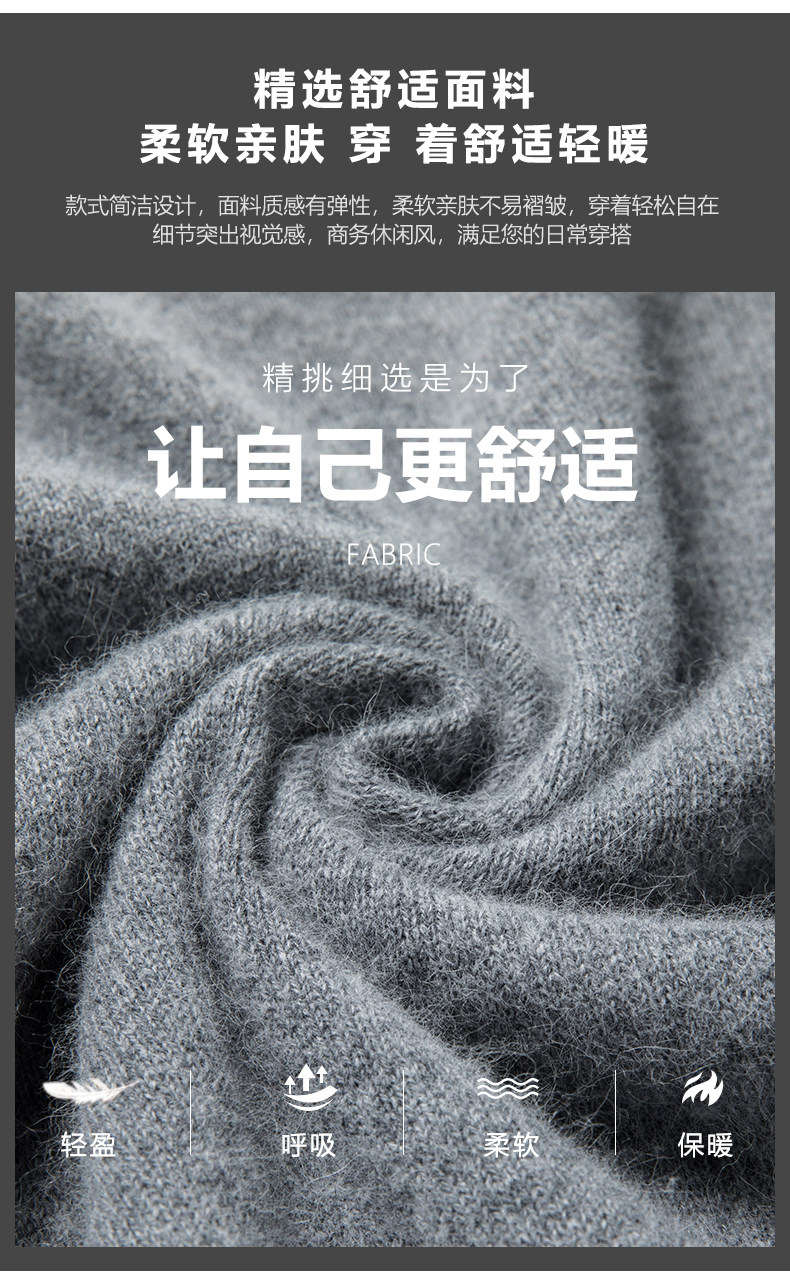 袋鼠秋冬季羊毛衫男士加厚款保暖針織衫中青年圓領毛衣純色打底衫