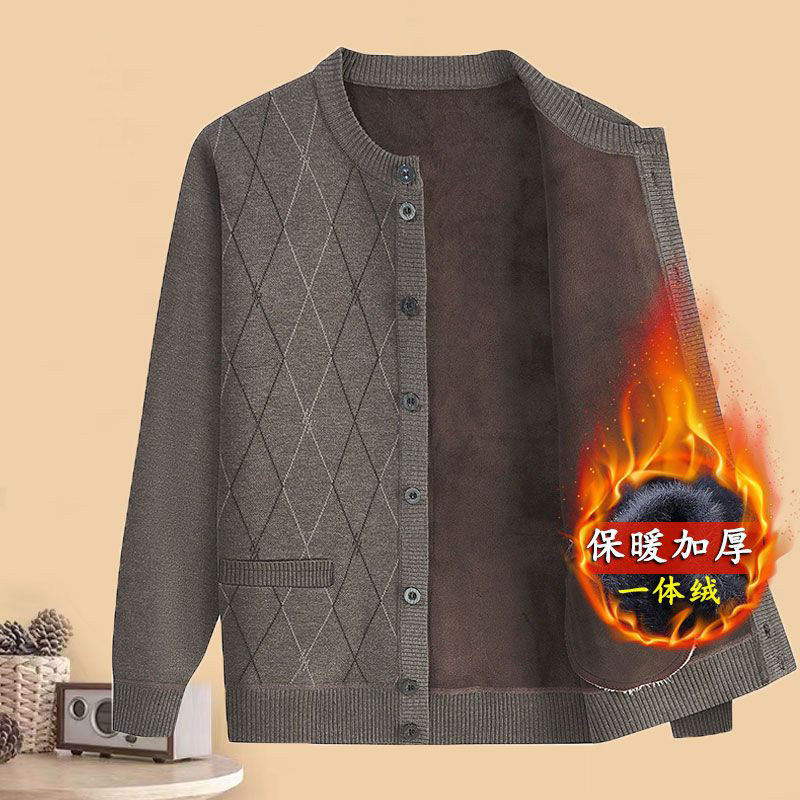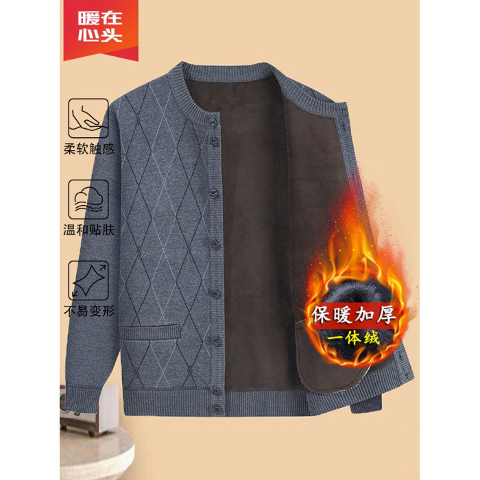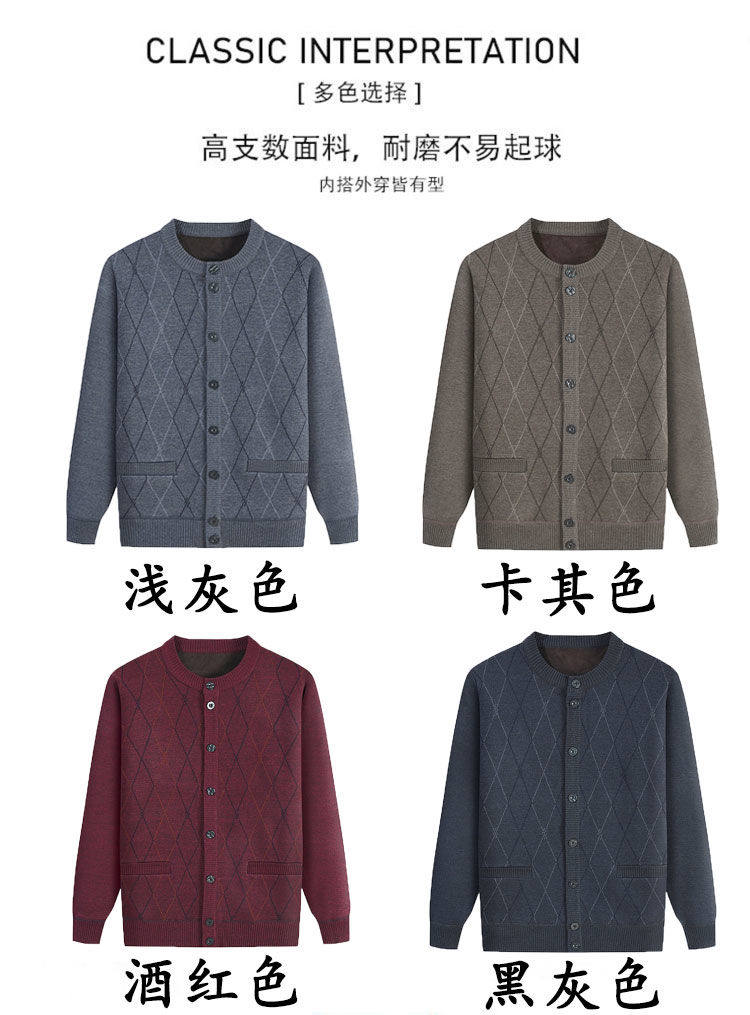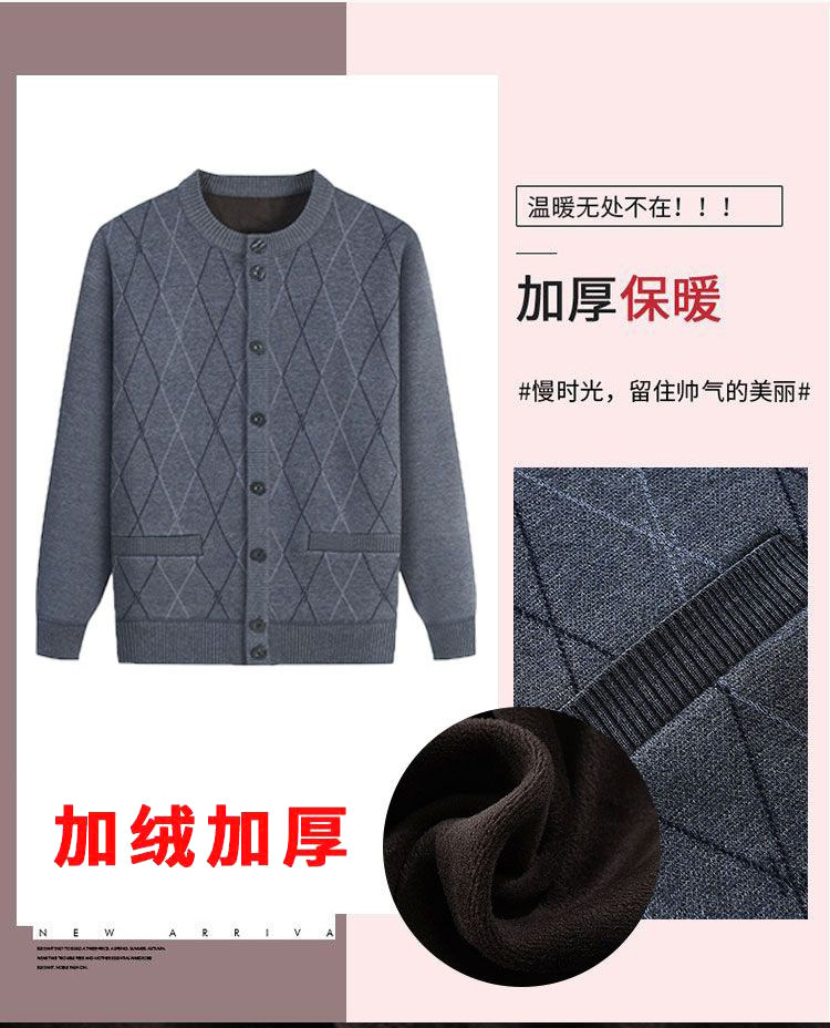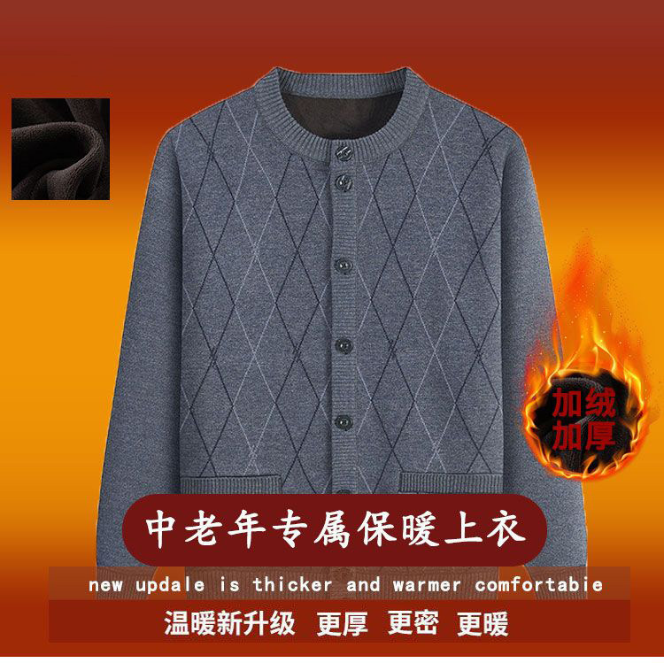 中老年爸爸開衫秋冬新款毛衣加絨針織衫老人男士外套爺爺保暖長袖
