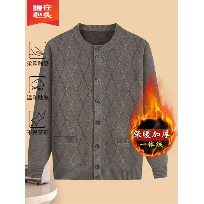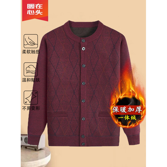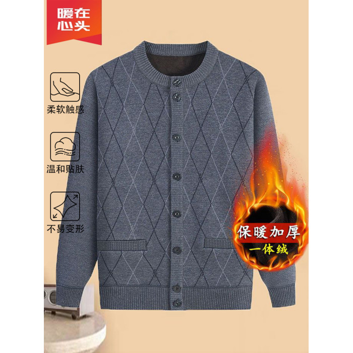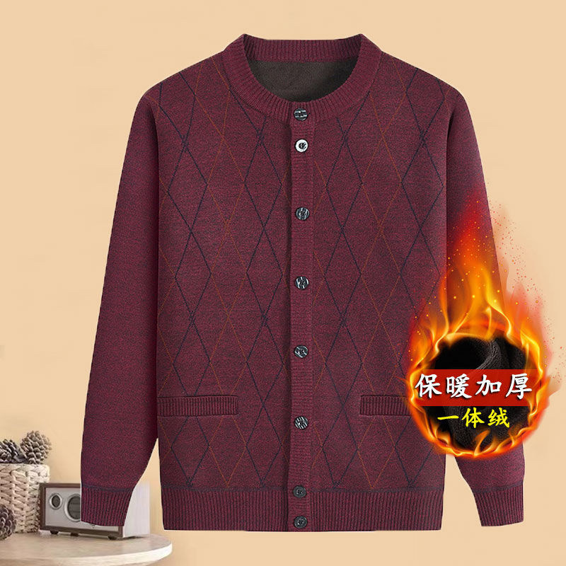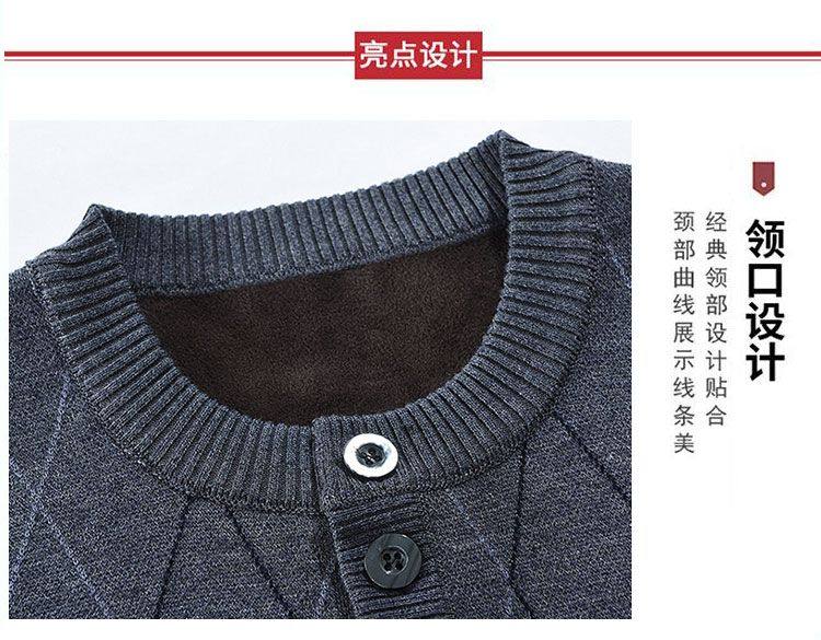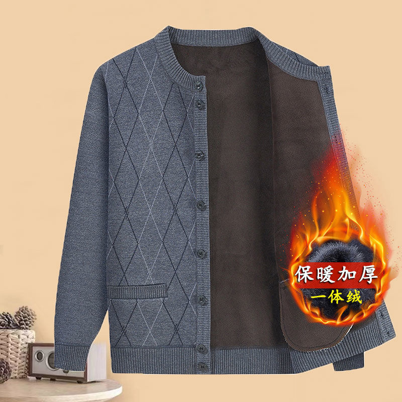 中老年爸爸開衫秋冬新款毛衣加絨針織衫老人男士外套爺爺保暖長袖