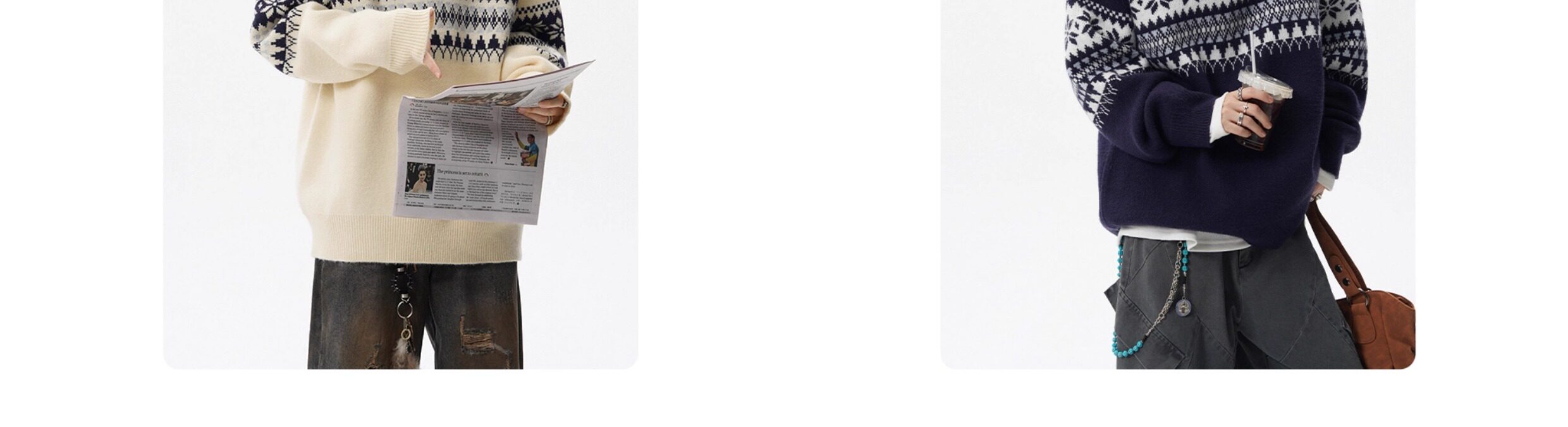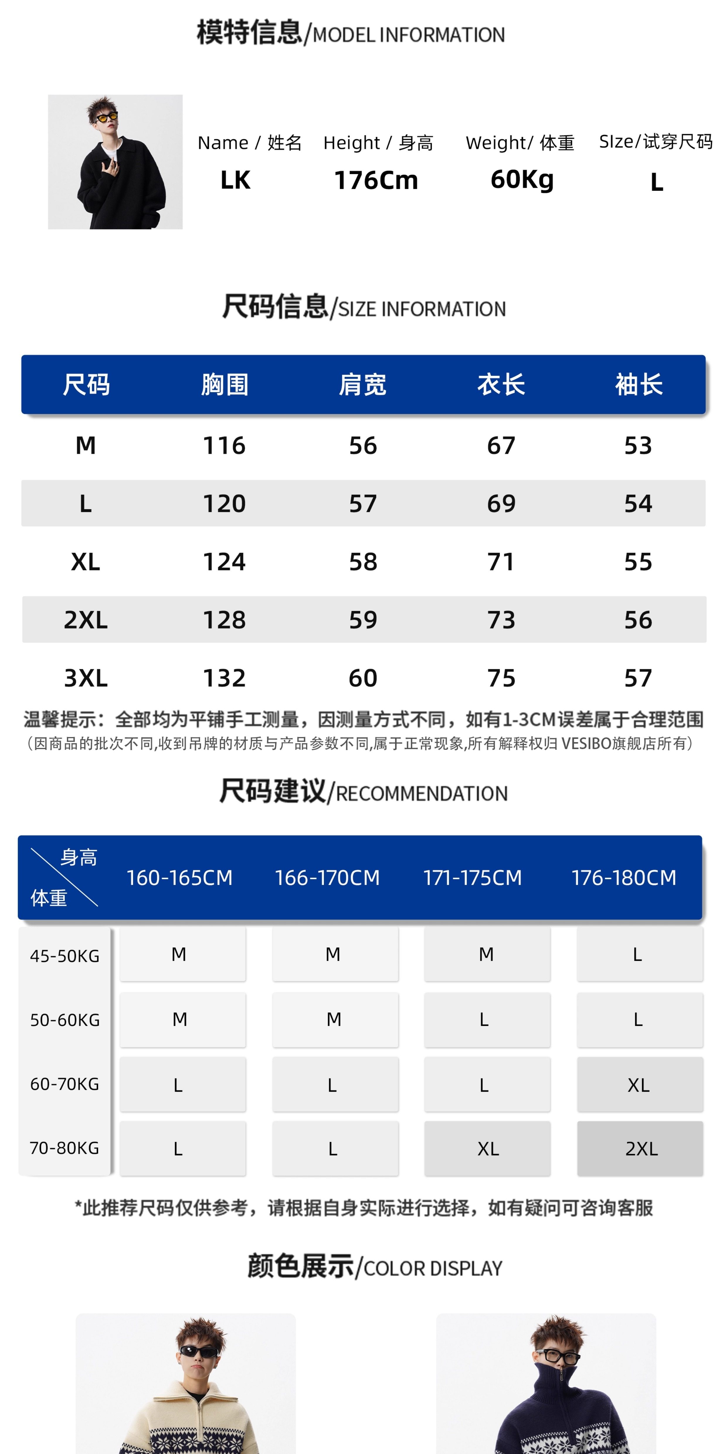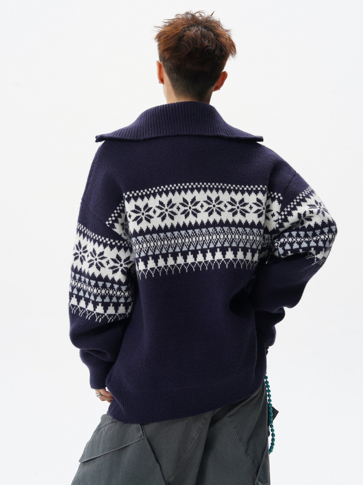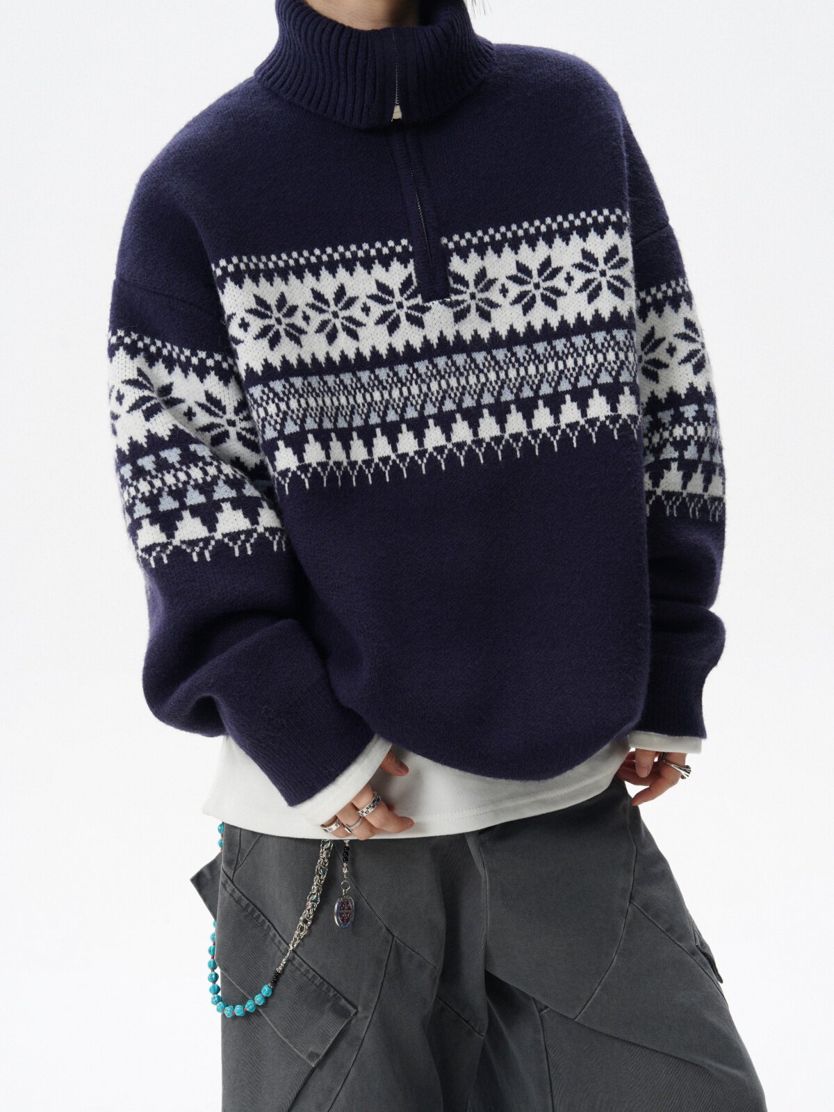 費爾島提花米色針織衫男冬美式半拉鍊高領毛衣慵懶感寬松情侶外套