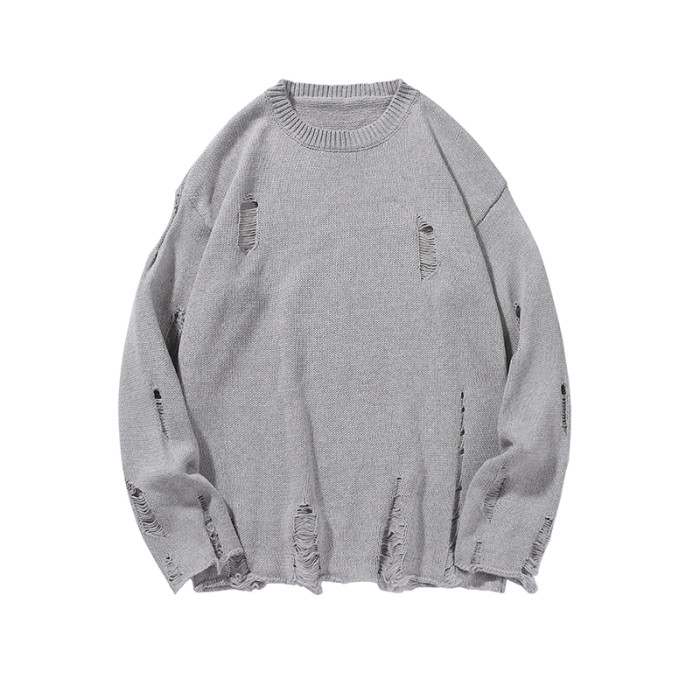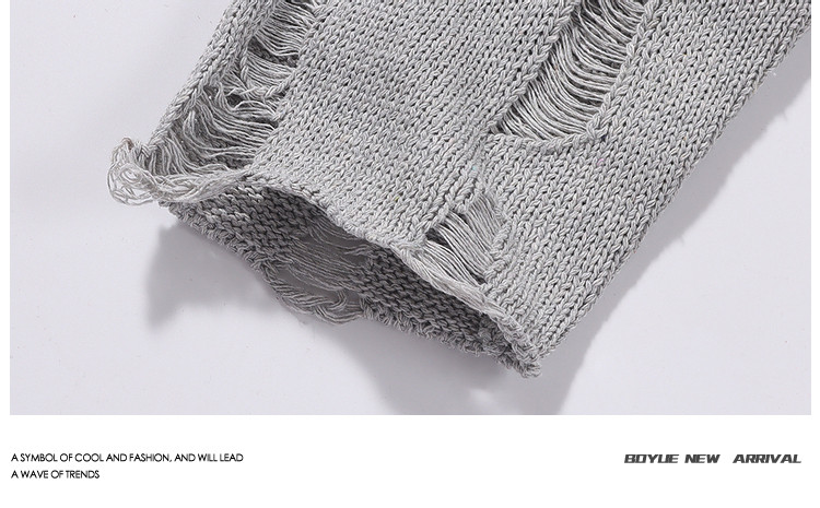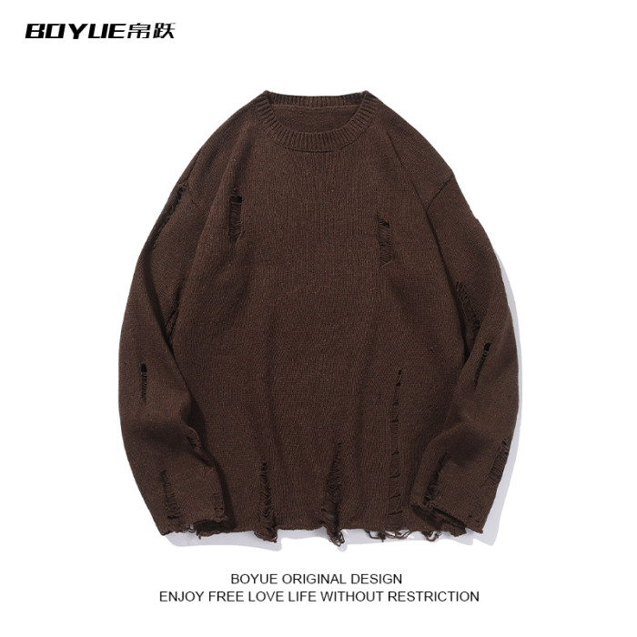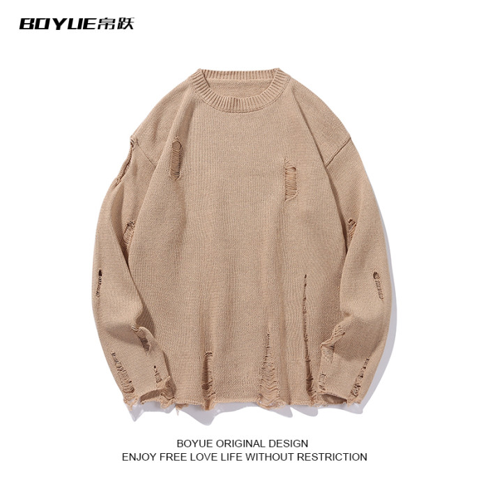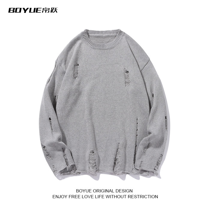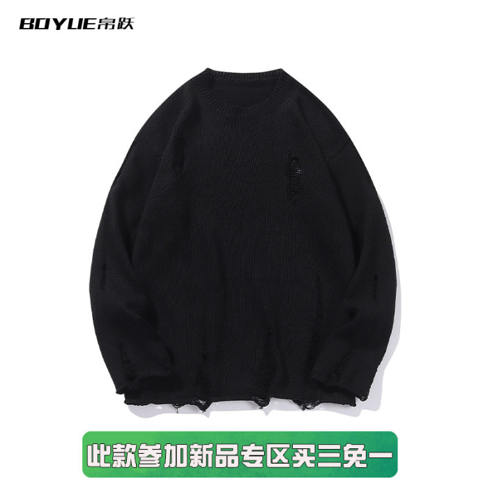 BOYUE帛躍港風痞帥個性破爛破洞毛衣男秋冬季慵懶風針織衫設計感