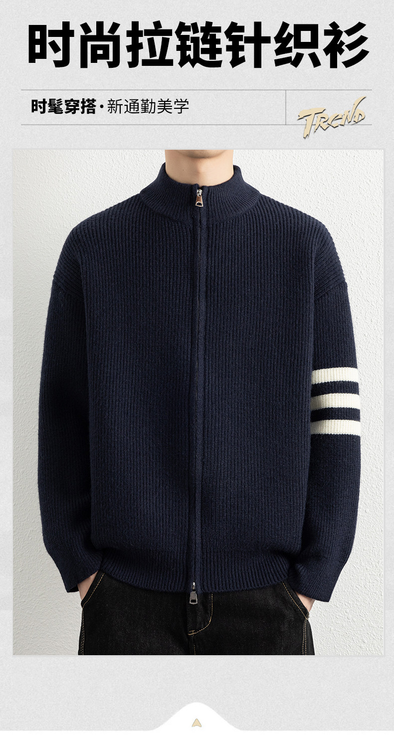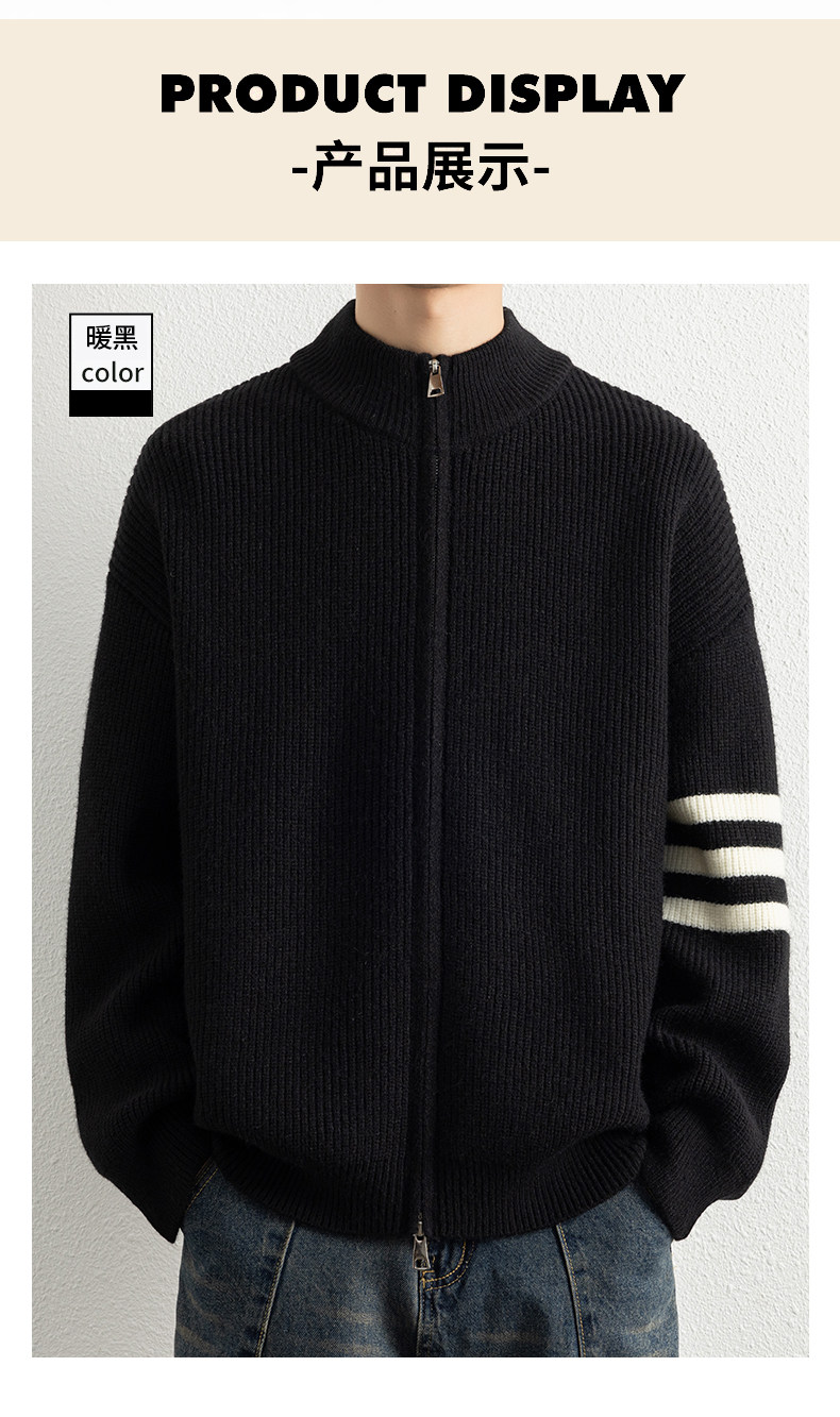 WASSUP ISSUE雙拉鍊簡約純色針織毛衣男秋冬季休閒情侶開衫外套男
