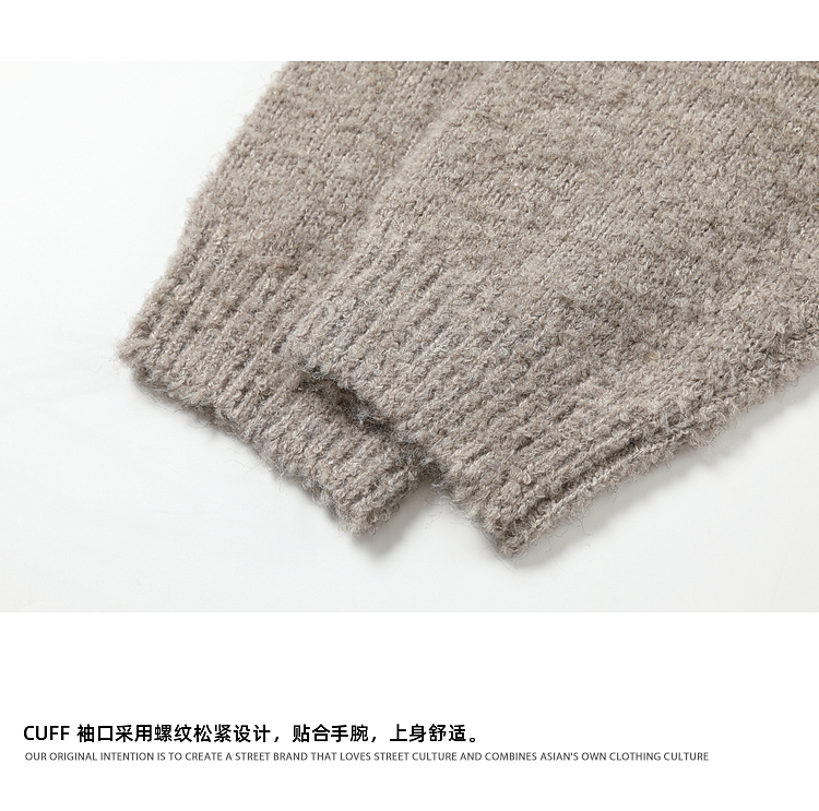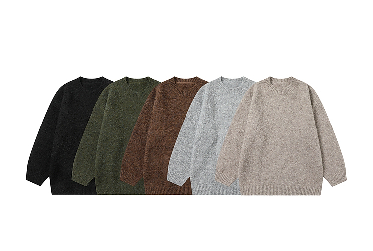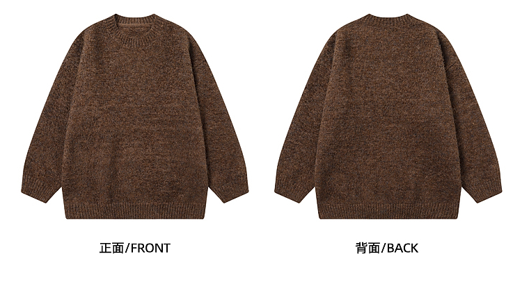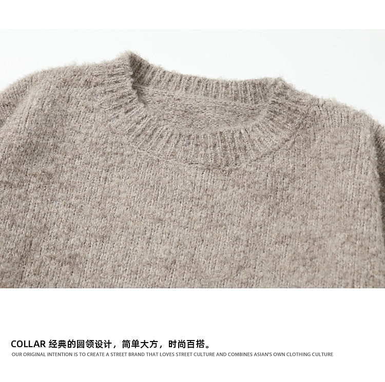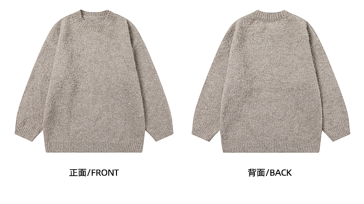 悟空有貨冬季復古簡約純色圓領毛衣男潮牌寬松情侶休閒針織打底衫