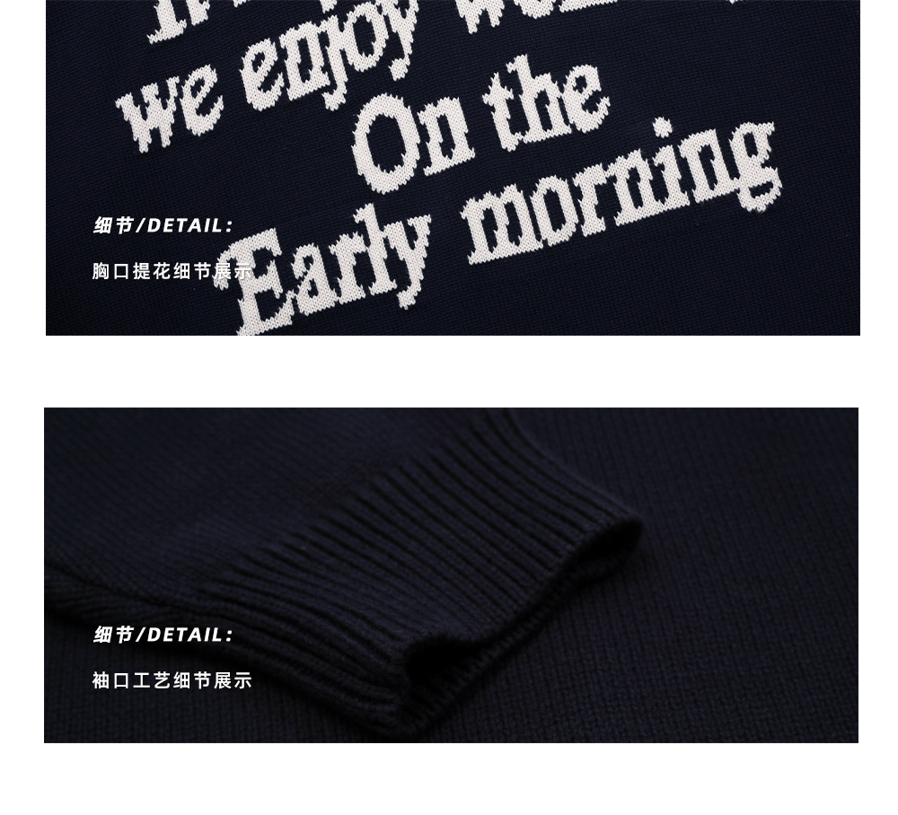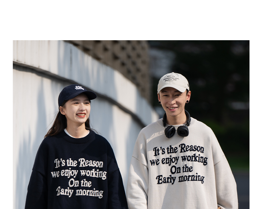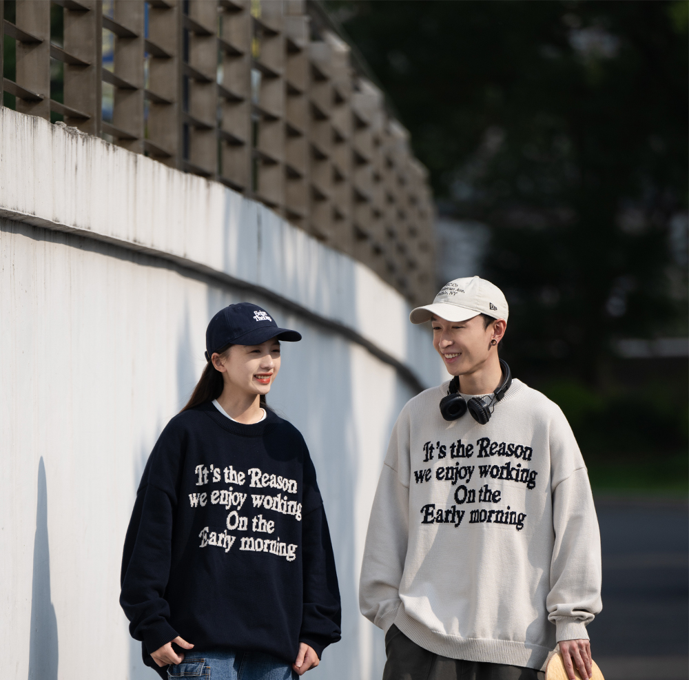 BELLKENIDEA 秋冬保暖圓領字母排版提花粗針毛衣男女潮流行情侶裝