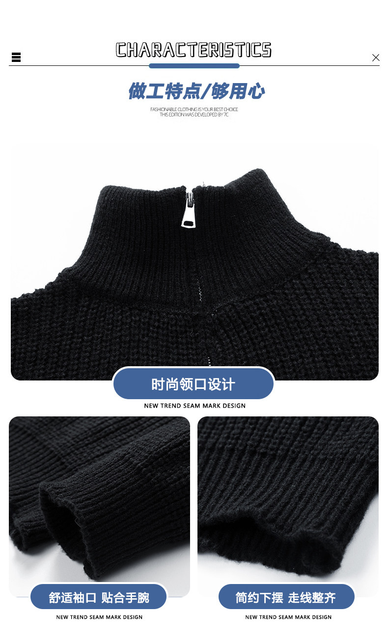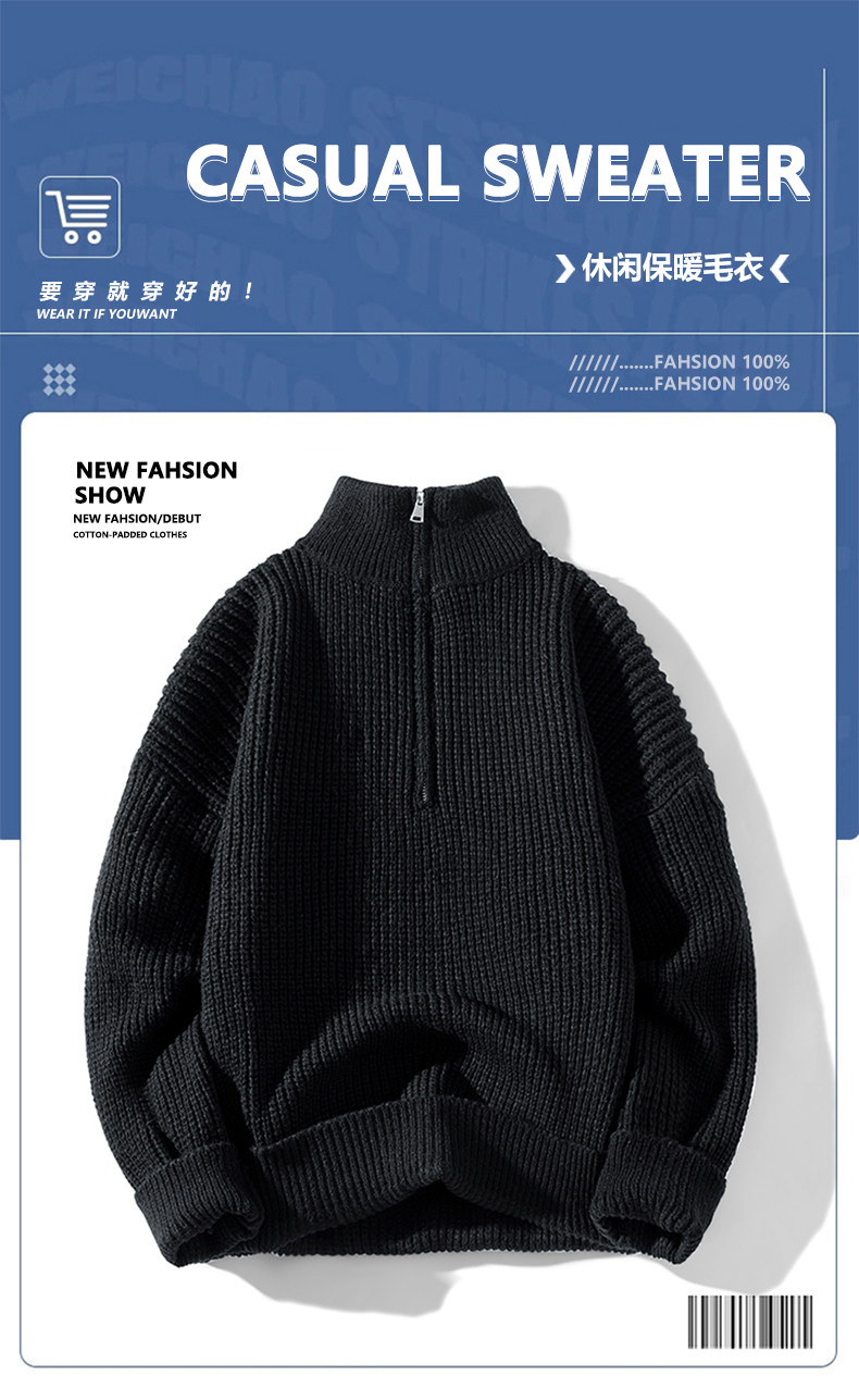 WASSUP ISSUE美式潮流半拉鍊純色針織衫男款春秋季痞帥情侶毛衣男