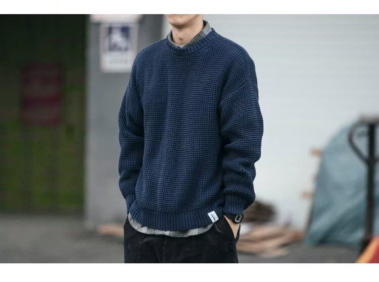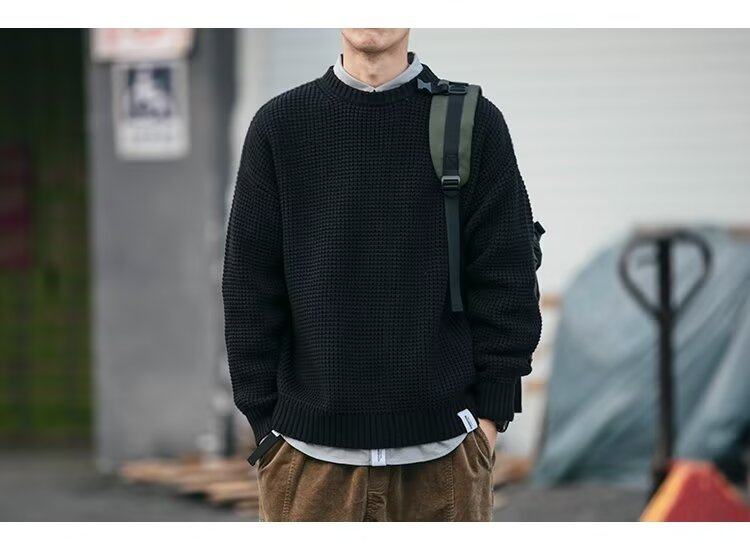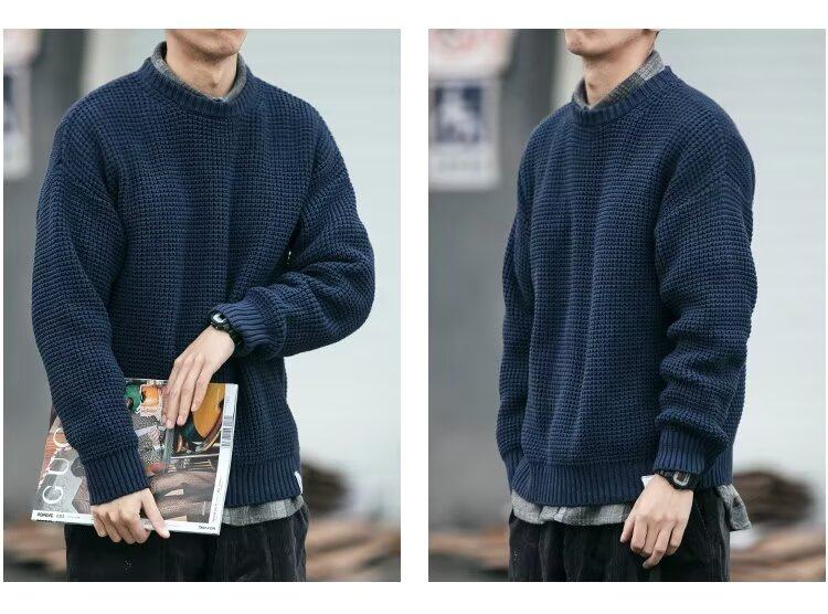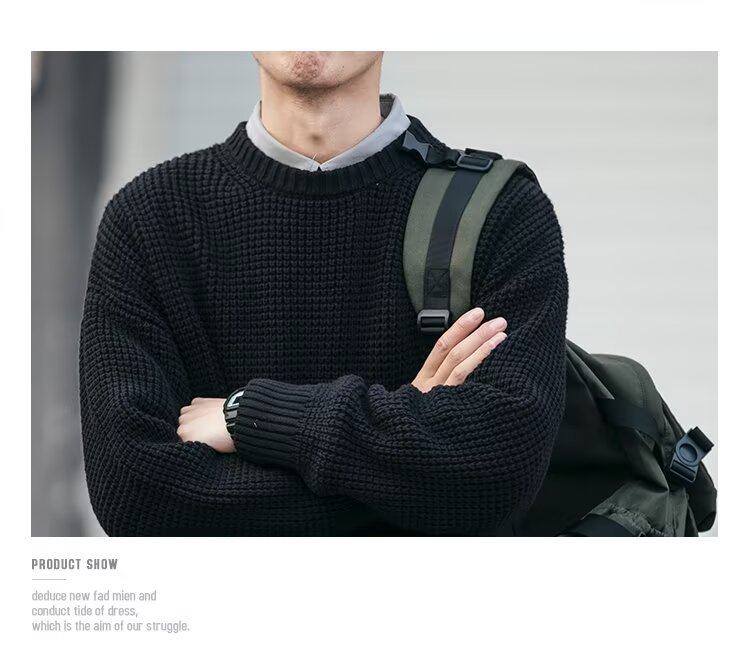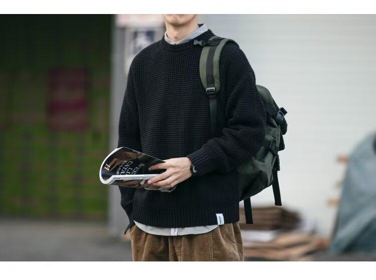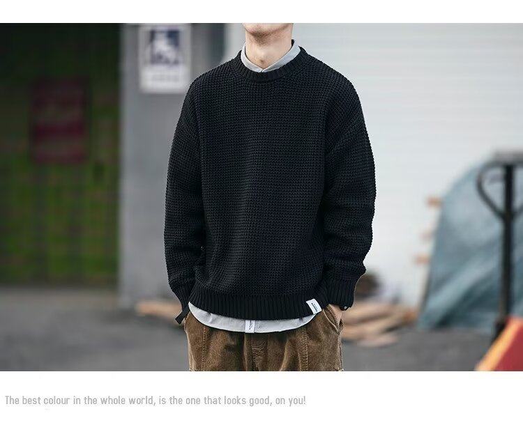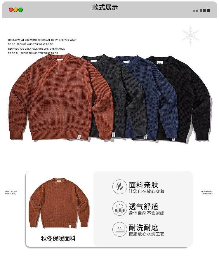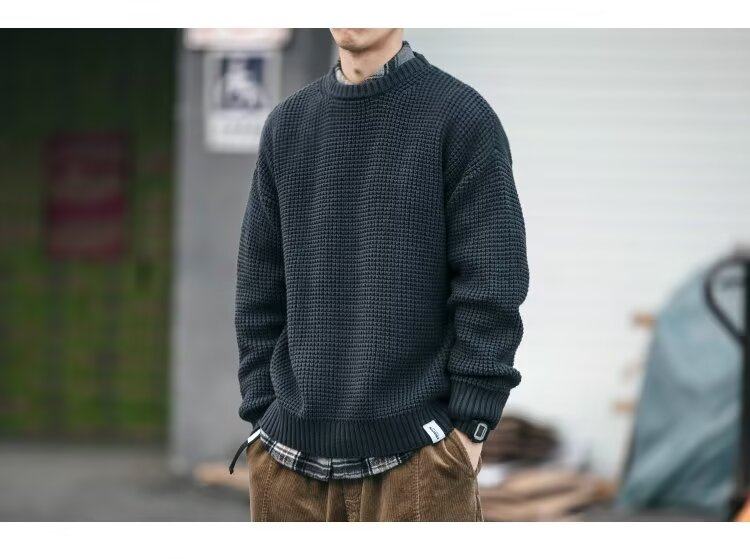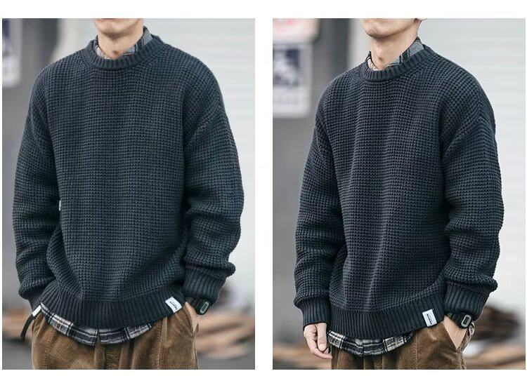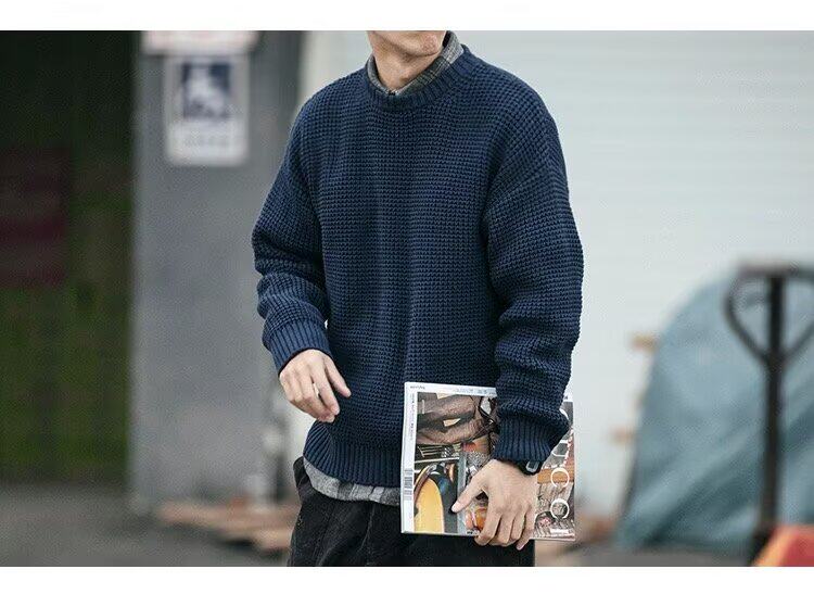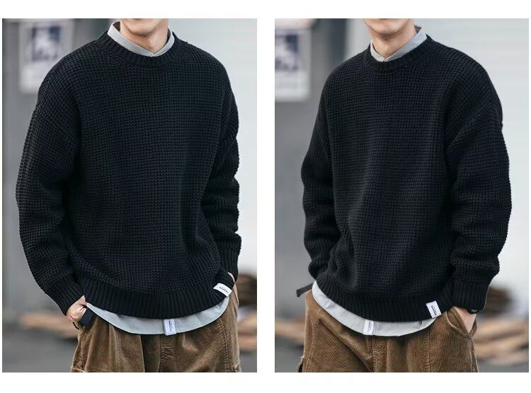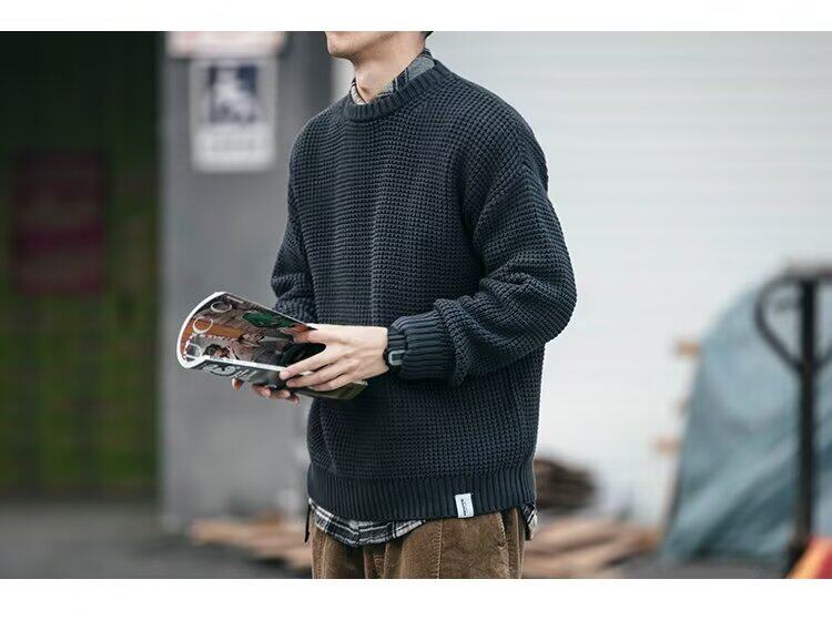 日系復古毛衣男潮流寬鬆大碼秋冬季純色加厚針織衫內搭胖子外套潮