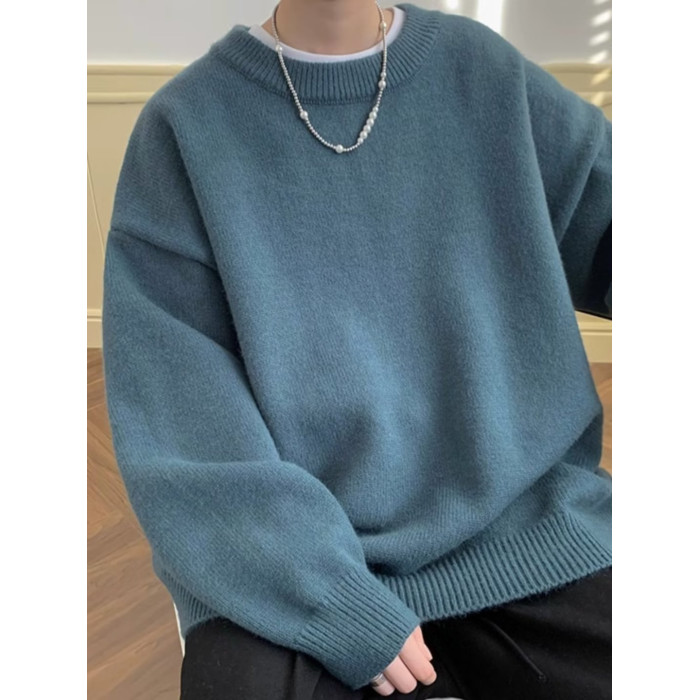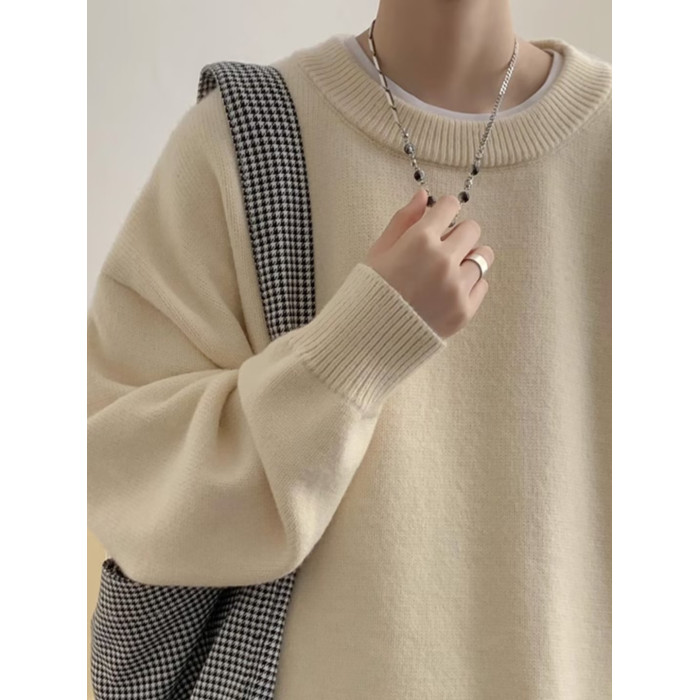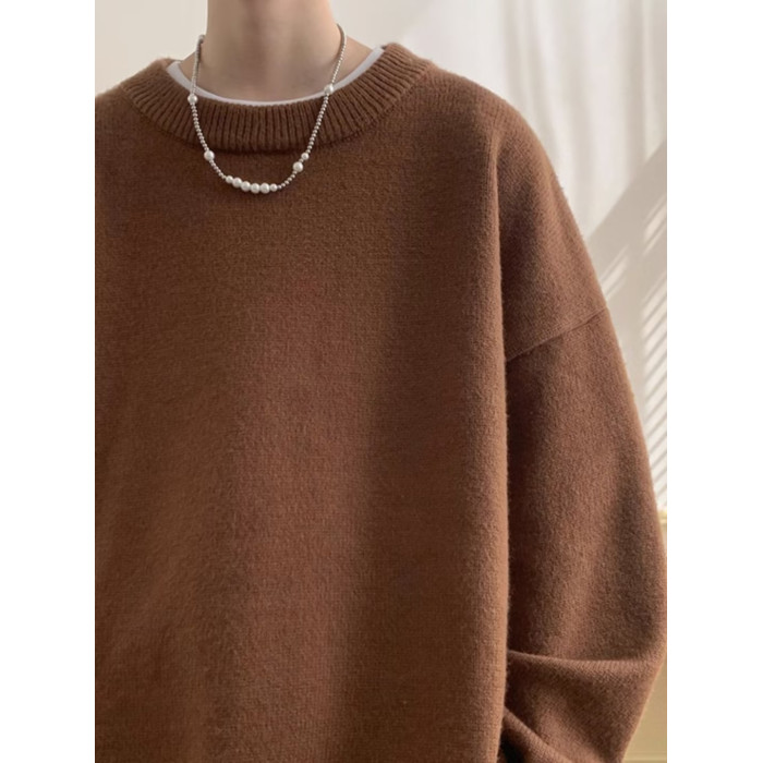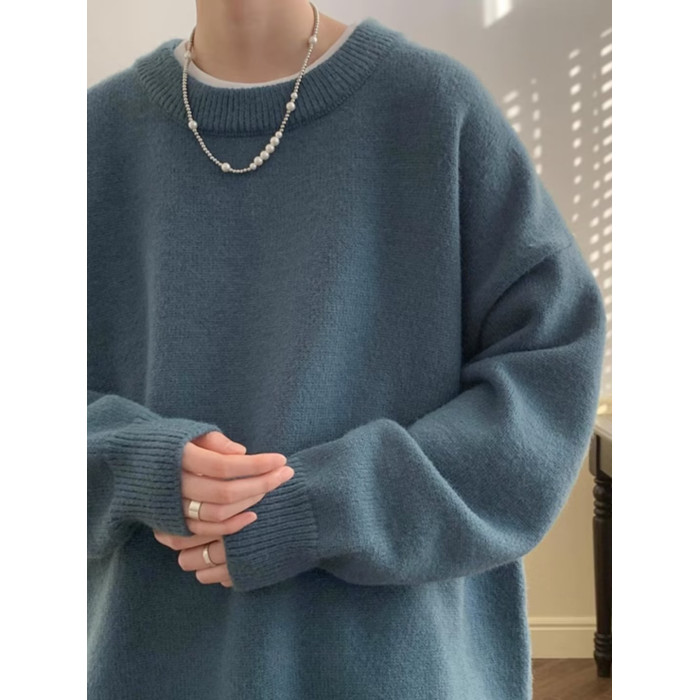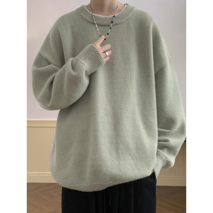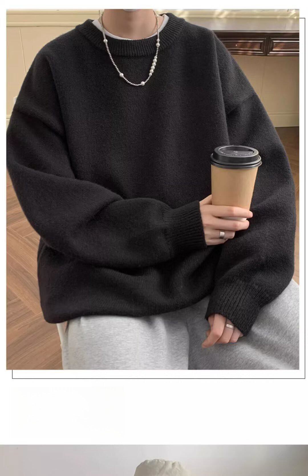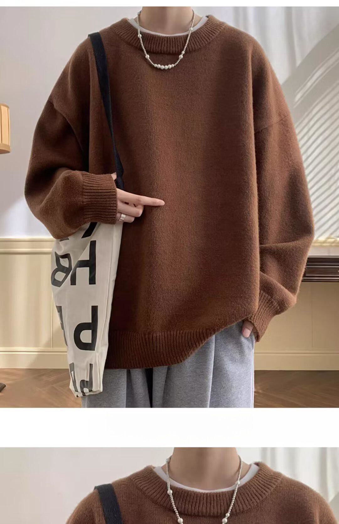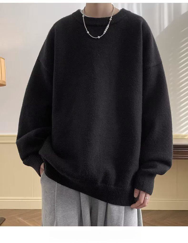 日系針織衫上衣男士秋冬季美式高街慵懶風高級感情侶加厚毛衣外套
