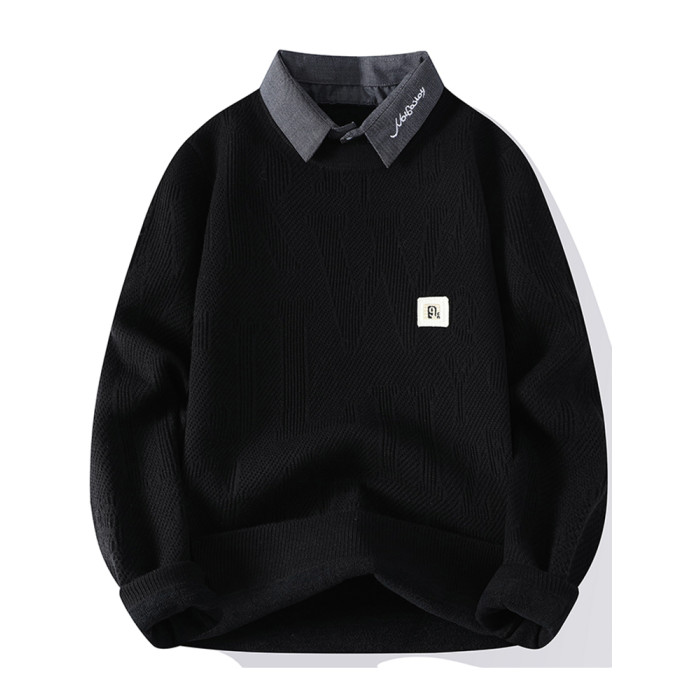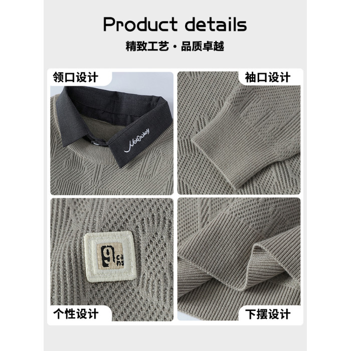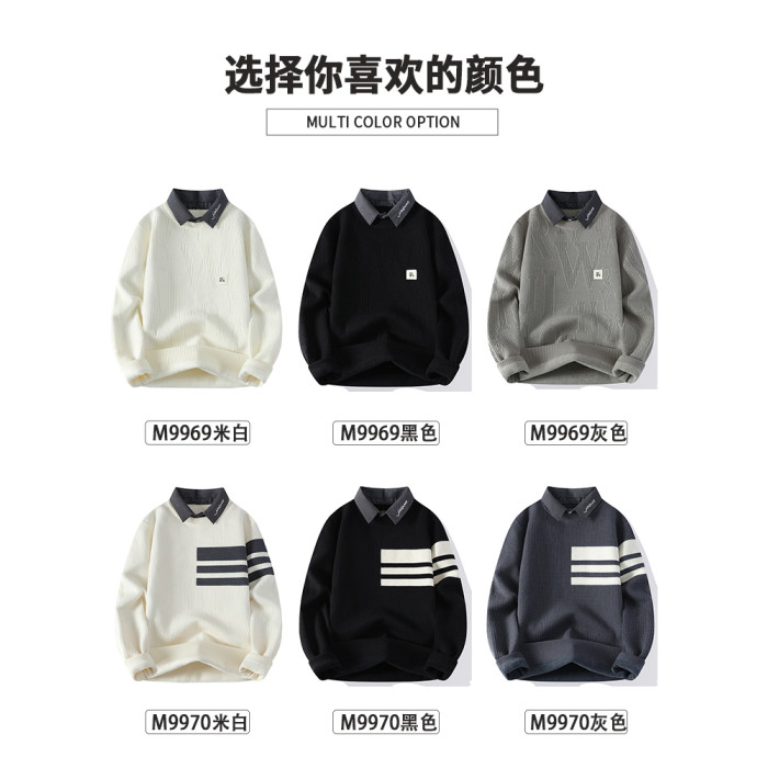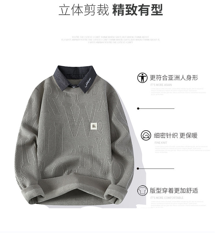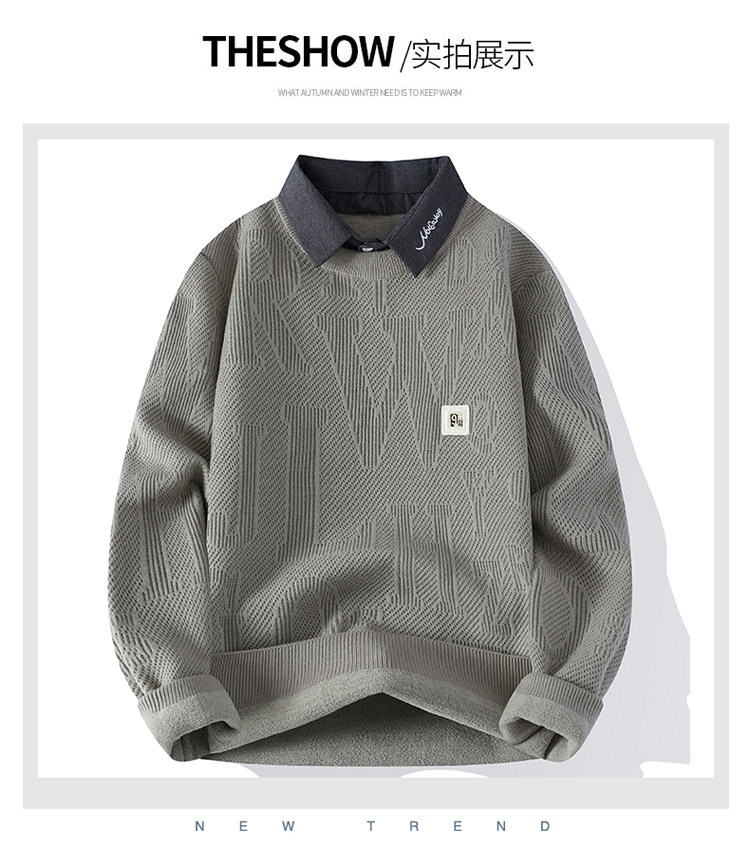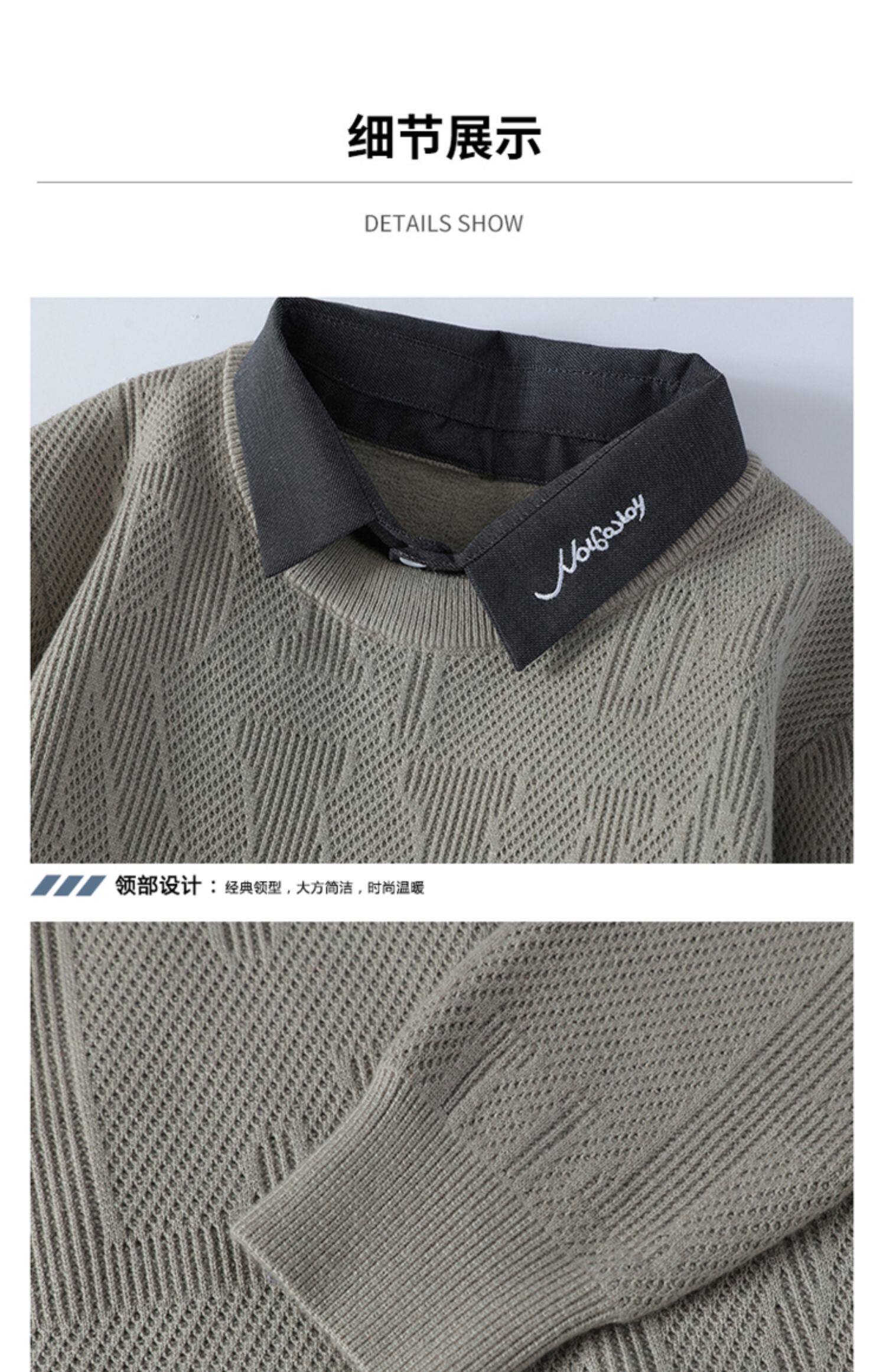高級感毛衣男秋冬季2025新款襯衫領針織打底衫男加絨加厚保暖衣服
