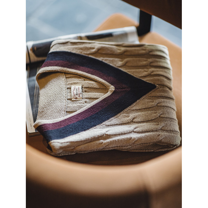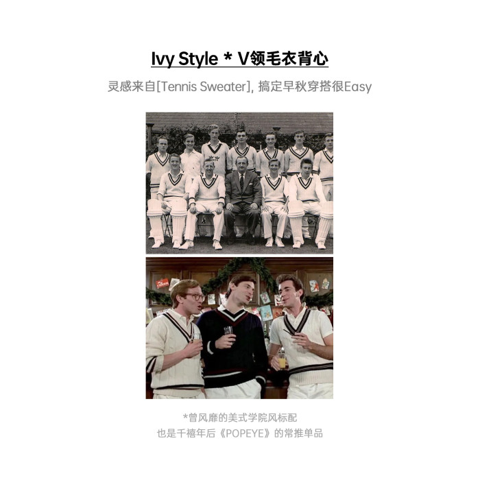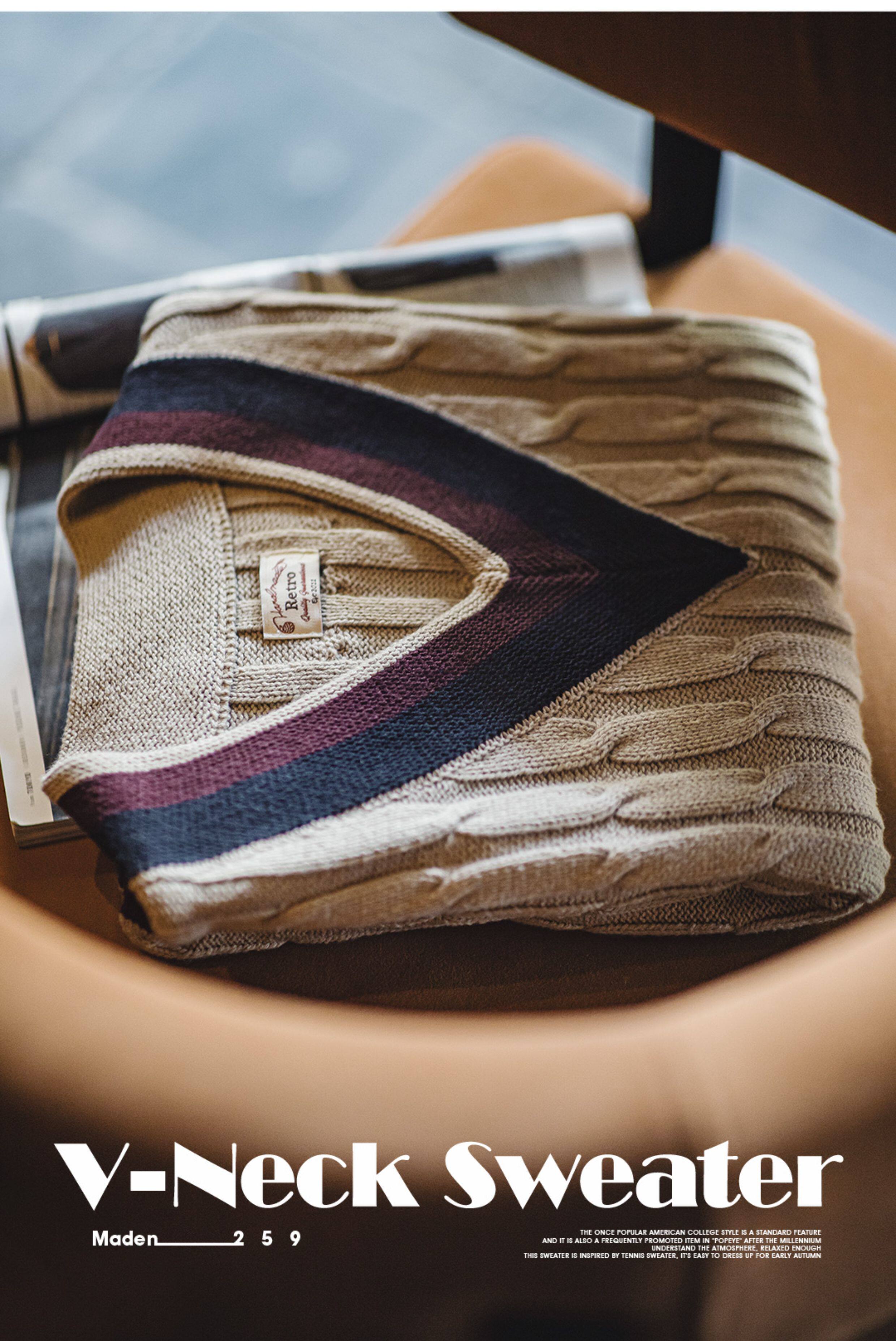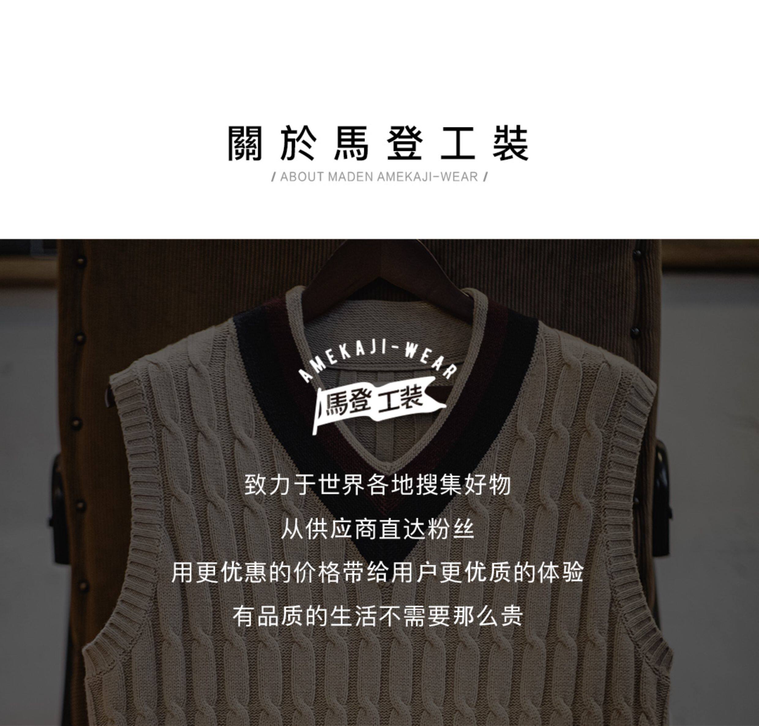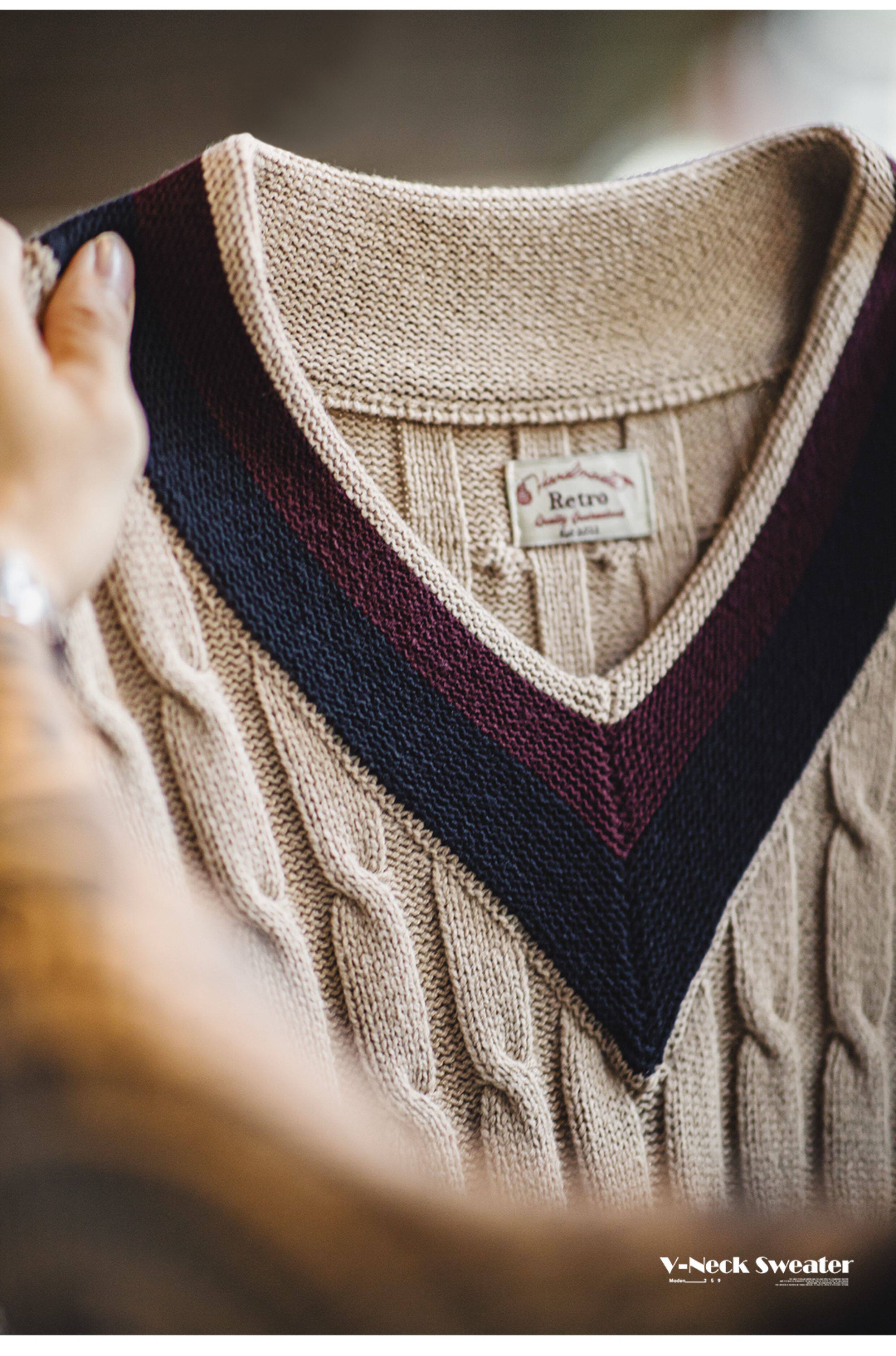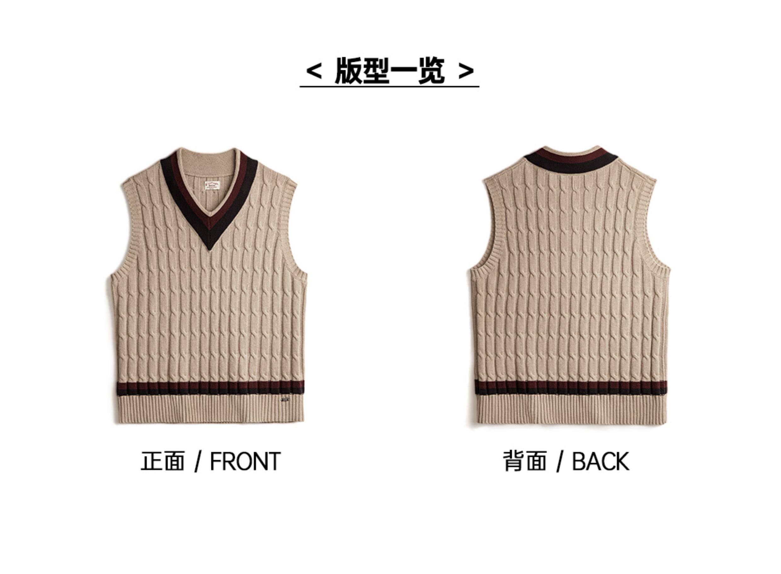 馬登工裝美式復古IVY針織V領毛衣背心學院風撞色絞花無袖馬甲男秋