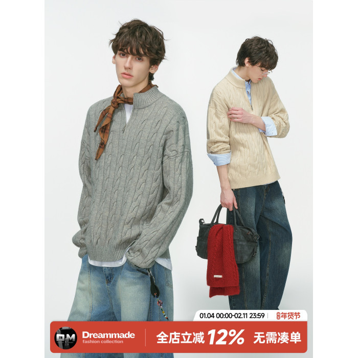 Dream made明星同款老錢風麻花毛衣男款秋冬季加厚針織衫男生上衣
