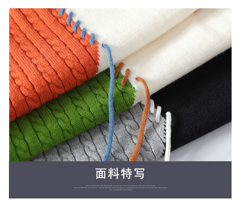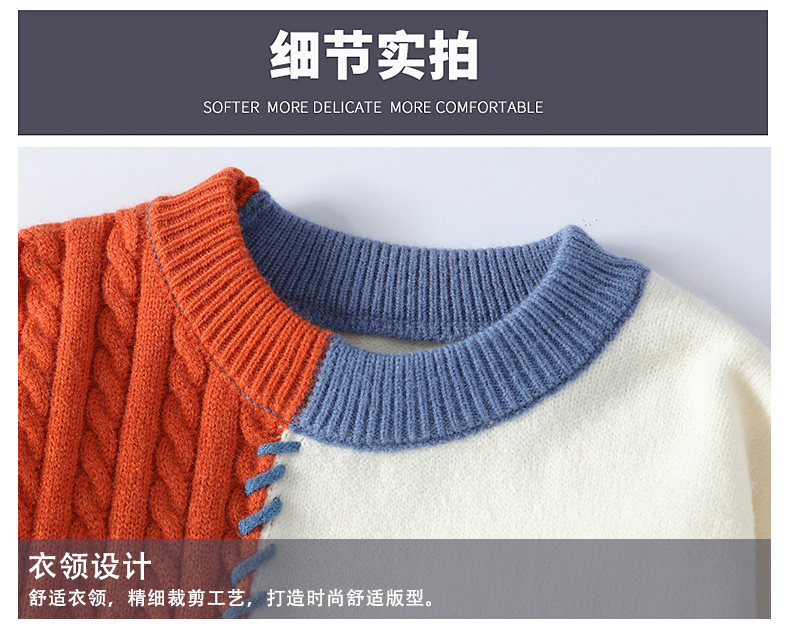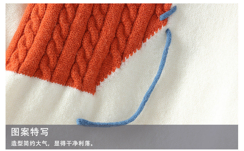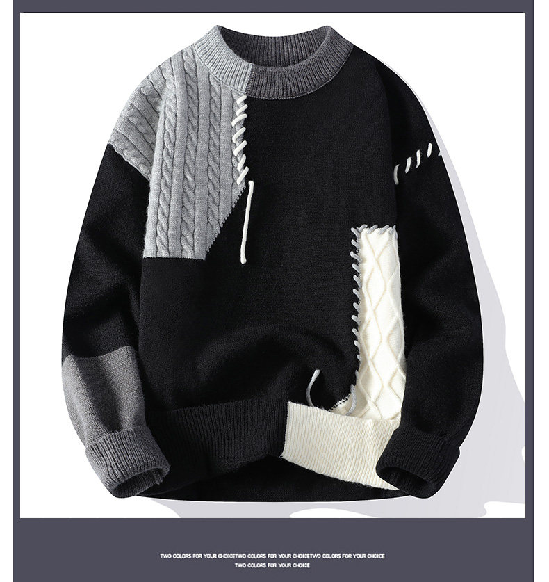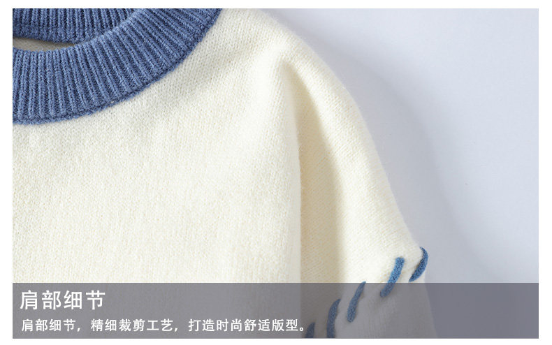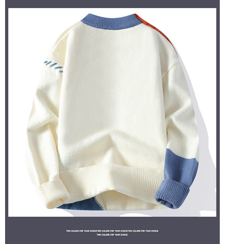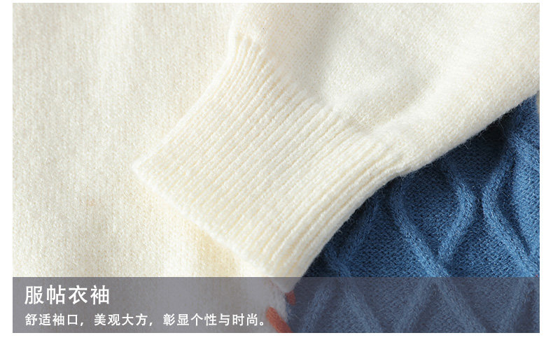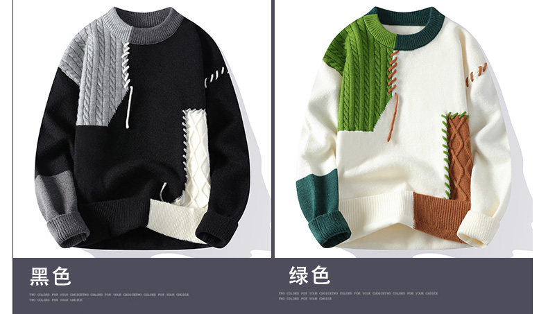 WASSUP ERIKA拼接圓領毛衣男秋冬季加絨情侶款撞色慵懶風針織衫