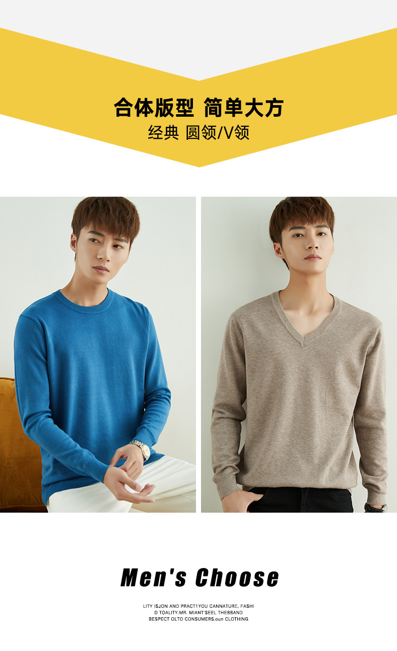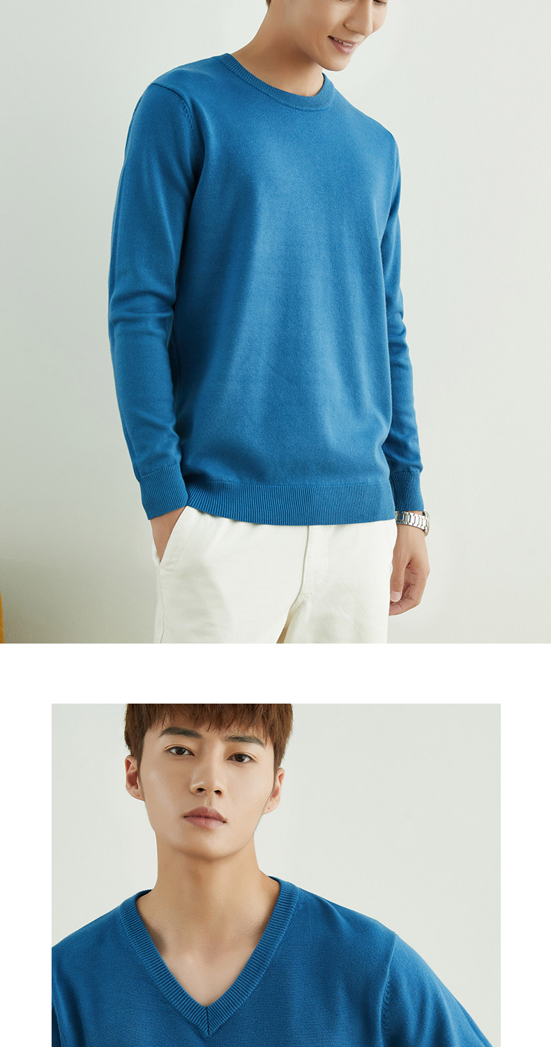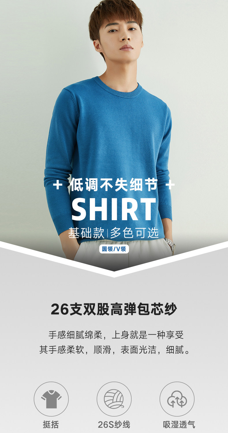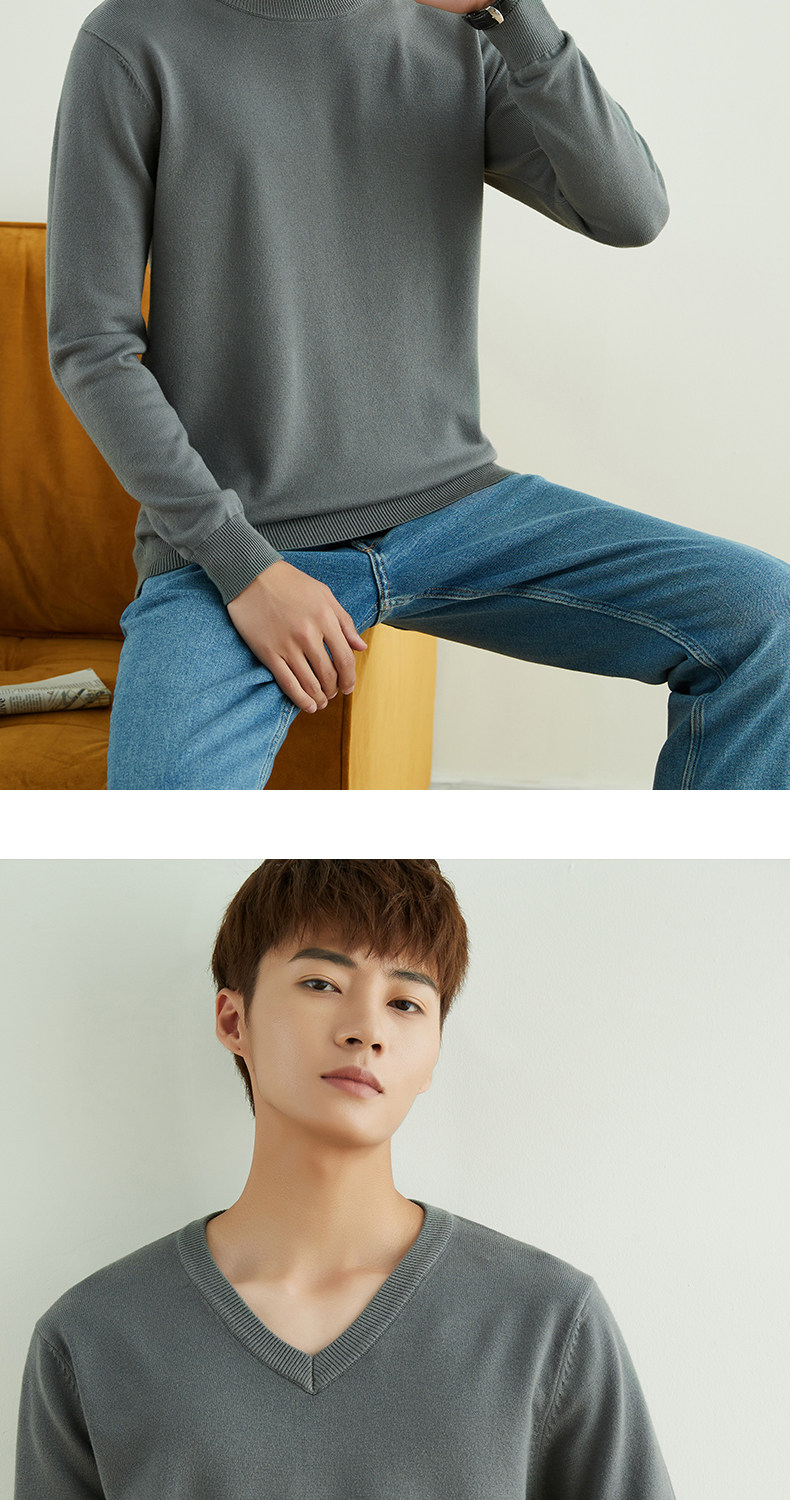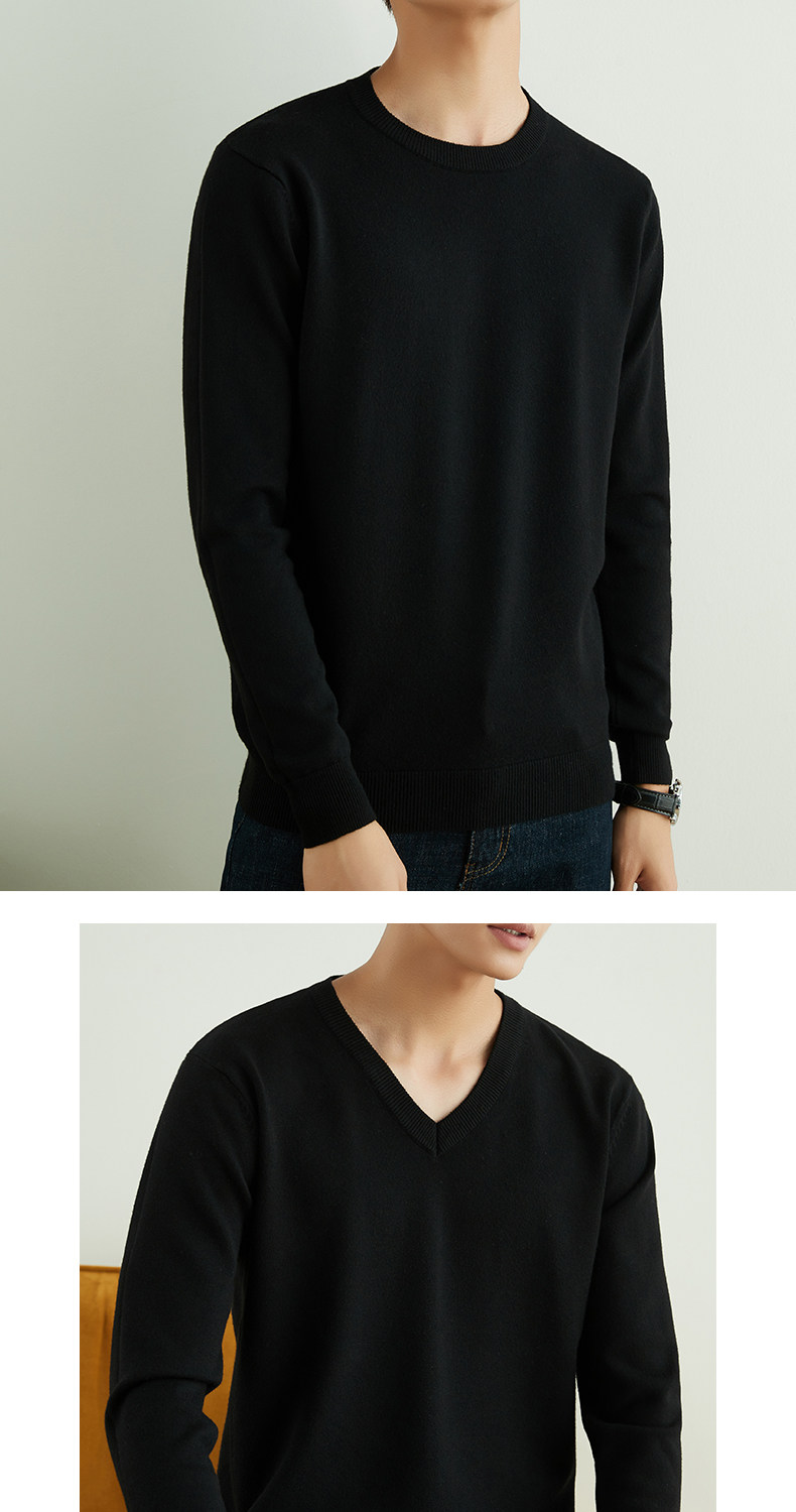 男士圓領V領套頭毛衣長袖打底針織衫保暖內搭毛衫秋冬寬鬆男裝潮