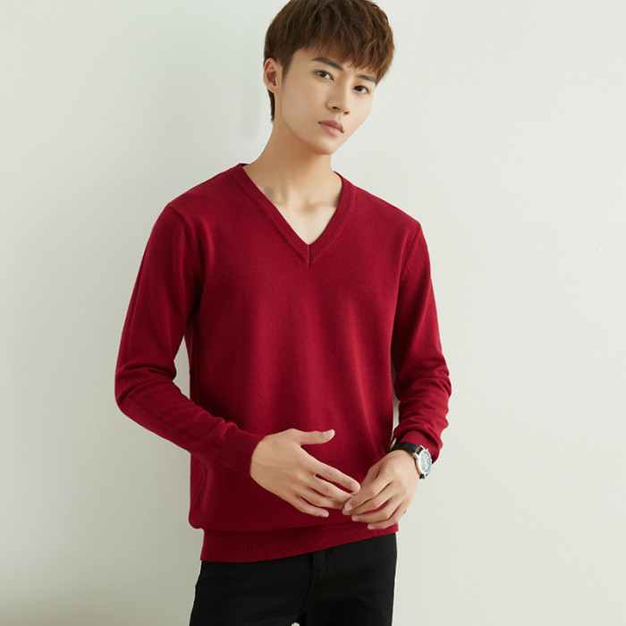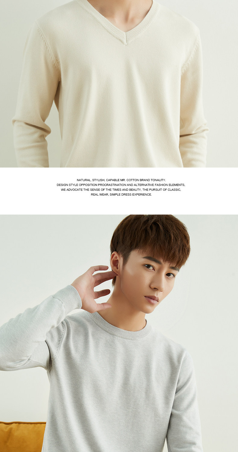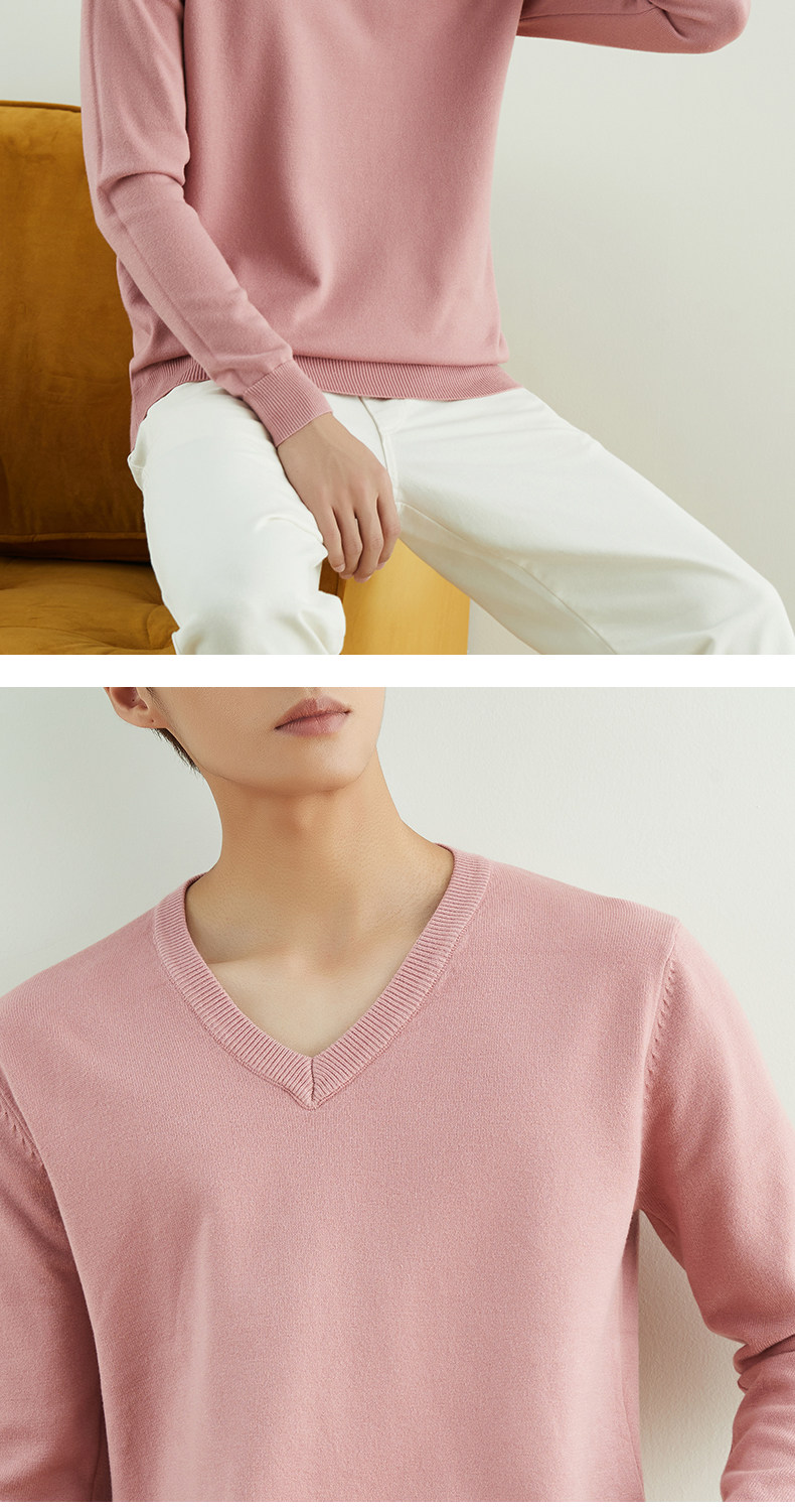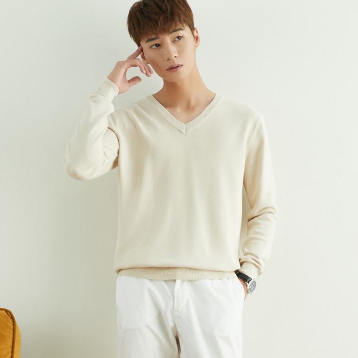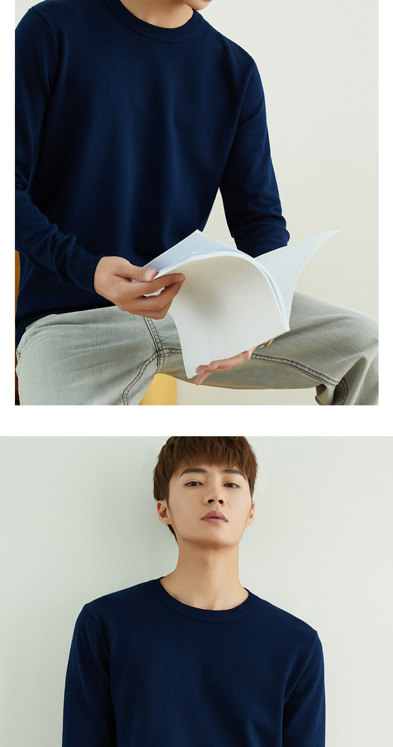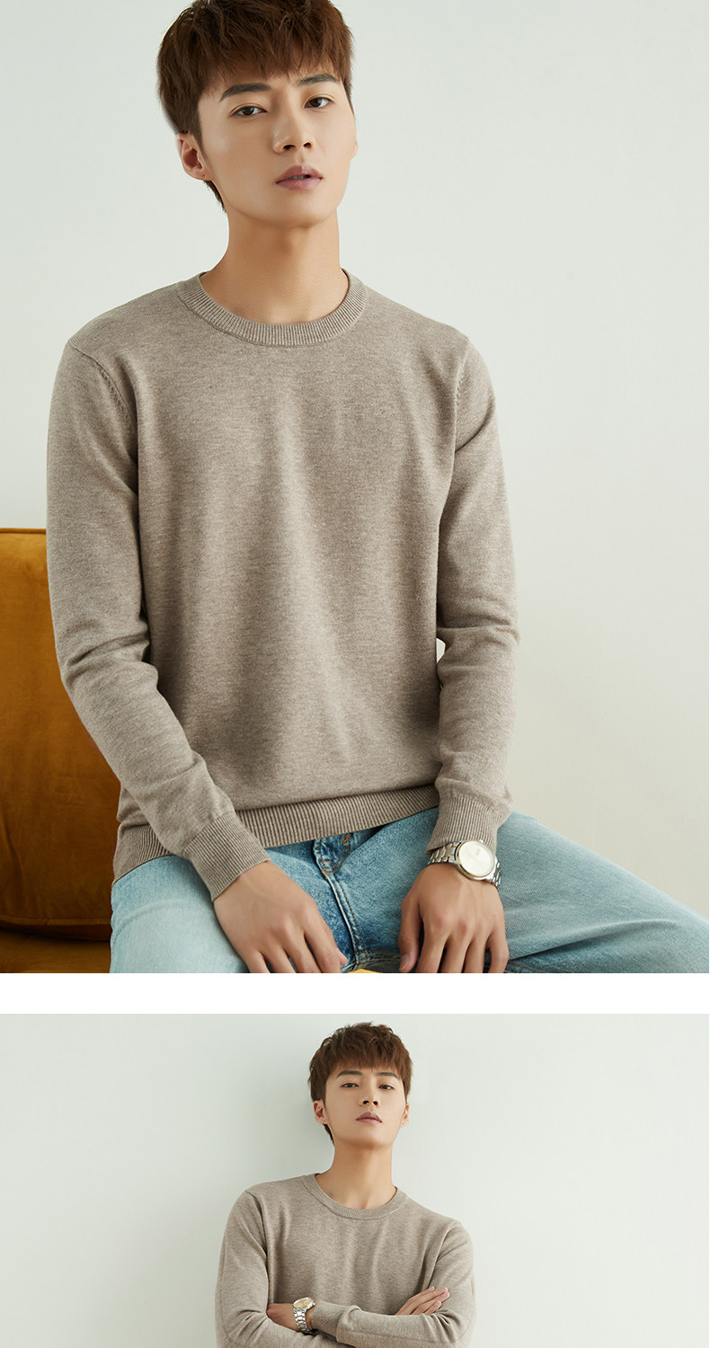 男士圓領V領套頭毛衣長袖打底針織衫保暖內搭毛衫秋冬寬鬆男裝潮