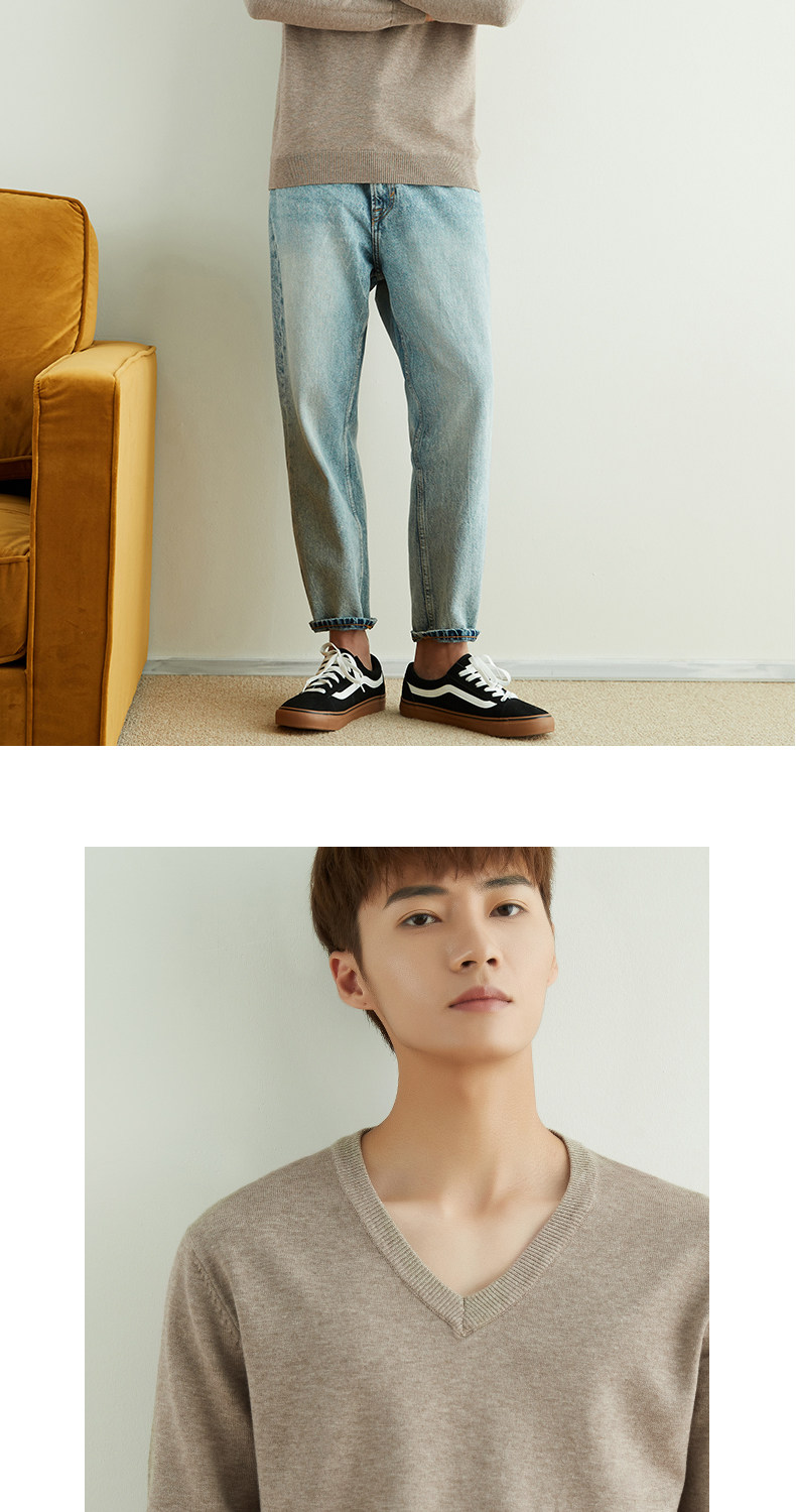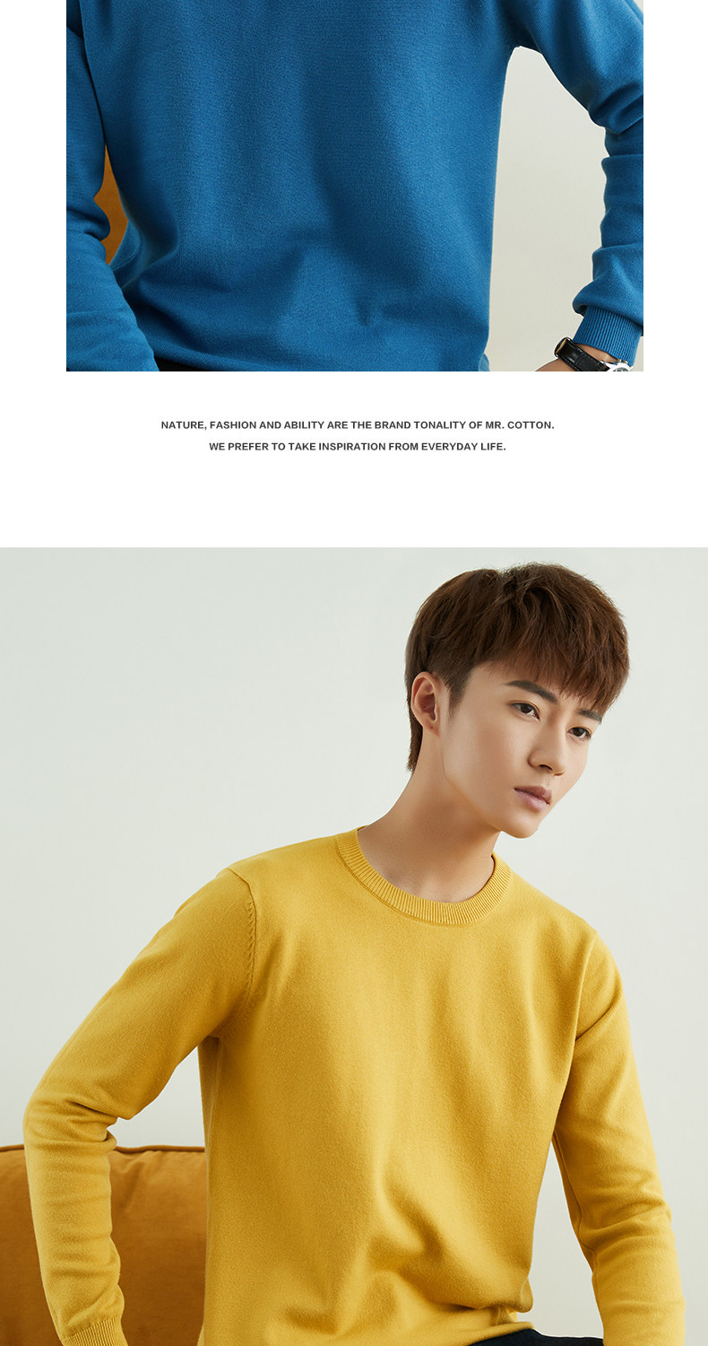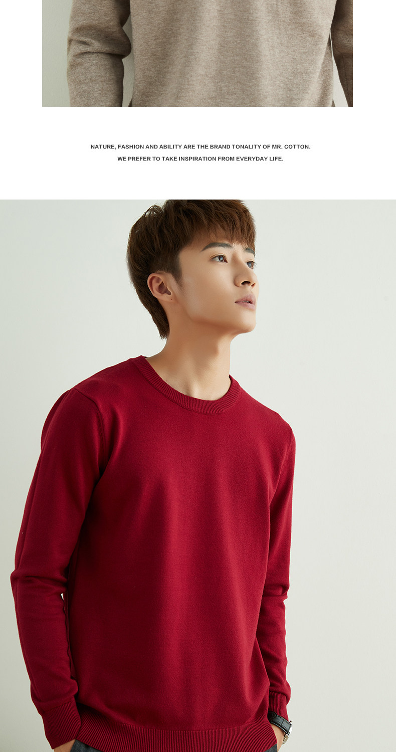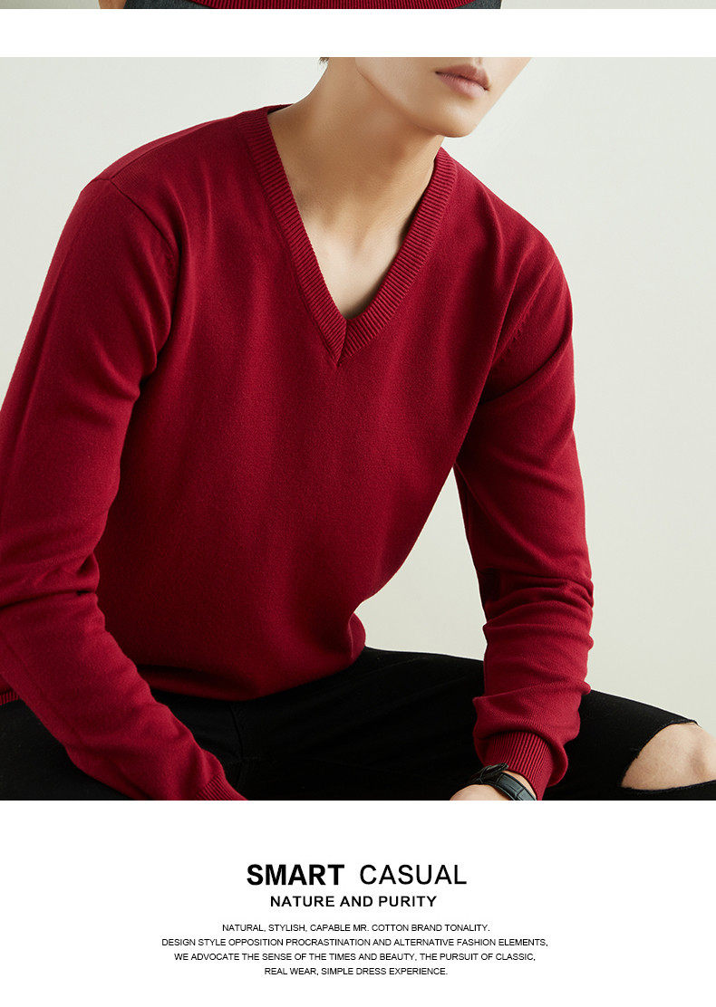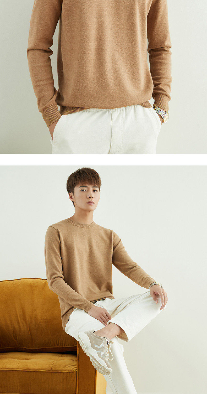 男士圓領V領套頭毛衣長袖打底針織衫保暖內搭毛衫秋冬寬鬆男裝潮