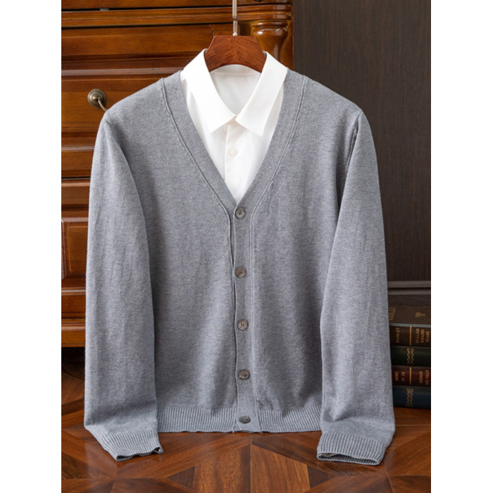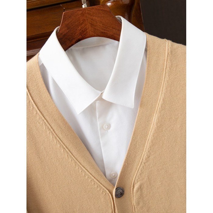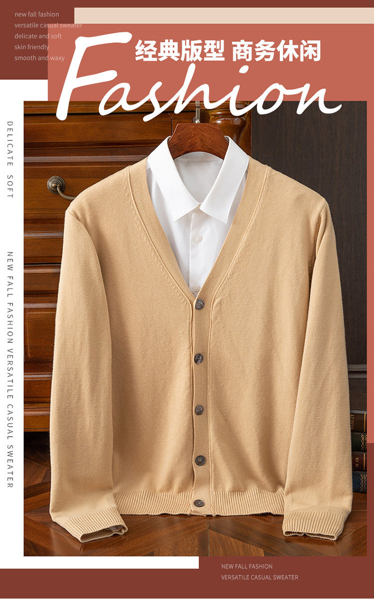秋冬V領羊毛開衫男士大碼寬鬆休閒毛衣加厚修身絨衫針織衫羊毛衫