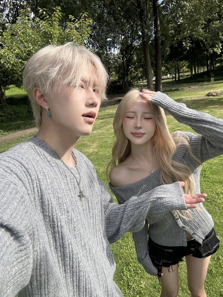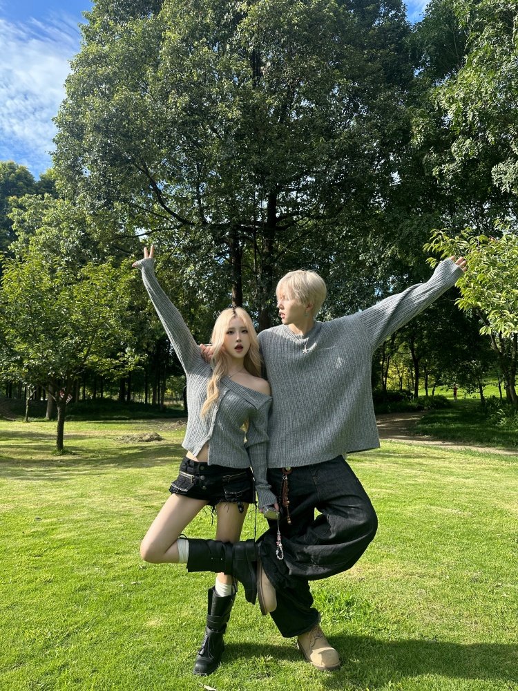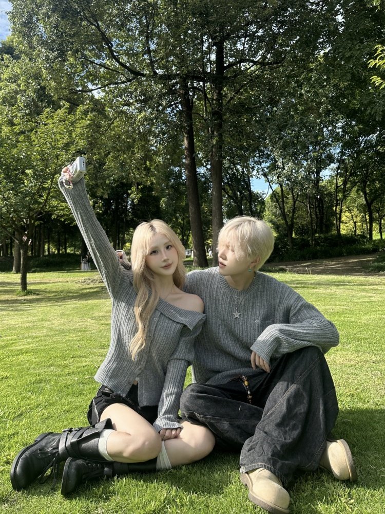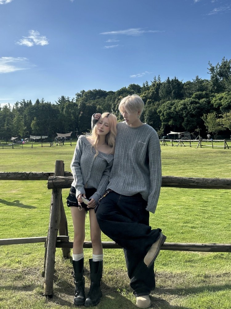 情侶裝2025秋冬新款純欲一字肩毛衣圓領軟糯綿韓系計感針織衫上衣