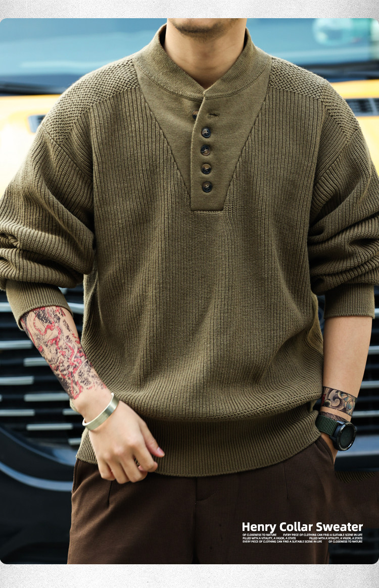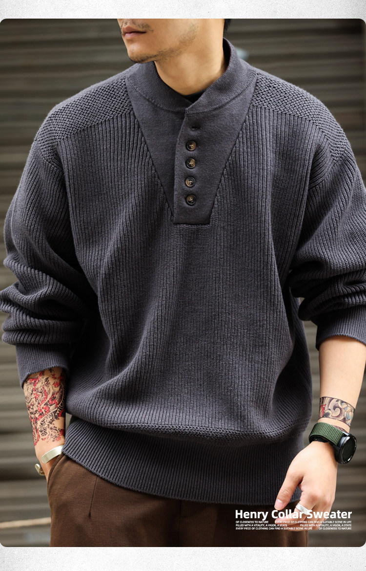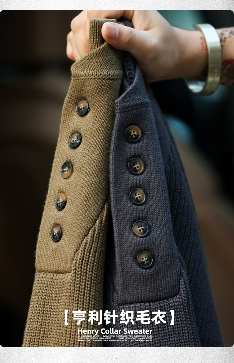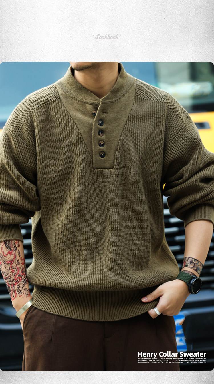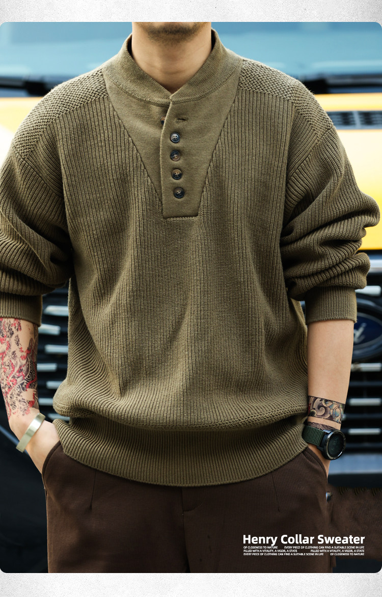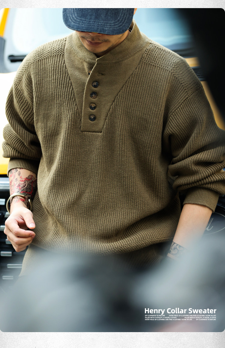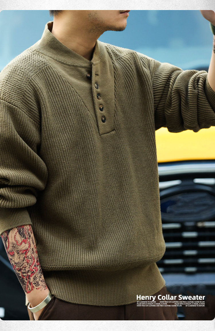 BGYO鹿起 美式復古加厚重磅亨利領毛衣男坦克手套頭保暖針織衫冬