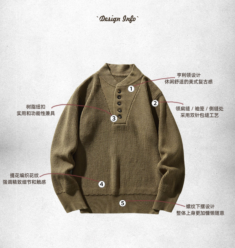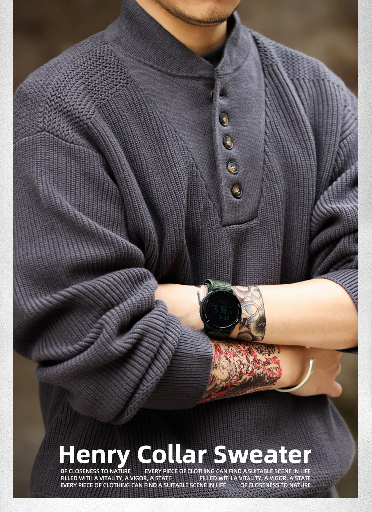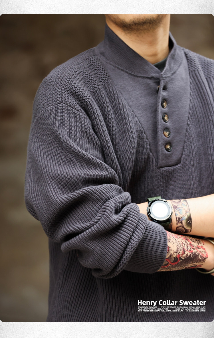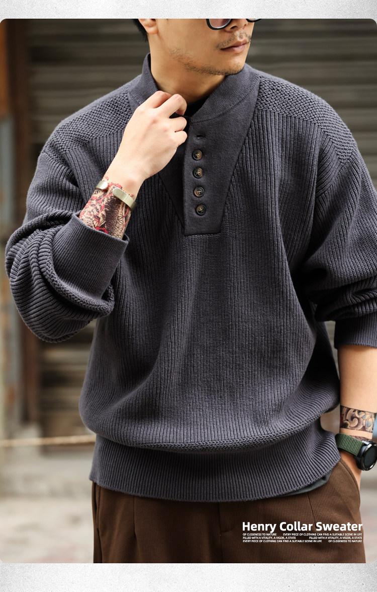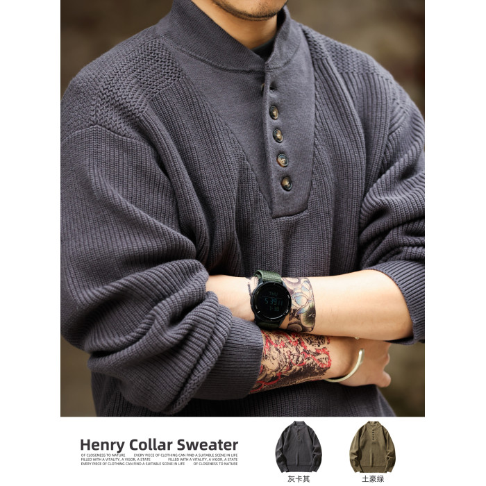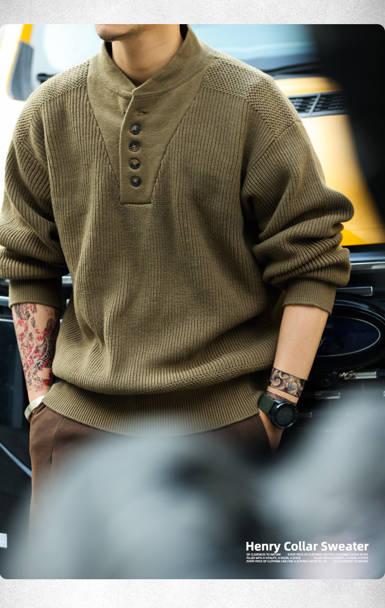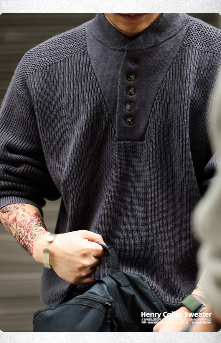 BGYO鹿起 美式復古加厚重磅亨利領毛衣男坦克手套頭保暖針織衫冬
