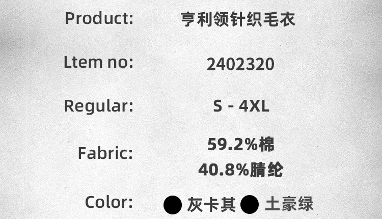 | 領型設計 | 亨利領 |