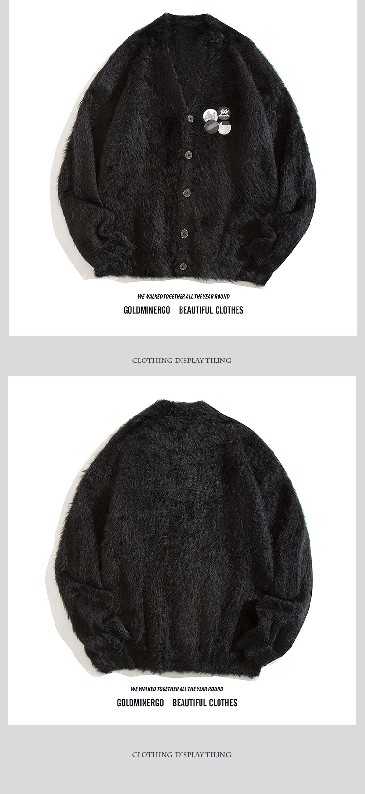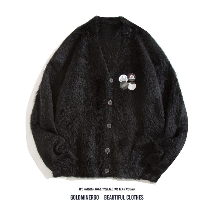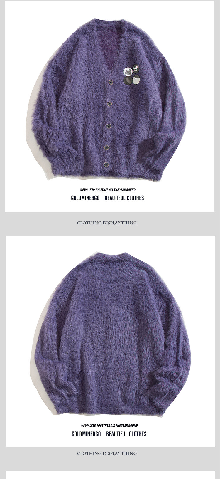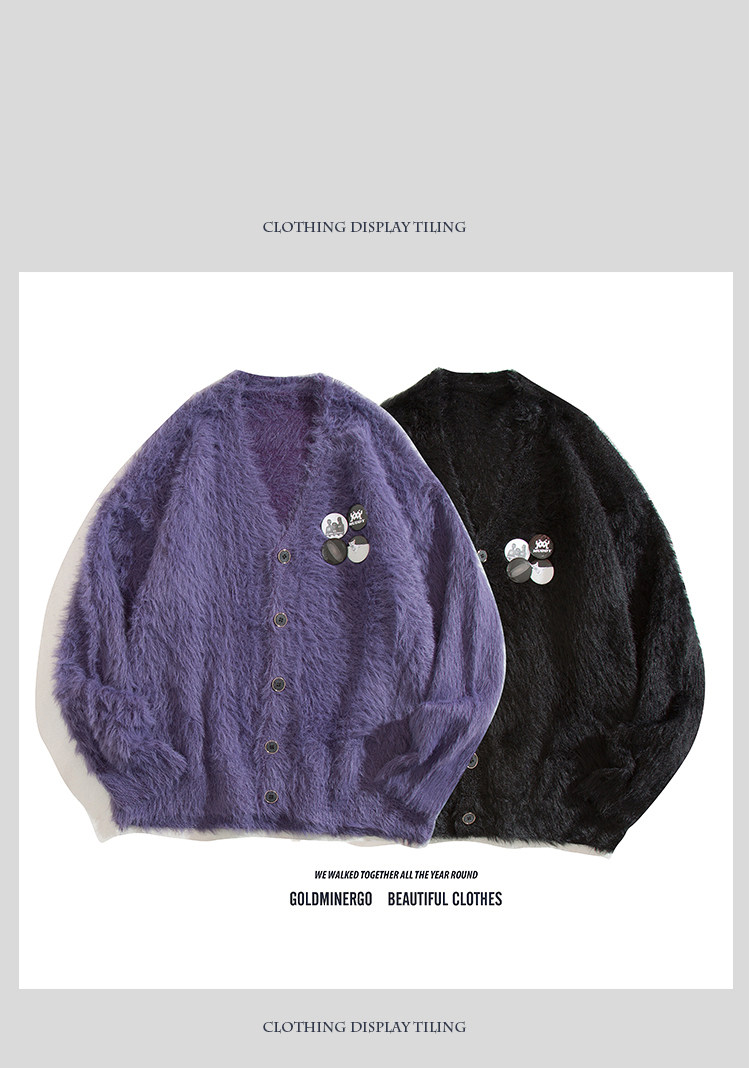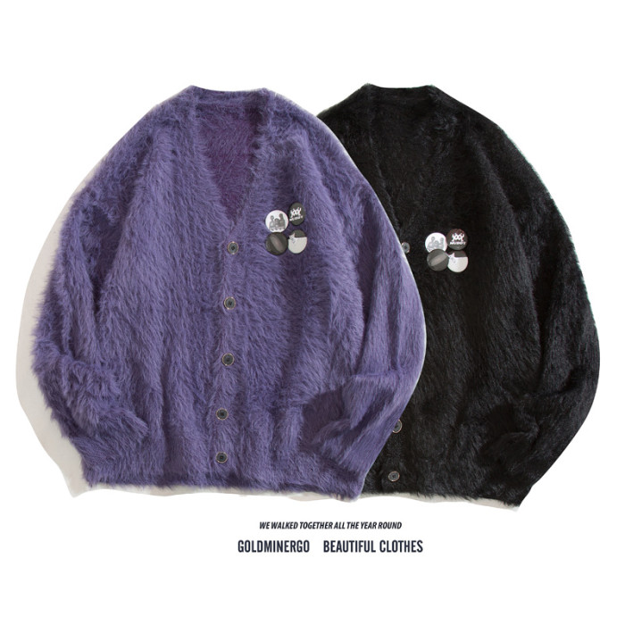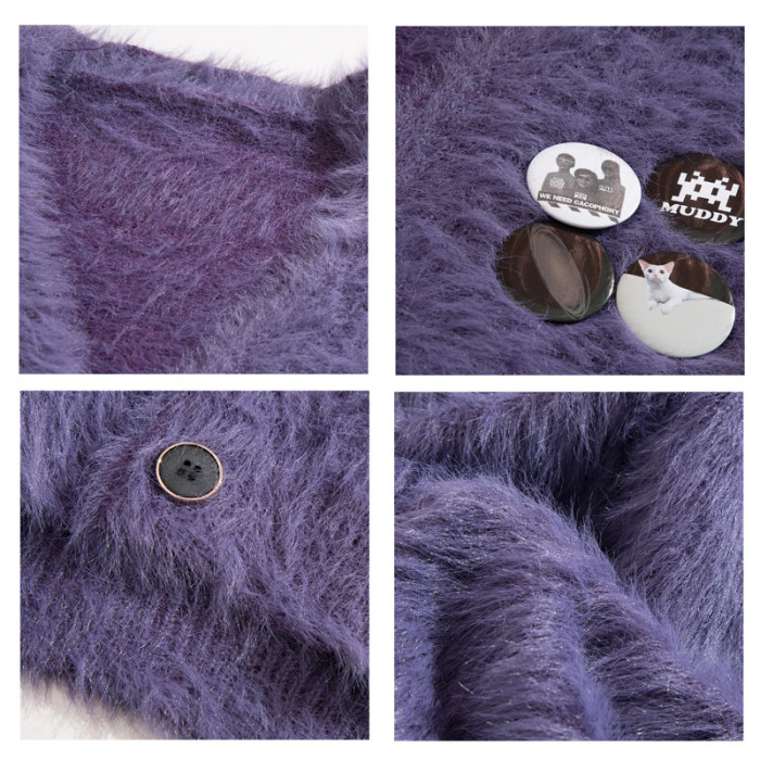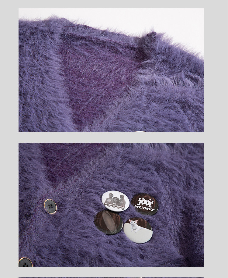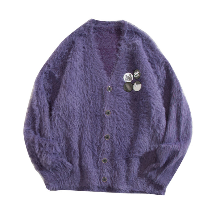 秋冬季胸針徽章紫色針織衫外套男女寬鬆慵嬾風高級感情侶開衫毛衣