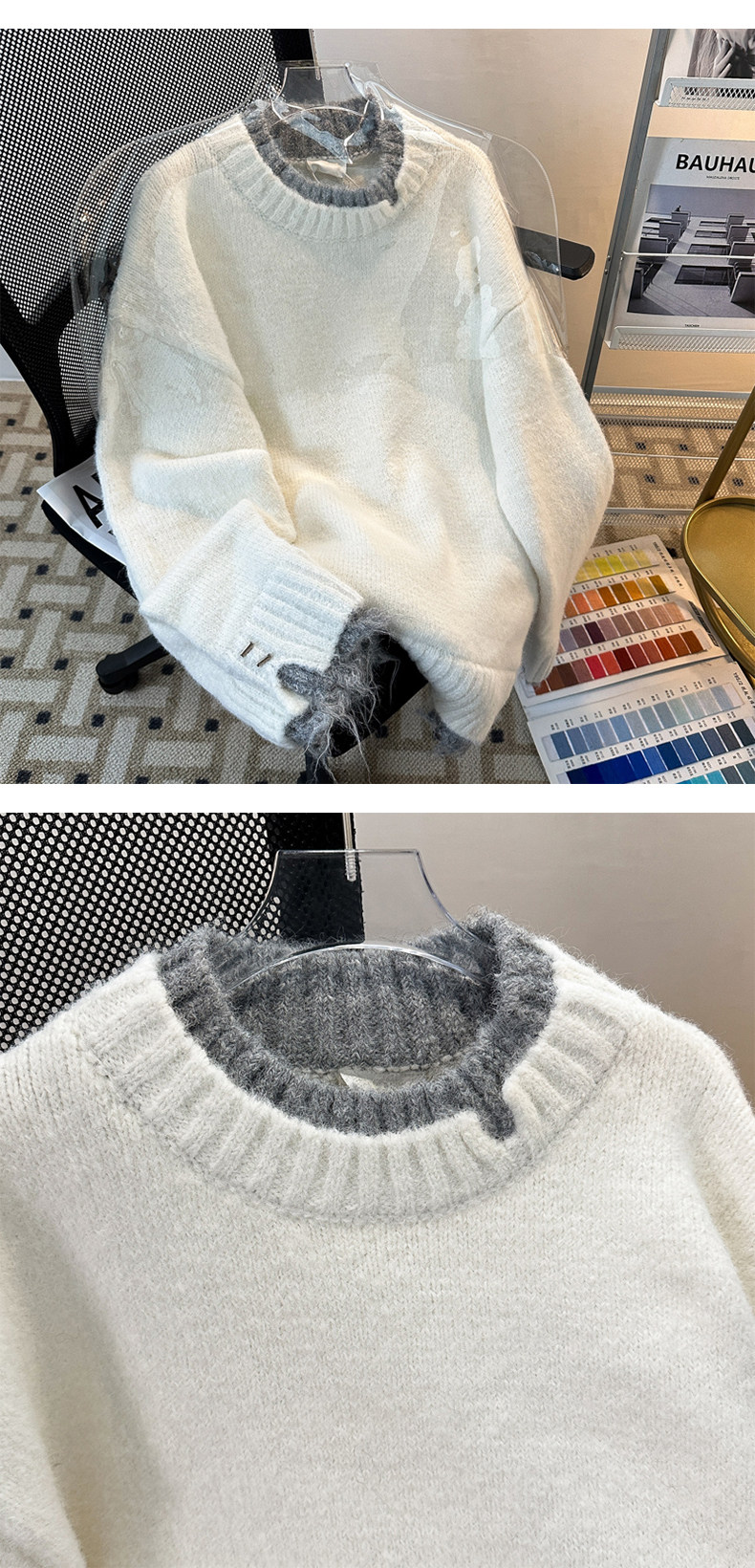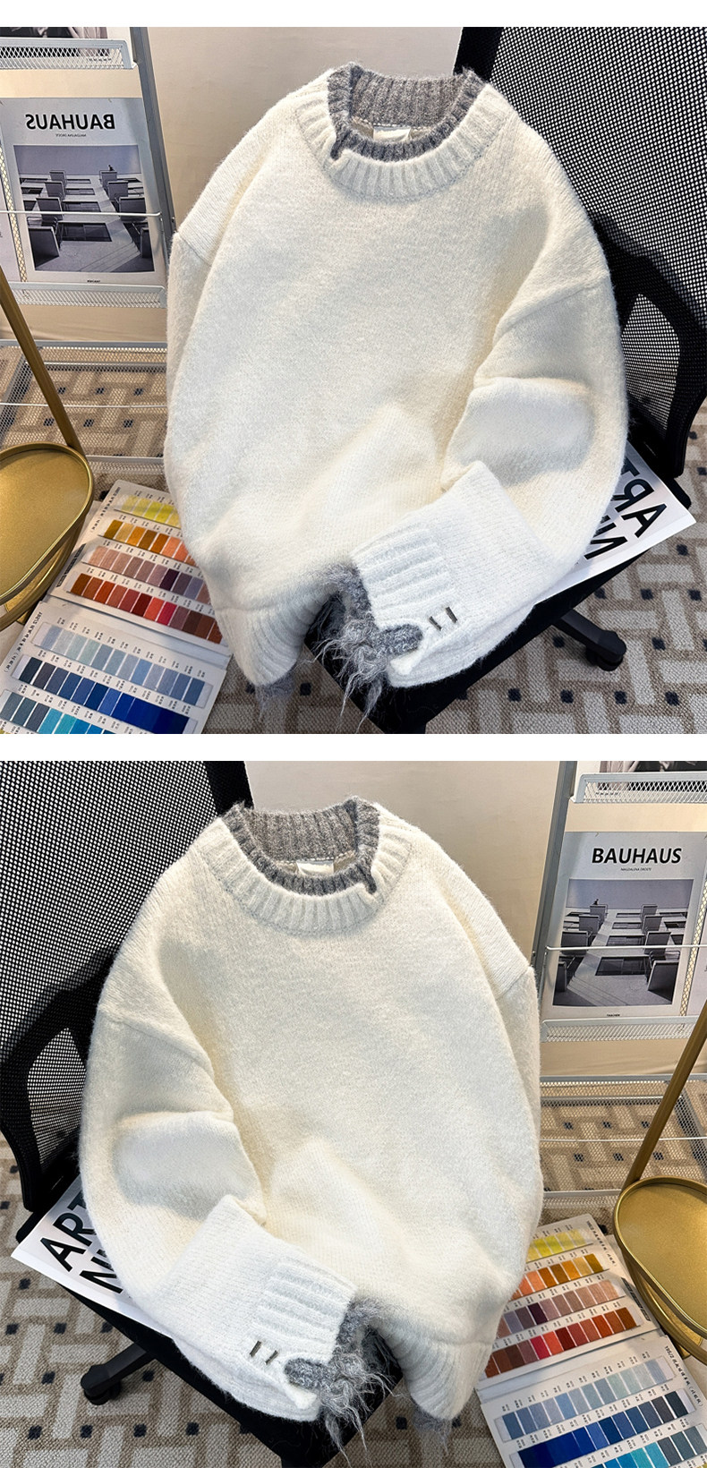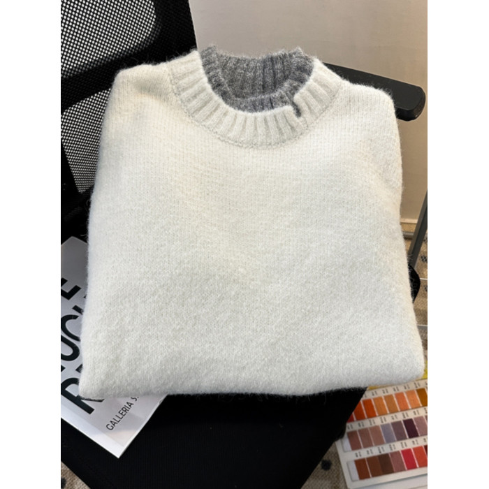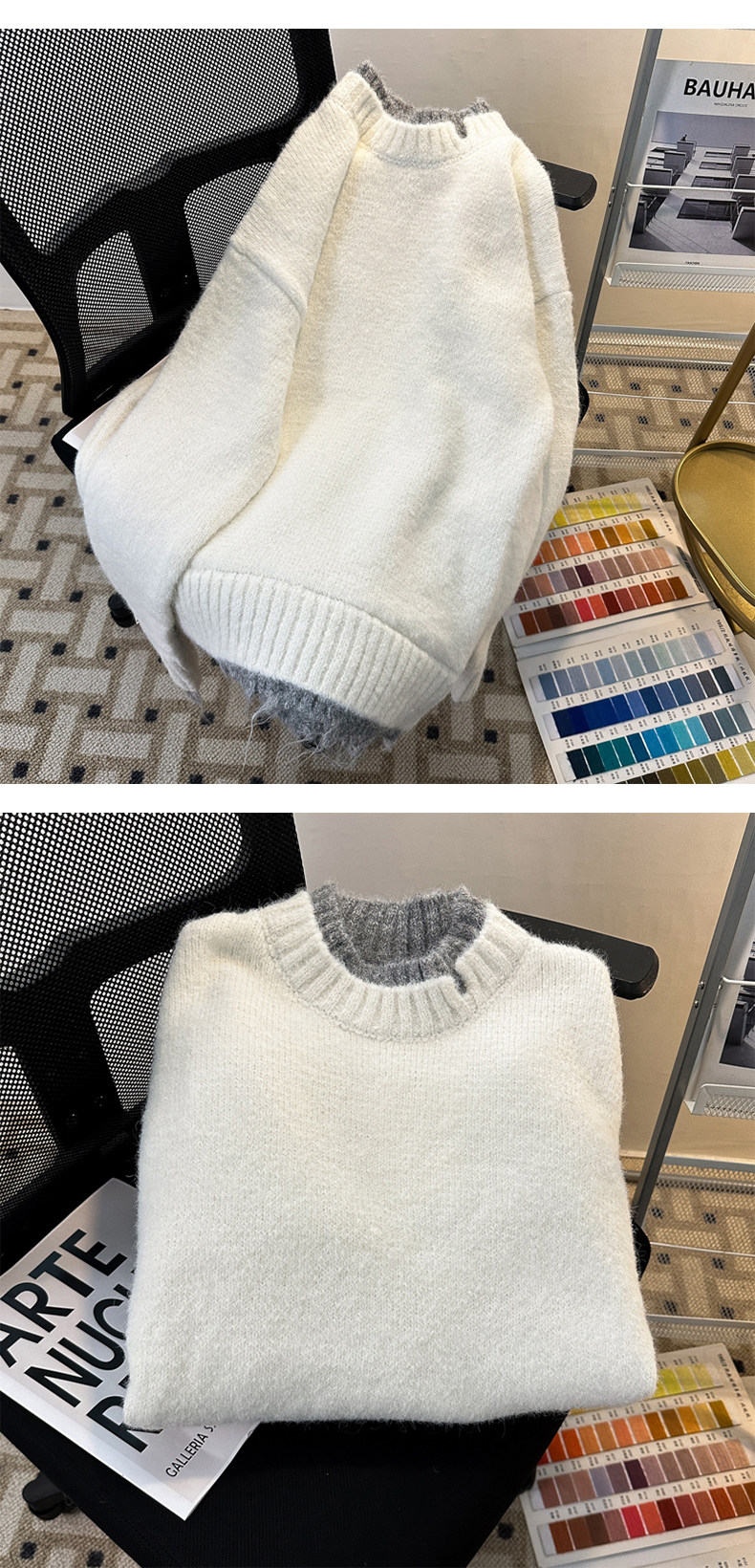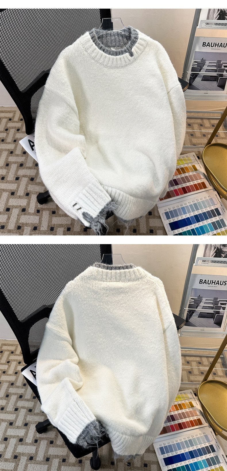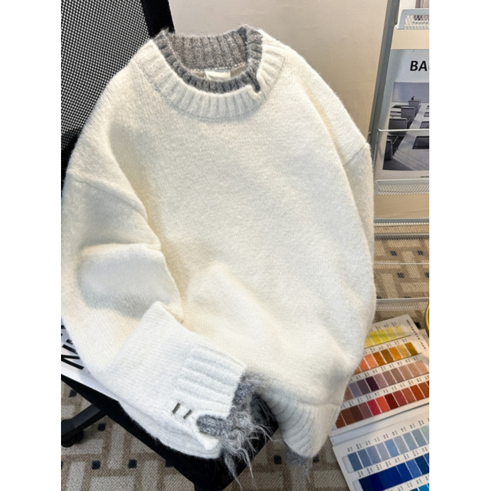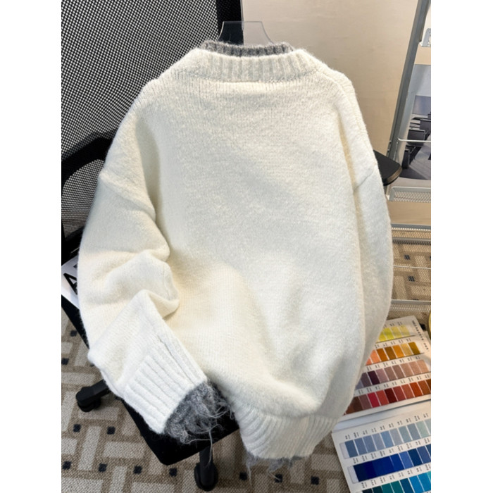 破壞感假兩件毛衣男秋冬季軟糯慵嬾風針織衫寬鬆潮流美式情侶線衣
