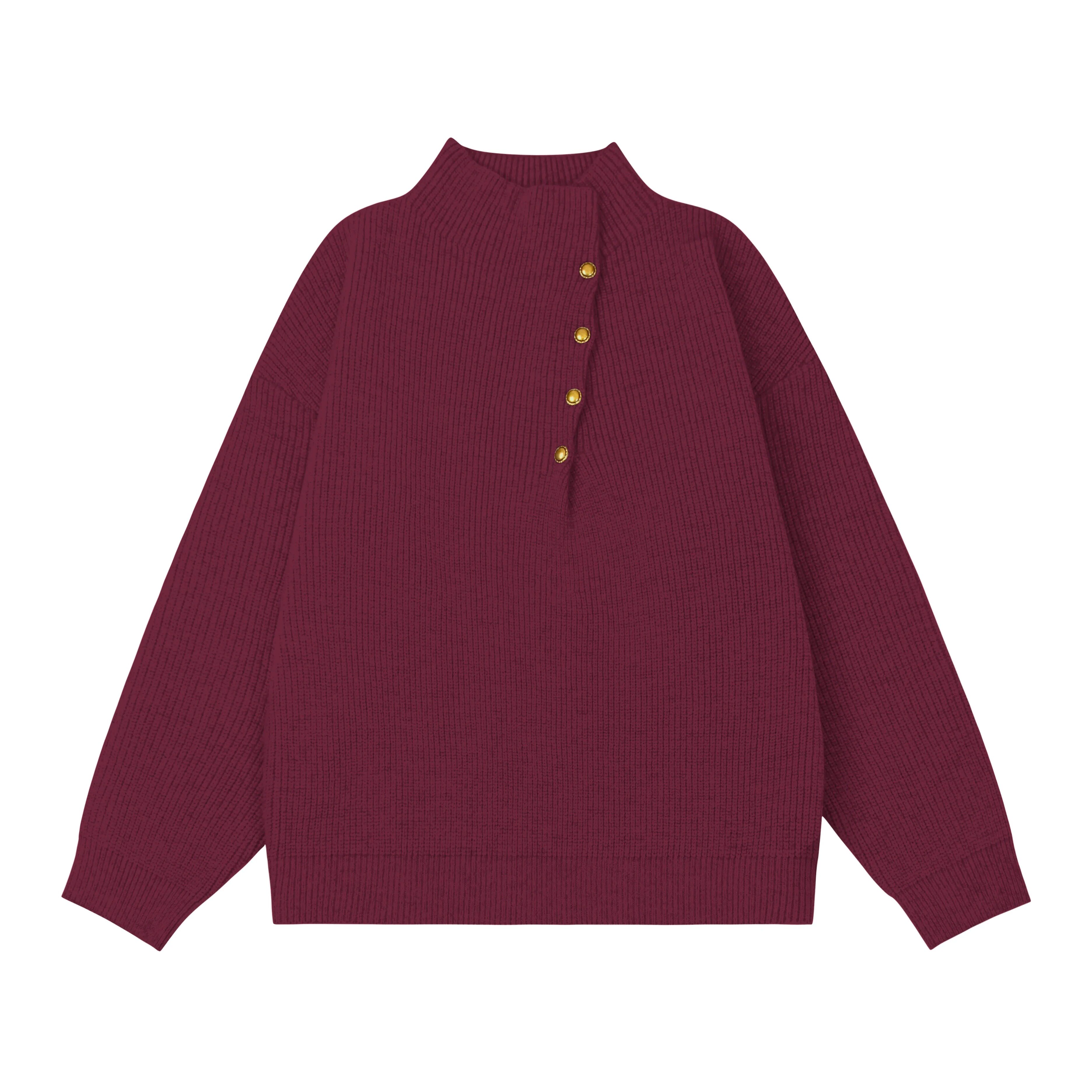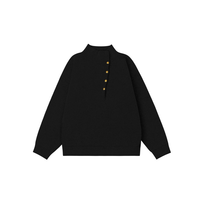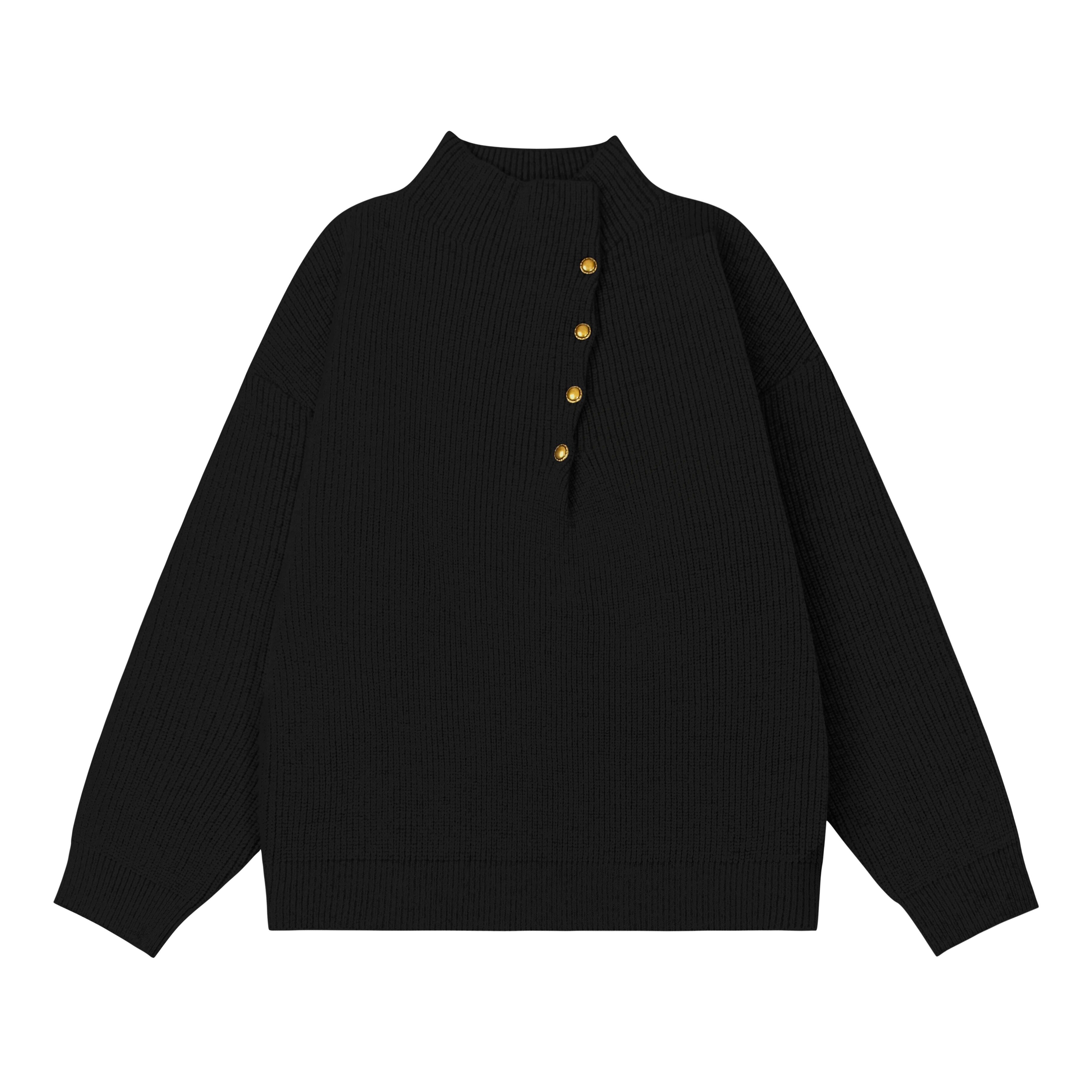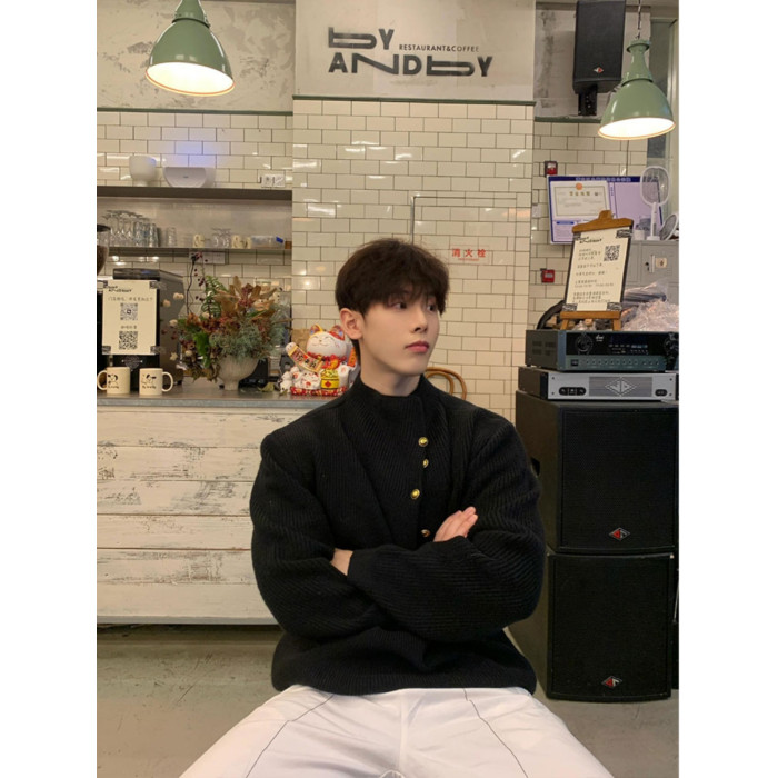 韓版側紐釦設計感半高領毛衣男款冬季休閒寬松百搭cleanfit針織衫