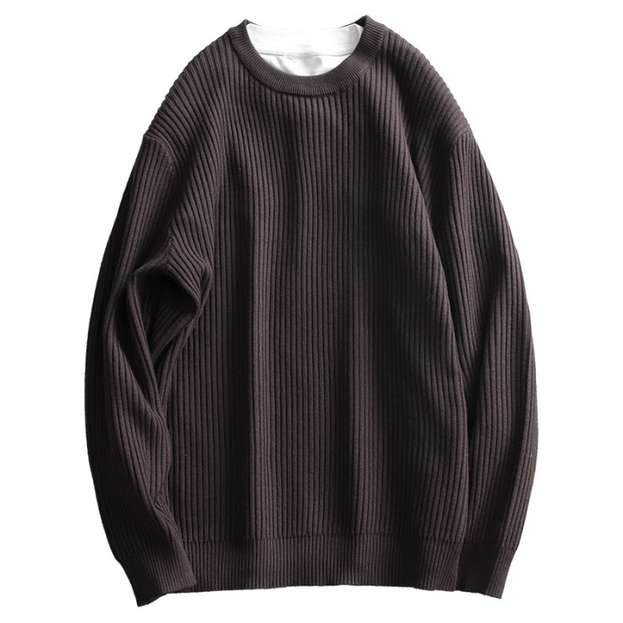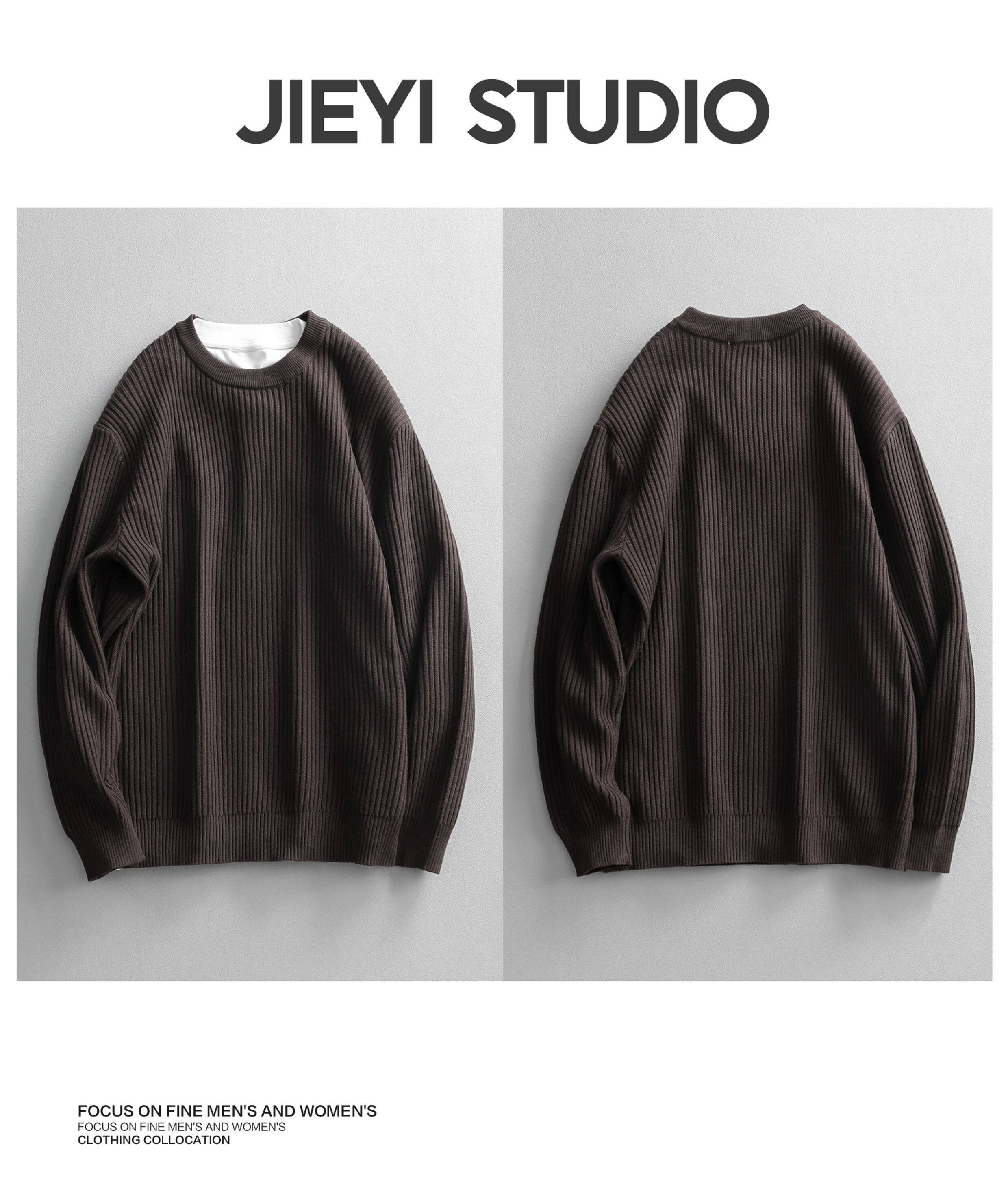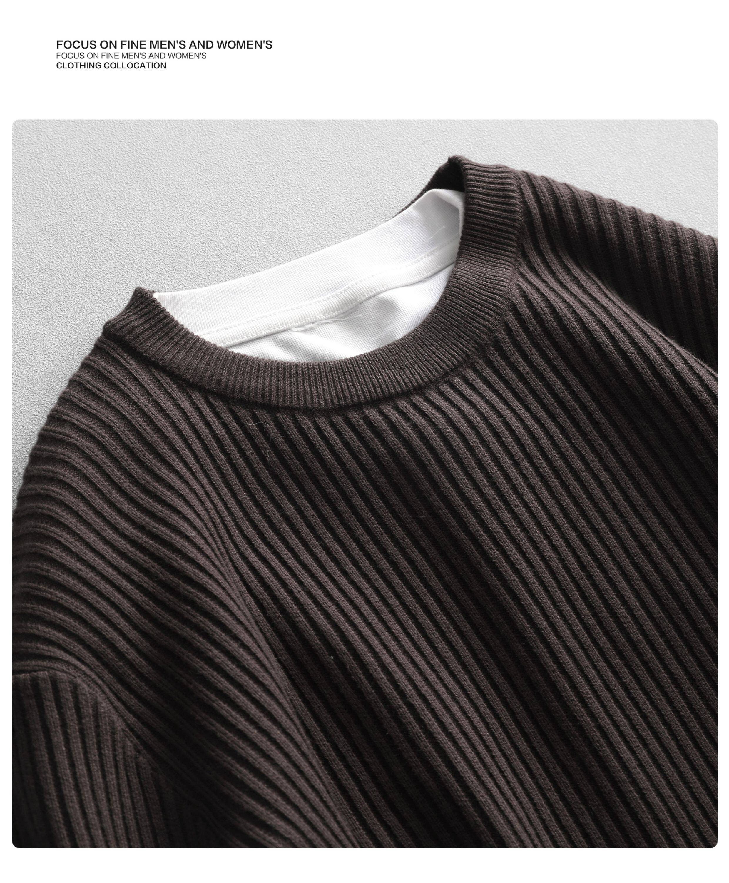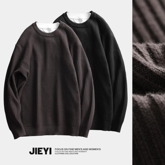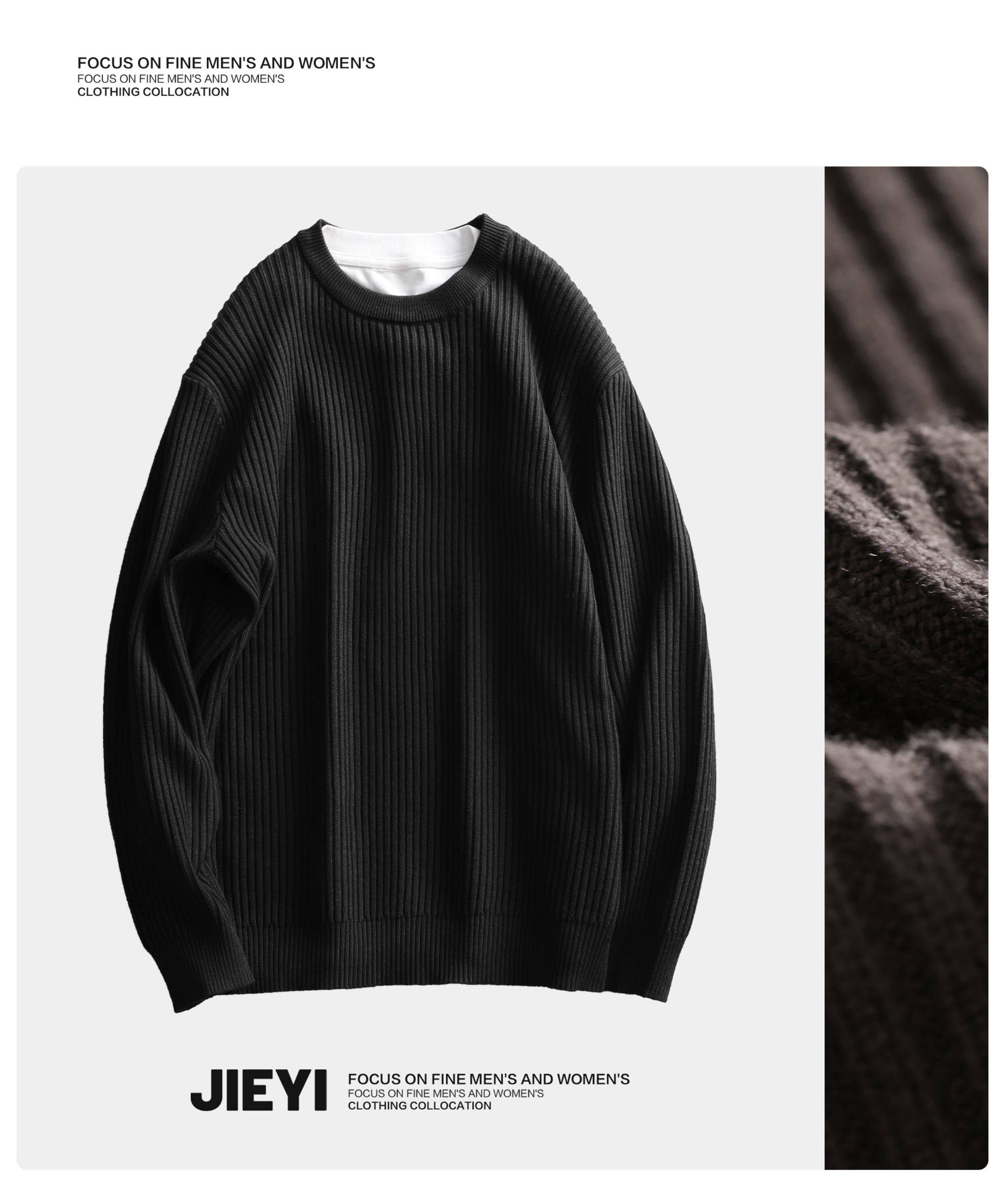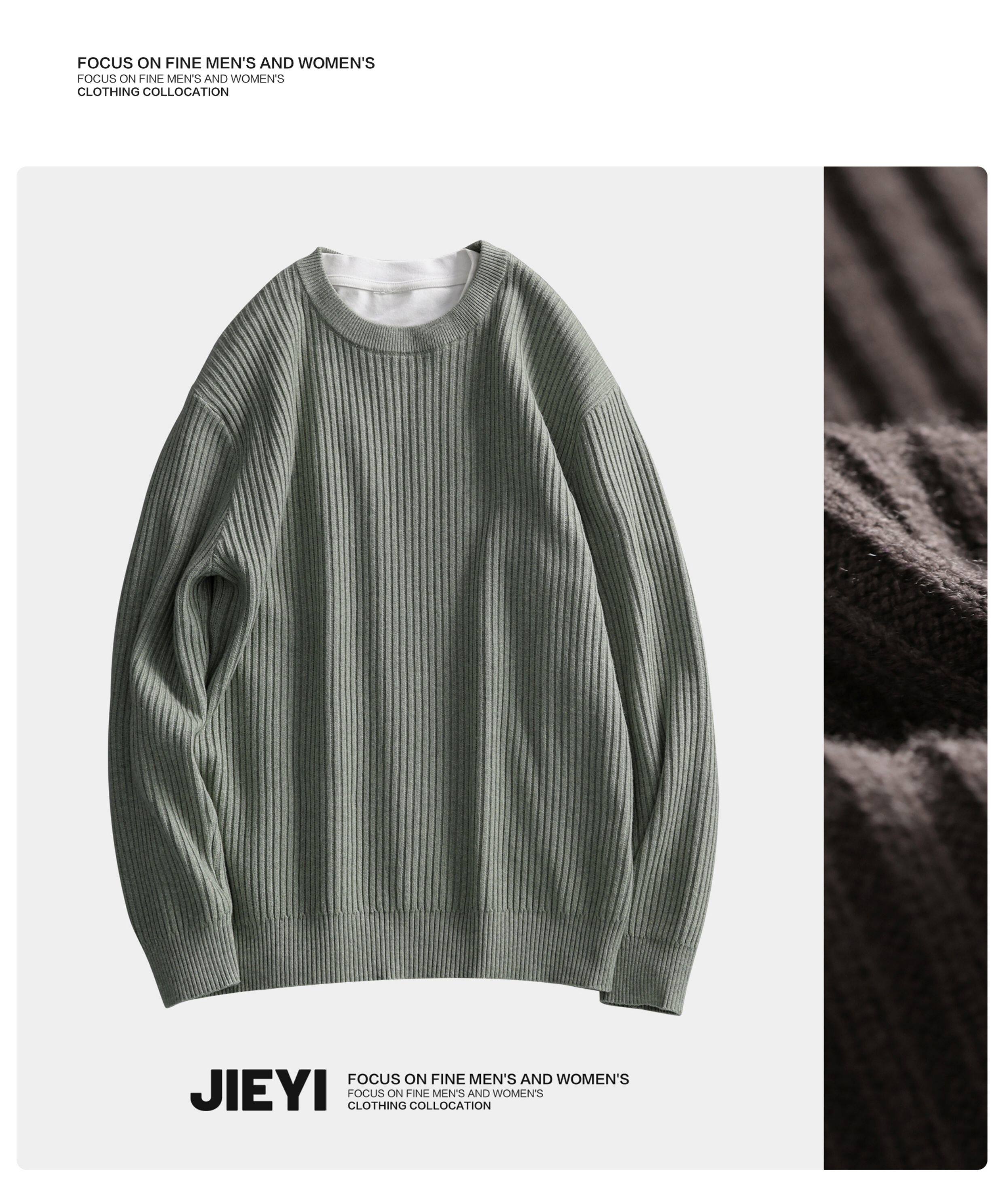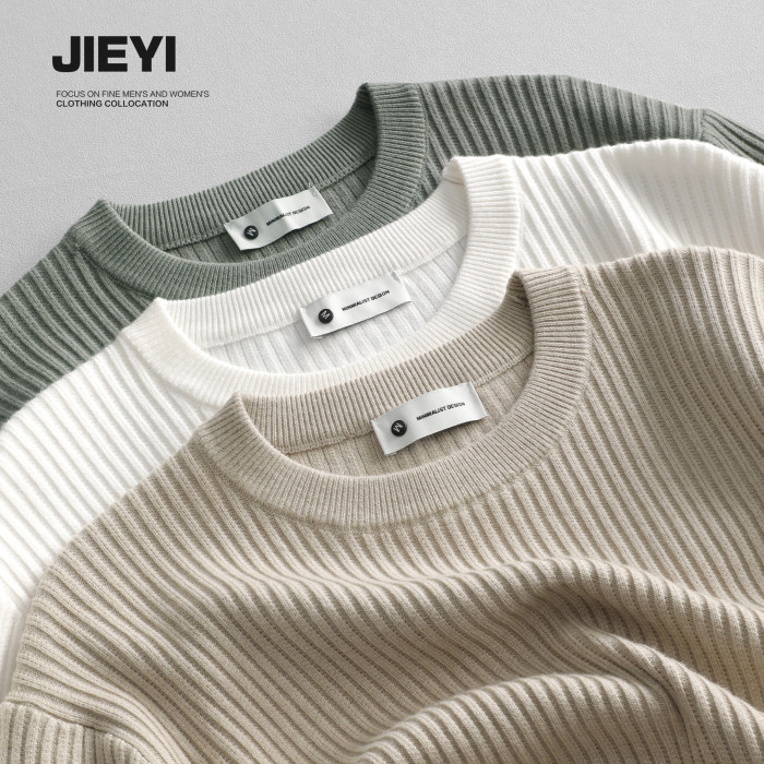 介乙 坑條紋理圓領毛衣男慵懶風潮流韓系提花針織衫保暖單穿上衣