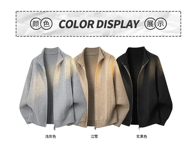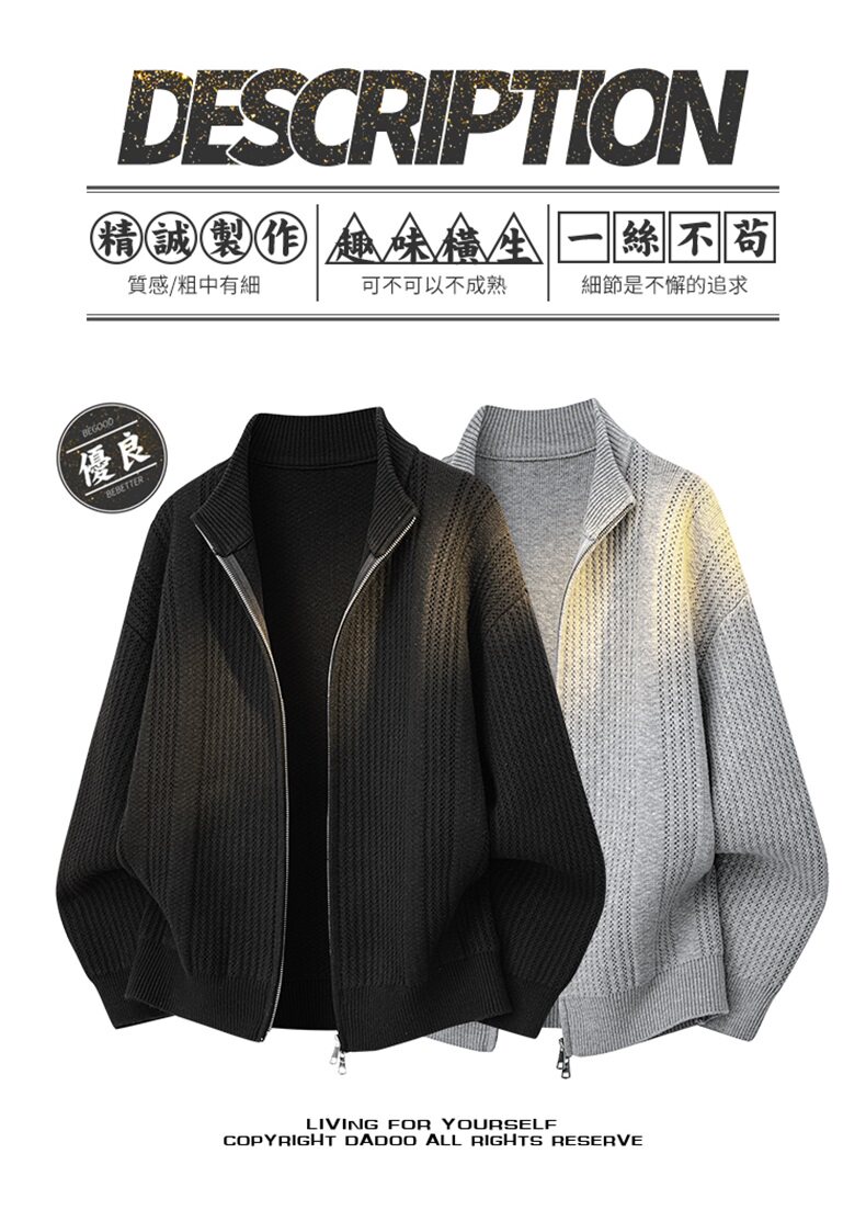 WASSUP ISSUE美式雙拉鍊開衫毛衣男秋冬季高街立領休閒針織衫外套