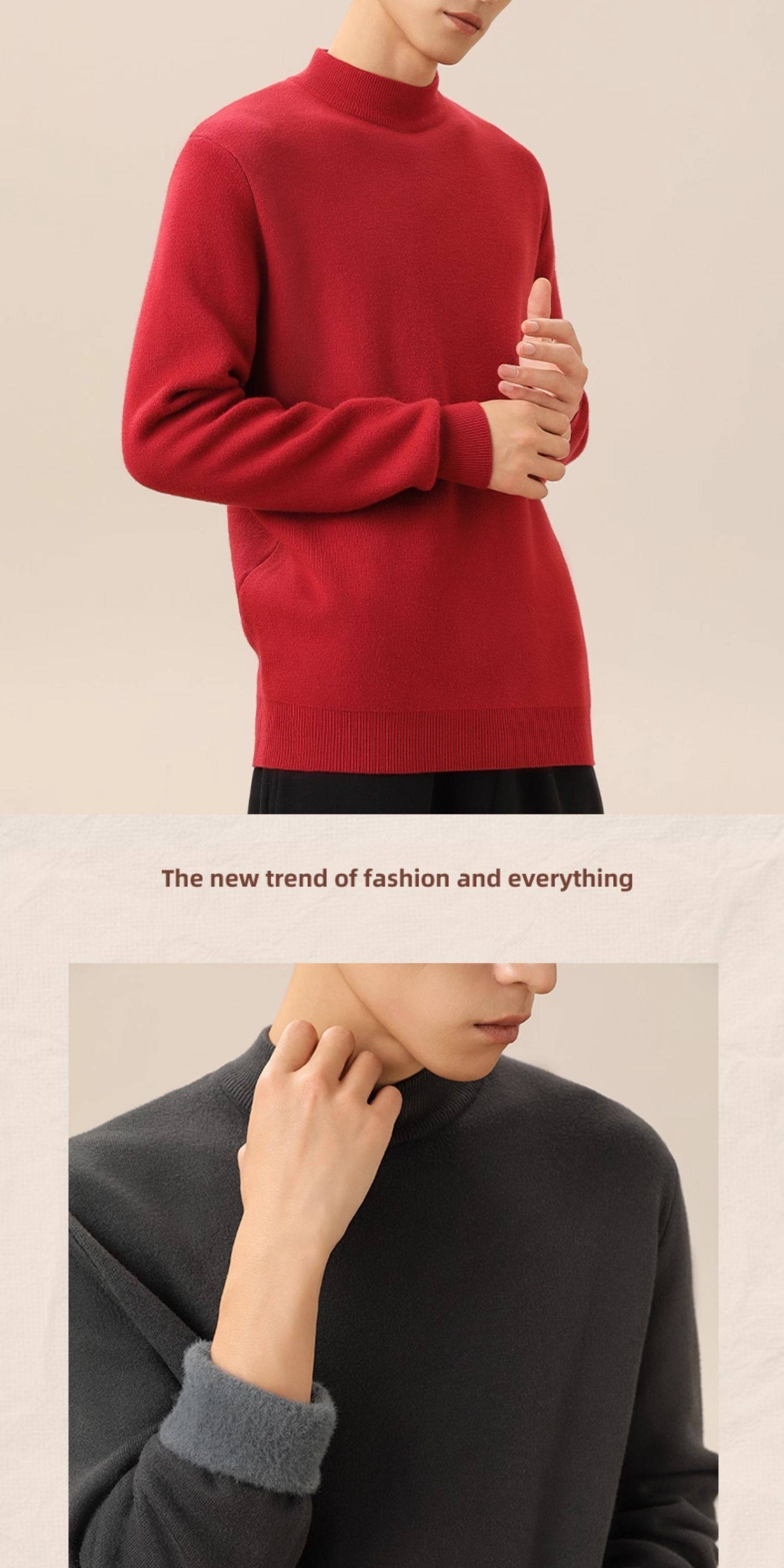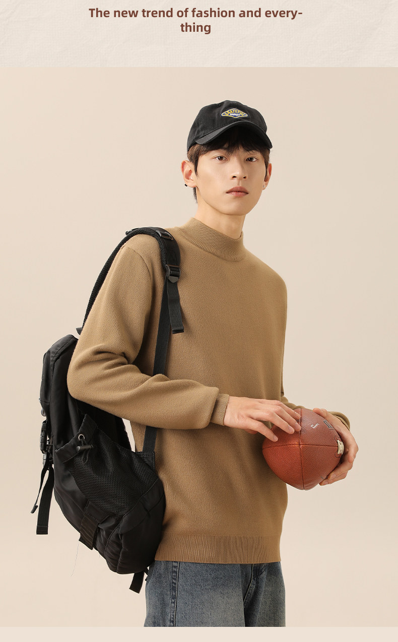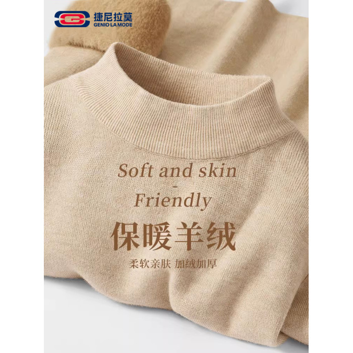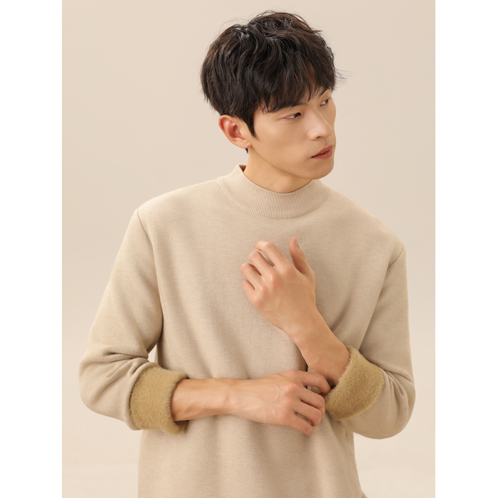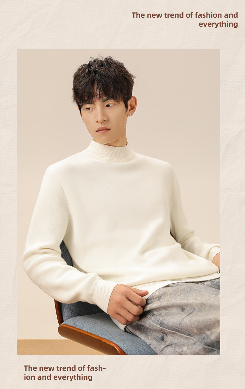 捷尼拉莫日系卡其色毛衣男冬季保暖羊絨內搭男士半高領加厚針織衫
