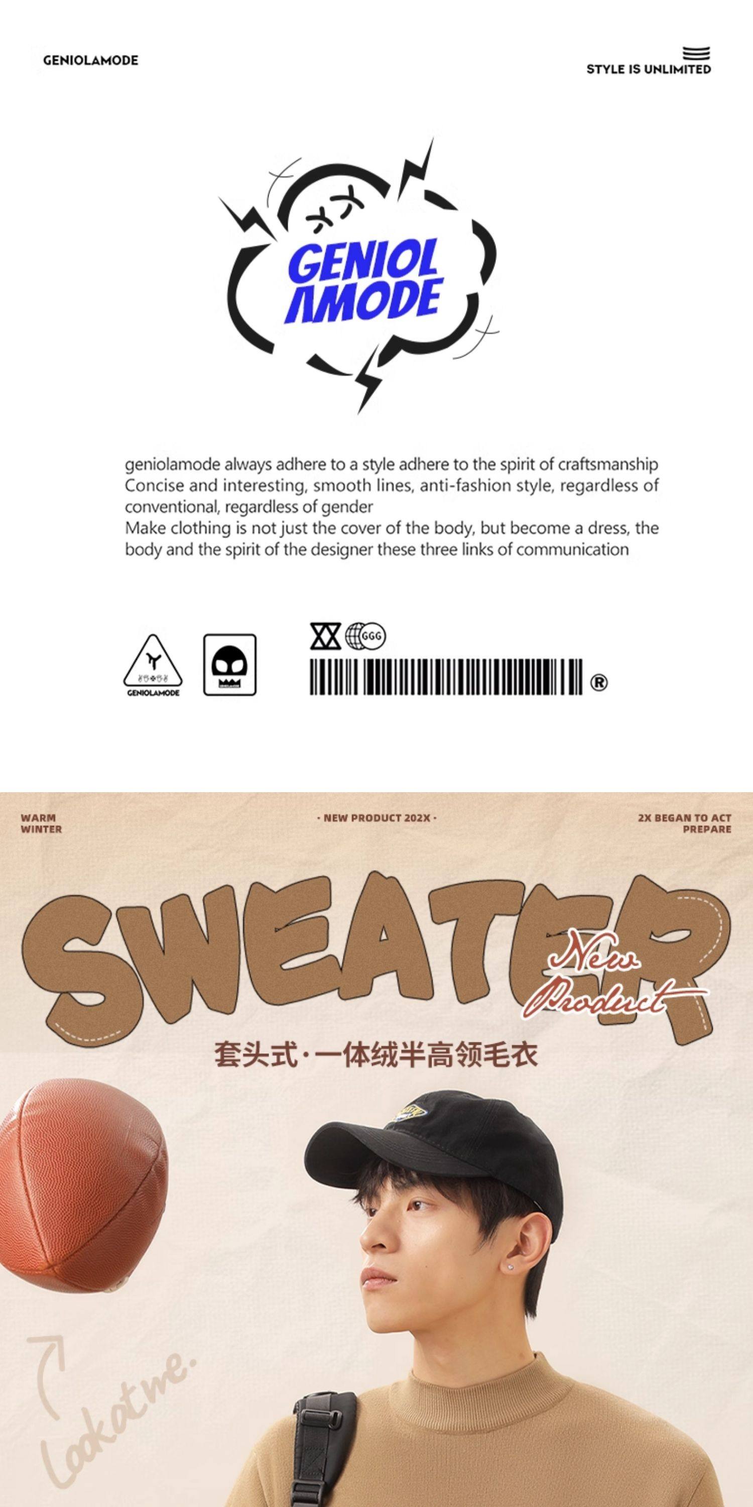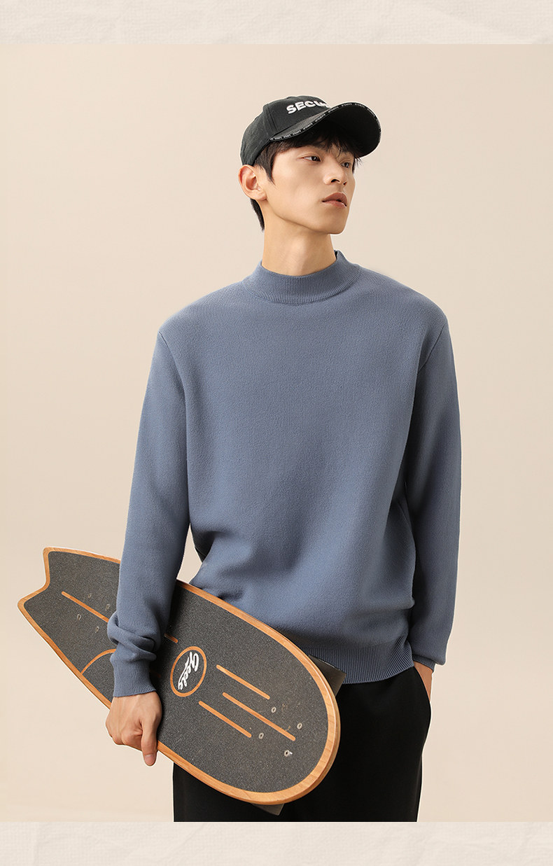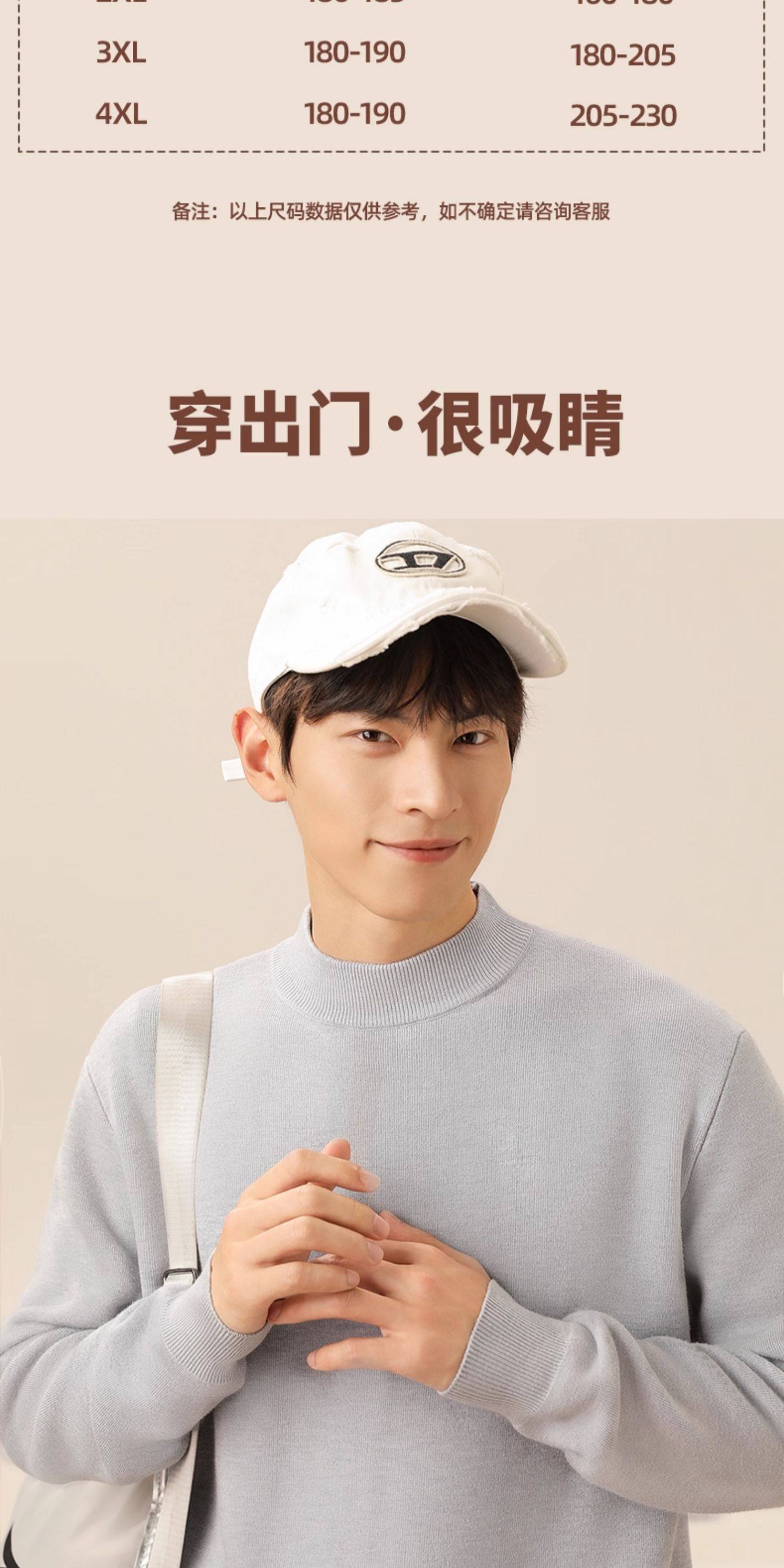 捷尼拉莫日系卡其色毛衣男冬季保暖羊絨內搭男士半高領加厚針織衫