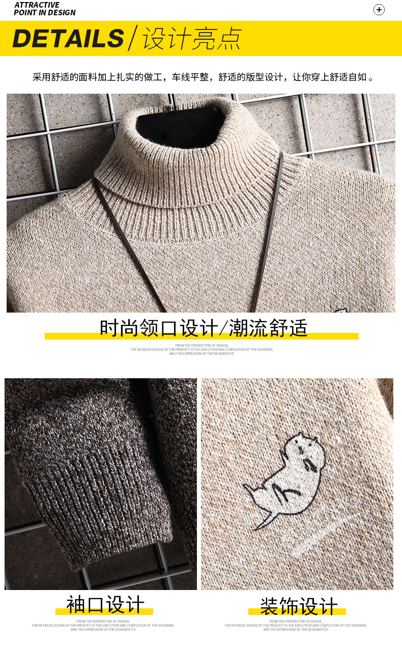 毛衣男士高領新款針織衫2026年秋冬季拼色加絨加厚保暖長領打底衫